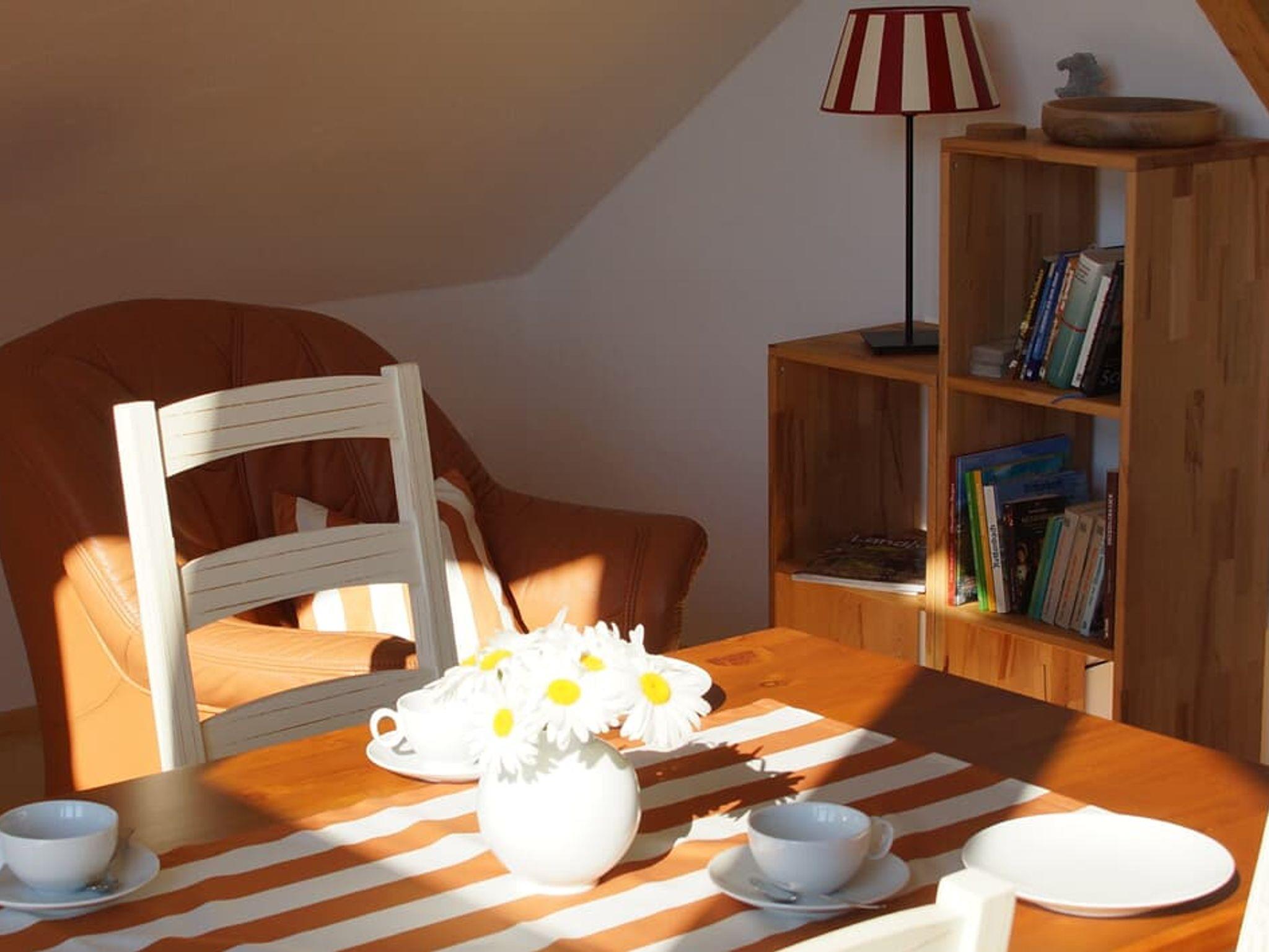 Die gemütliche, hochwertig ausgestattete Ferienwohnung im modernen Landhausstil ist für bis zu 4 Personen ausgelegt. Im schönen Schlafzimmer befindet sich ein bequemes Doppelbett. Der Wohnbereich mit Kaminofen inkl. Brennholz, Leder-Schlafsofa für 2 Personen, SAT-TV, Radio, Esstisch, Couch, Multimediagerät (DVD-Player, USB und SD-Anschluss) und Küche lädt zum Verweilen ein. Die Küchenzeile mit Ceran- Kochfeld, Backofen, Kühlschrank mit Gefrierfach, Kaffeemaschine, Toaster, Wasserkocher und Geschirr lässt keine Wünsche offen. Das Bad besteht aus Badewanne mit Dusche, WC, Waschbecken und Spiegel. Handtücher und Bettwäsche sind inklusive. Das WLAN können Sie kostenlos nutzen. In unserem schönen Garten mit Gartenmöbeln können Sie die Sonne genießen.