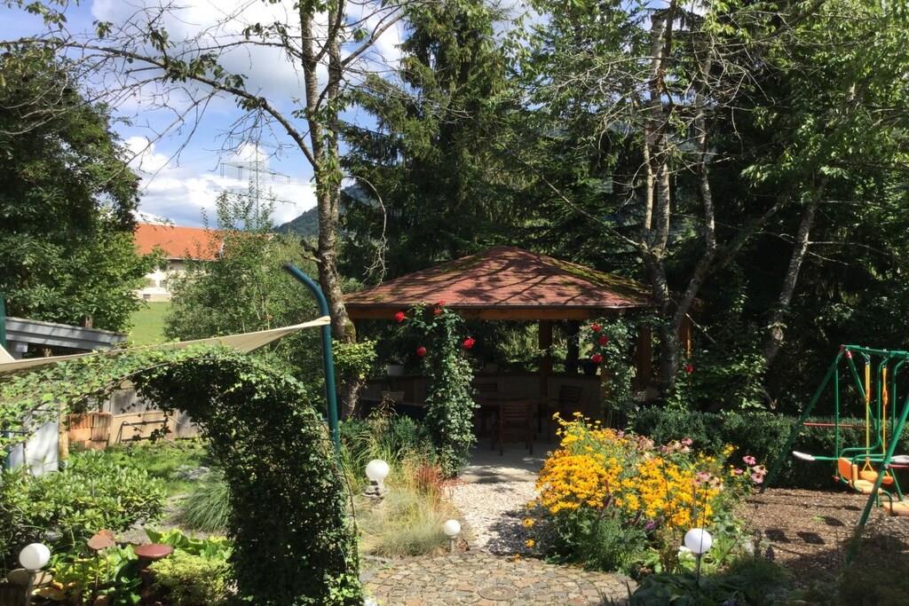 Feng Shui i hjertet af Allgäu-regionen, endeløse drømme i vores vandsenge, og fordyb dig i en helt anden verden på vores yndlingssted, den elskede og kærligt plejede have med magisk belysning om aftenen. Fuldstændig ro og afslapning på vores terrasse i de behagelige stole eller liggestole fra solopgang til middag – og om eftermiddagen og aftenen i vores lysthus midt i haven. Eller vær aktiv, nyd bjergene og træn rigtigt – hos os er det ikke en modsætning. Velkommen!