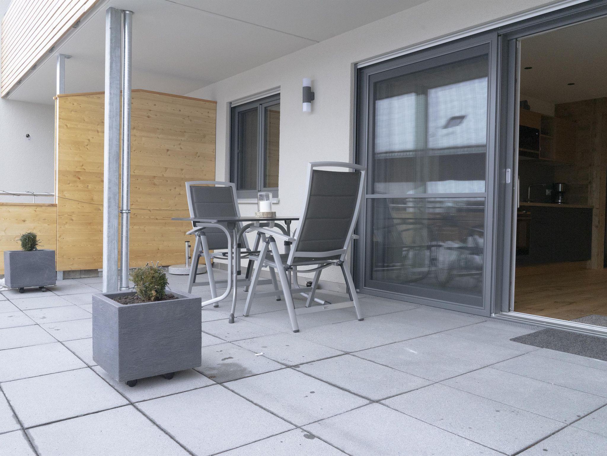 Entspannung finden Sie auf der großzügig, teils überdachten 28m² Terrasse mit Gartenmöbeln und Liegestühlen mit Blick auf den Dorfbach.