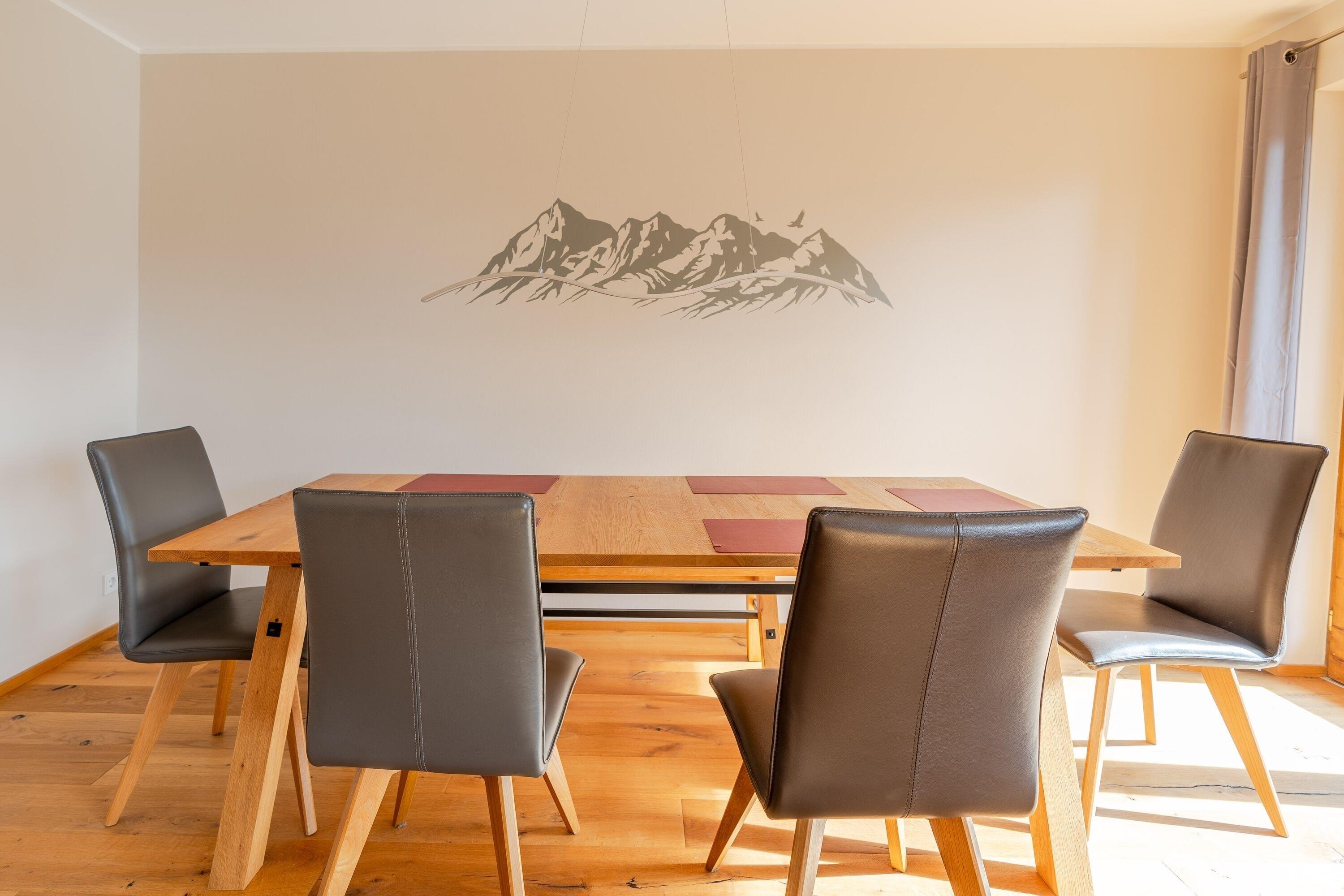 Die Ferienunterkunft "Gipfelblick" in Rettenberg bietet auf 74 m² Platz für maximal 4 Personen. Die Wohnung befindet sich in der 1. Etage und verfügt über ein Schlafzimmer, ein Badezimmer und ein großzügiges Wohn- Esszimmer mit Blick auf die Berge. Zur Ausstattung gehören ein Fernseher, ein Parkplatz, ein WLAN Anschluss sowie eine voll ausgestattete Küche mit Geschirrspüler. Die Nutzung von Haustieren ist nicht gestattet und die Wohnung ist ausschließlich für Nichtraucher. Auch eine gut ausgestattete Küche ist vorhanden. Vom Balkon aus genießen Sie einen herrlichen Blick auf die umliegenden Berge. Für Gäste, die gerne wandern, ist die Ferienwohnung besonders geeignet. Im Dorf steht ein Freibad zur Verfügung.