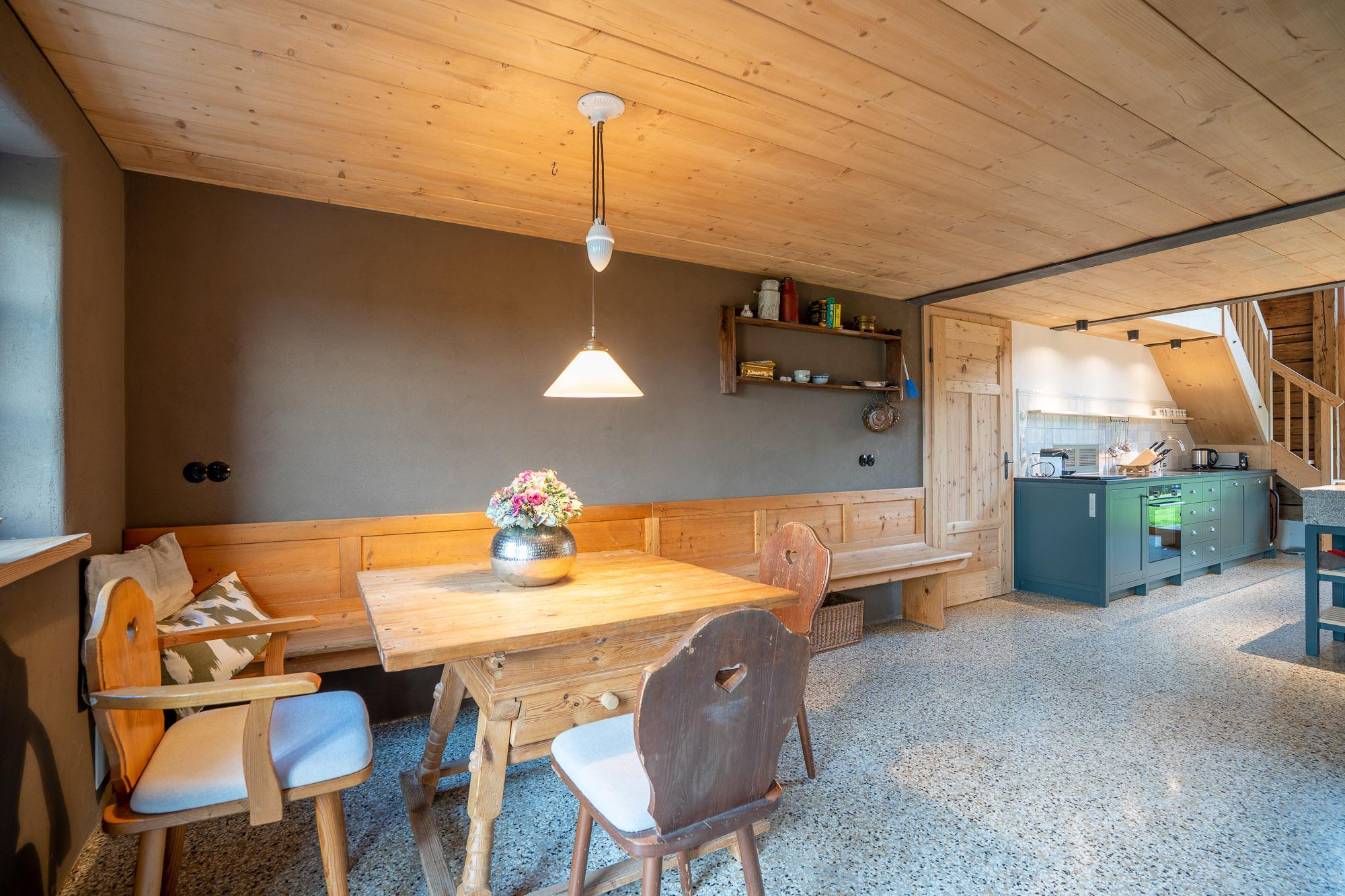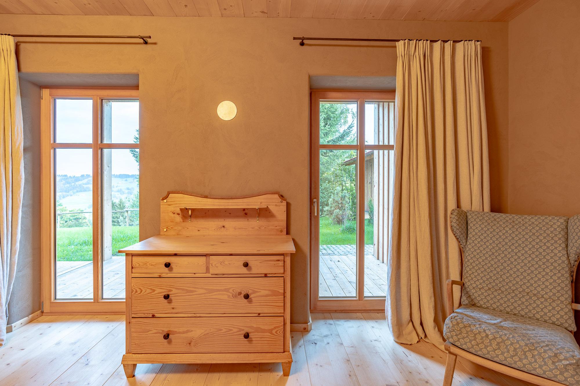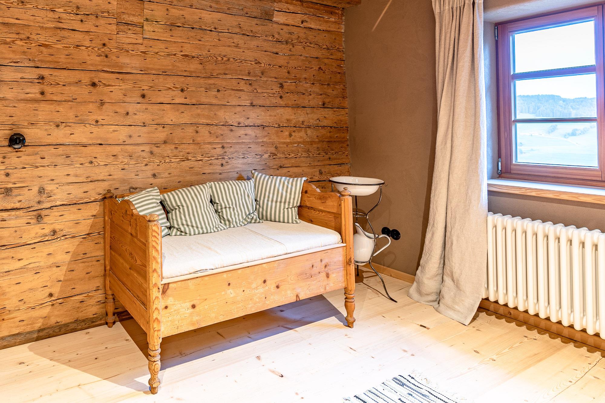 Mehr als drei Jahre dauerte die Planung und liebevolle Sanierung des 1870 erbauten alten Bauernhauses „Buchenberg“. Vorhandenes Altholz wurde genutzt und mit hoher Wertigkeit wieder eingebaut. Natürliche Materialien verleihen den Räumen eine spürbare Behaglichkeit und ein grossartiges Raumklima. Ein freistehendes Urlaubsdomizil in ruhiger Alleinlage perfekt für Erholungsuchende.