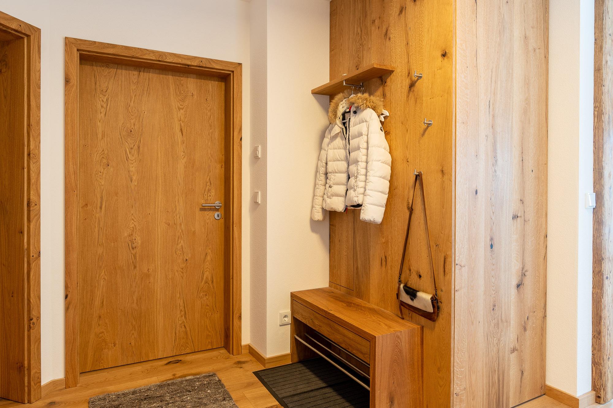 Verbringen Sie Ihren Urlaub in dieser neuen, hochwertig ausgestatteten Ferienwohnung im modernen Chalet Stil, die keine Wünsche offen lässt. Sie betreten die Wohnung über einen geräumigen Flur, in welchem sich eine Garderobe befindet. Von dort erreichen Sie das gemütlich gestaltete Wohn-Esszimmer mit integrierter hochwertiger Küche. Die Küche ist komplett ausgestattet und ermöglicht Ihnen auch im Urlaub, Ihre Familie und Freunde kulinarisch zu verwöhnen. Der große Esstisch bietet Ihnen genügend Platz für schöne gemeinsame Stunden.