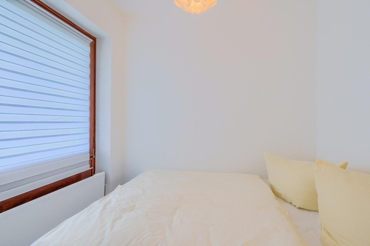 Schlafzimmer 2: Doppelbett (140x200 cm), kein Platz für ein Kinderreisebett vorhanden, Verdunkelung (Außenrollos)