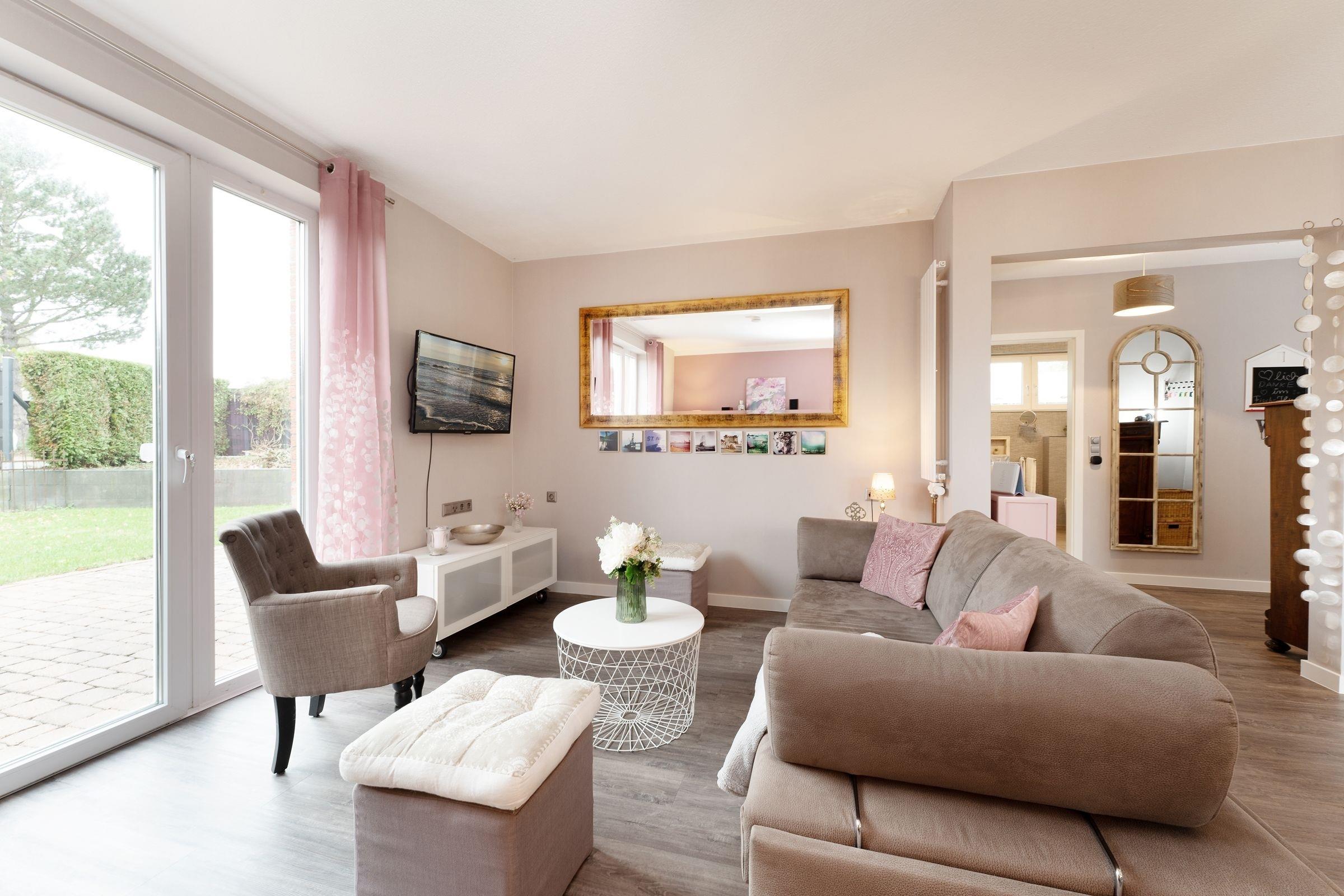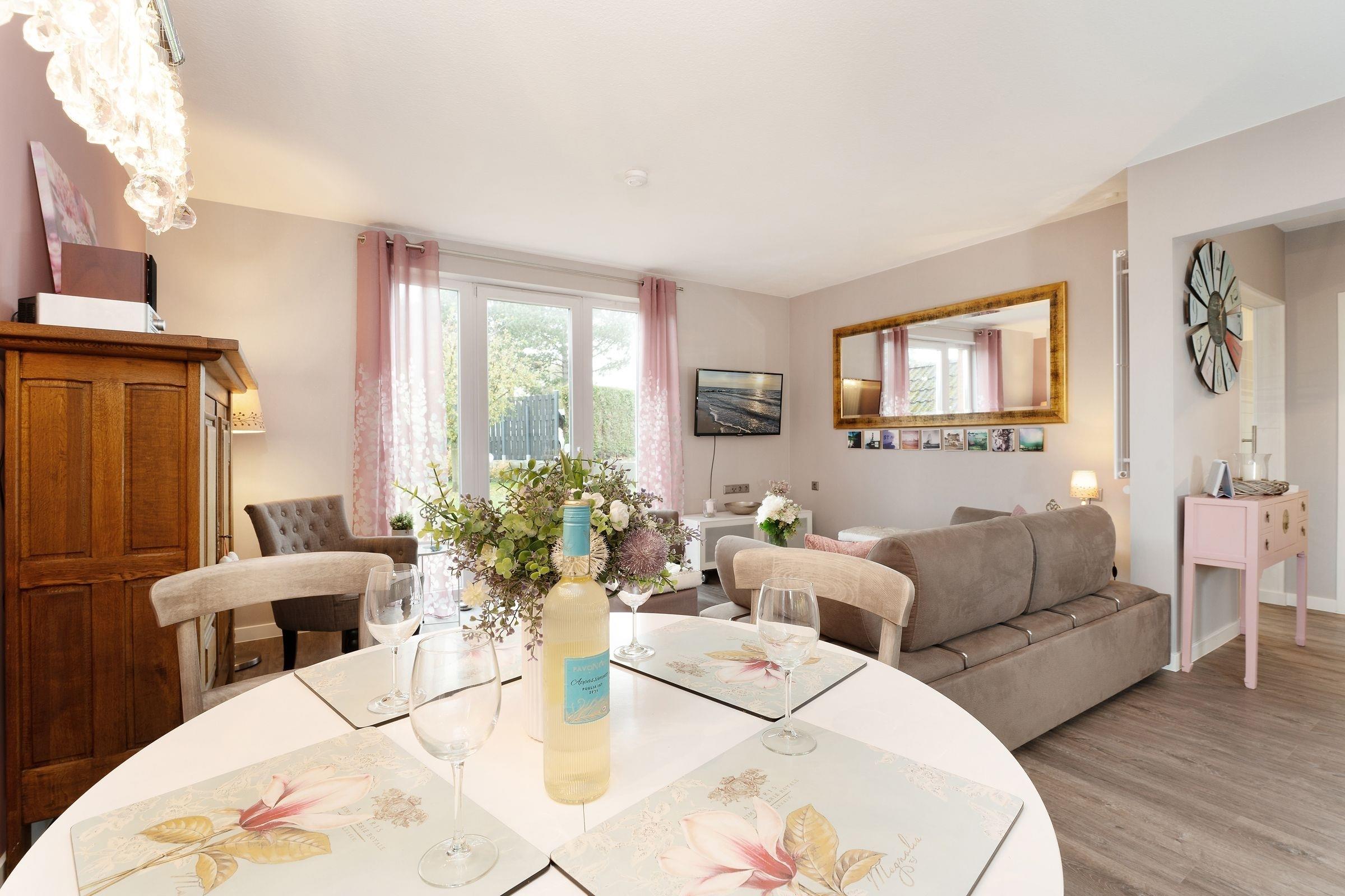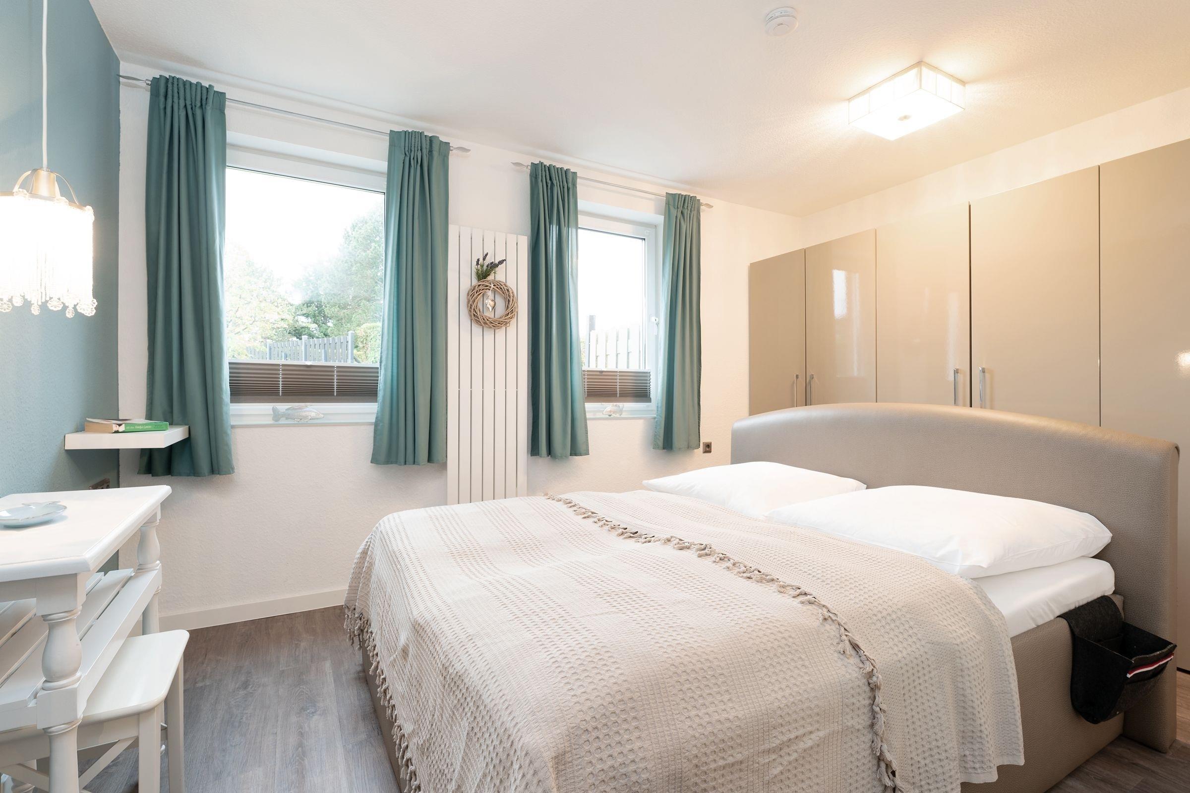 Treten Sie ein – in der charmanten Wohnung Fischhus werden Sie sich sofort wohlfühlen. Hier trifft guter Geschmack auf Gemütlichkeit: die Farben der Einrichtung sind perfekt aufeinander abgestimmt und sorgen für eine herrliche Atmosphäre. Der lichtdurchflutete Wohnbereich bietet neben einer großen Sofalandschaft mit TV-Gerät noch weitere Sitzmöglichkeiten zum gemütlichen Verweilen. In den Wohnraum integriert ist die moderne Küche, die mit Induktions-Herd, Nespresso-Maschine und Geschirrspüler punktet und jedem Hobby-Koch ein Lächeln ins Gesicht zaubert. Wenn die Sonne scheint, lockt es Sie sicher auf eine der zwei Terrassen oder in den eingezäunten Garten. Entspannen Sie tagsüber auf den Sonnenliegen. Oder lassen Sie den Abend mit einem Glas Wein und leckerem Grillgut ausklingen. Für die Nacht steht für Sie ein Doppelbett (2x 80x200 cm) im Schlafzimmer bereit. Die liebevolle Einrichtung wird Ihnen sicher süße Träume bescheren. Ihre Urlaubsgarderobe findet im Kleiderschrank Platz. Das moderne Badezimmer mit Tageslicht, bodengleicher Dusche und Badewanne sowie Föhn, Handtuchwärmer und Kosmetikspiegel bietet sicher den Komfort, den man sich im Urlaub wünscht.