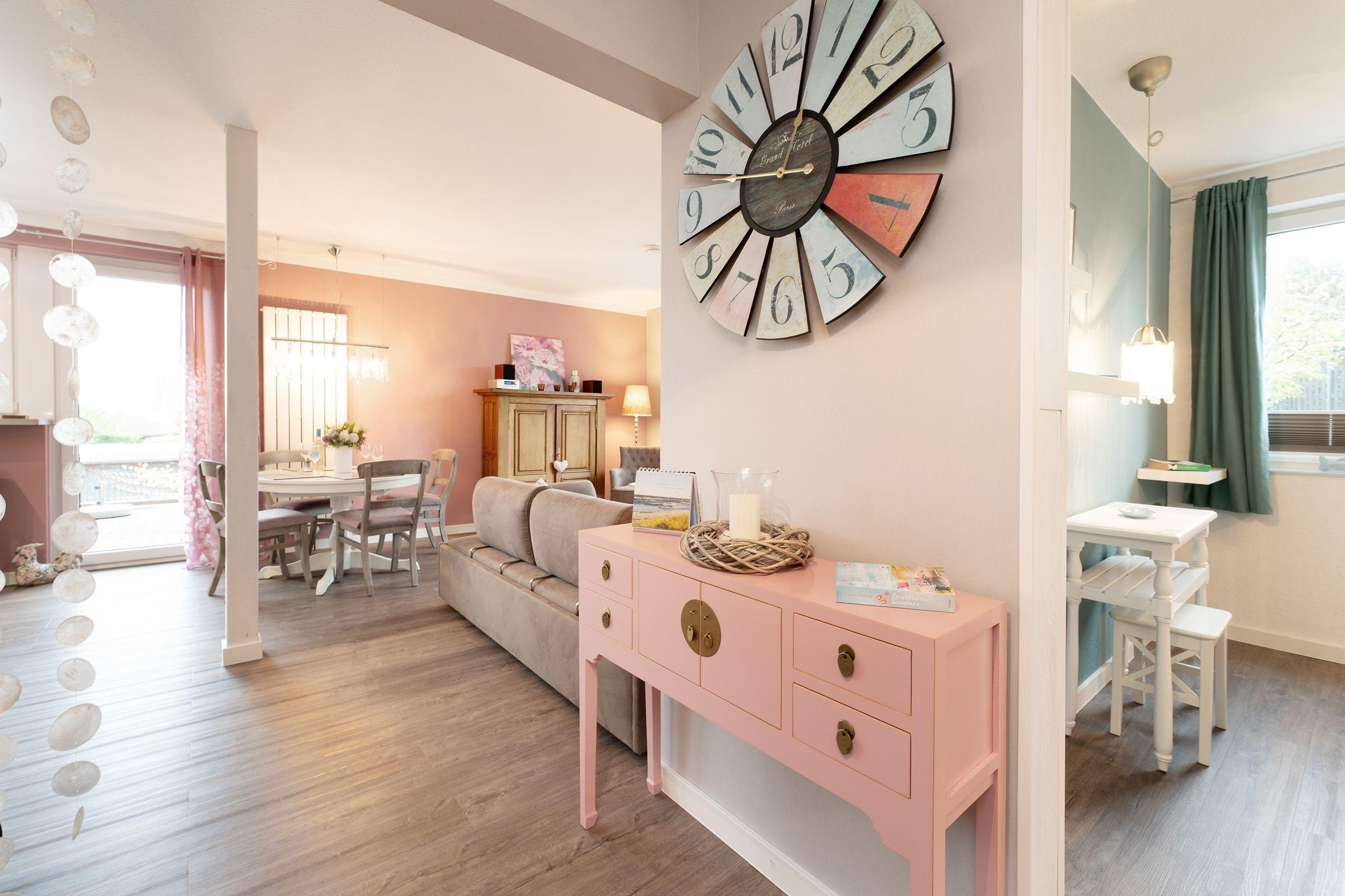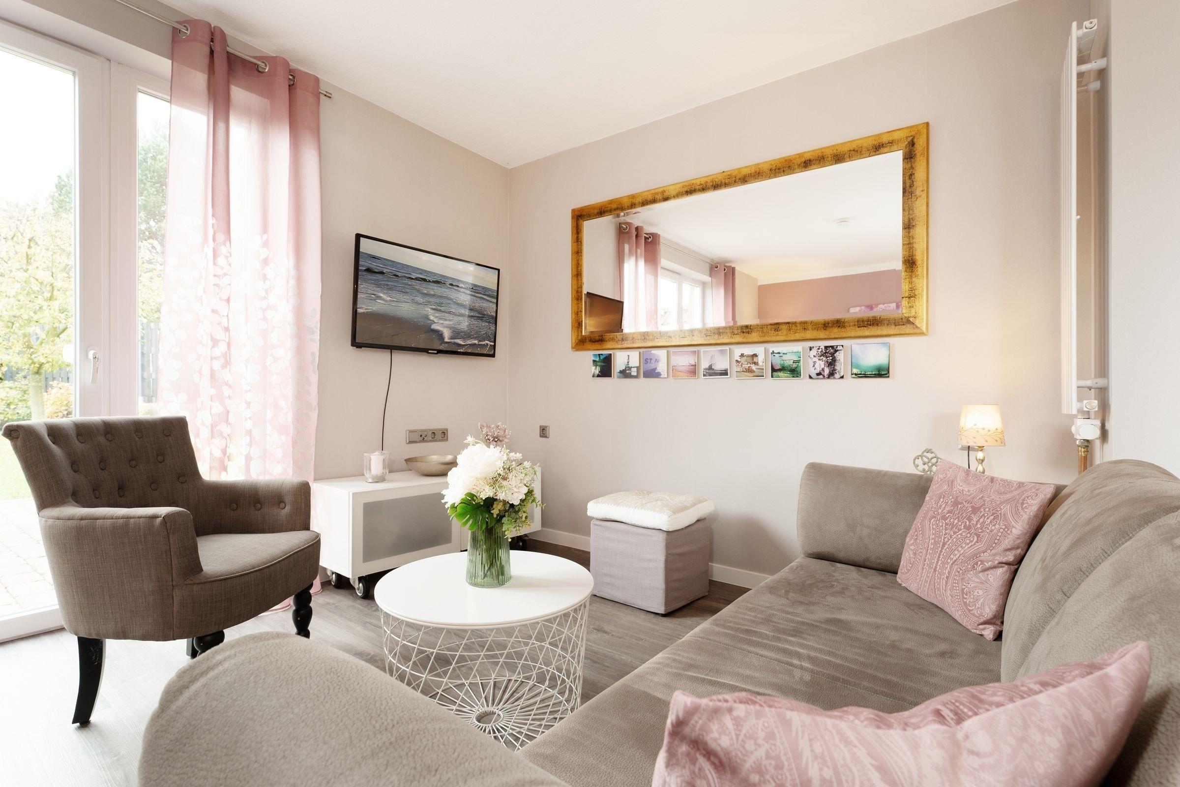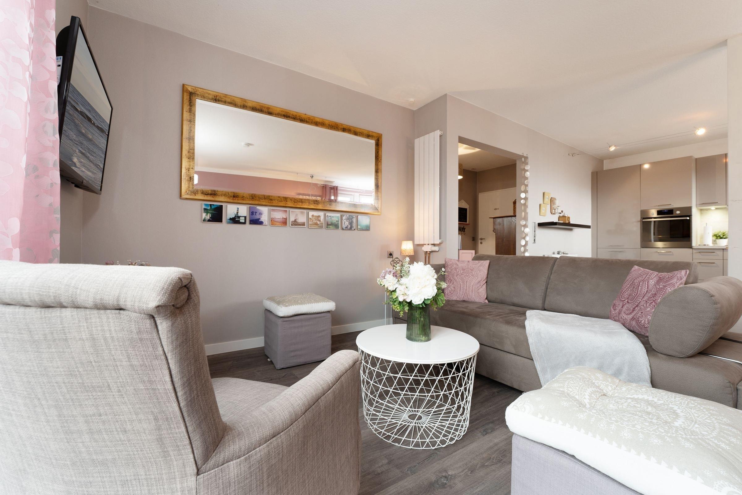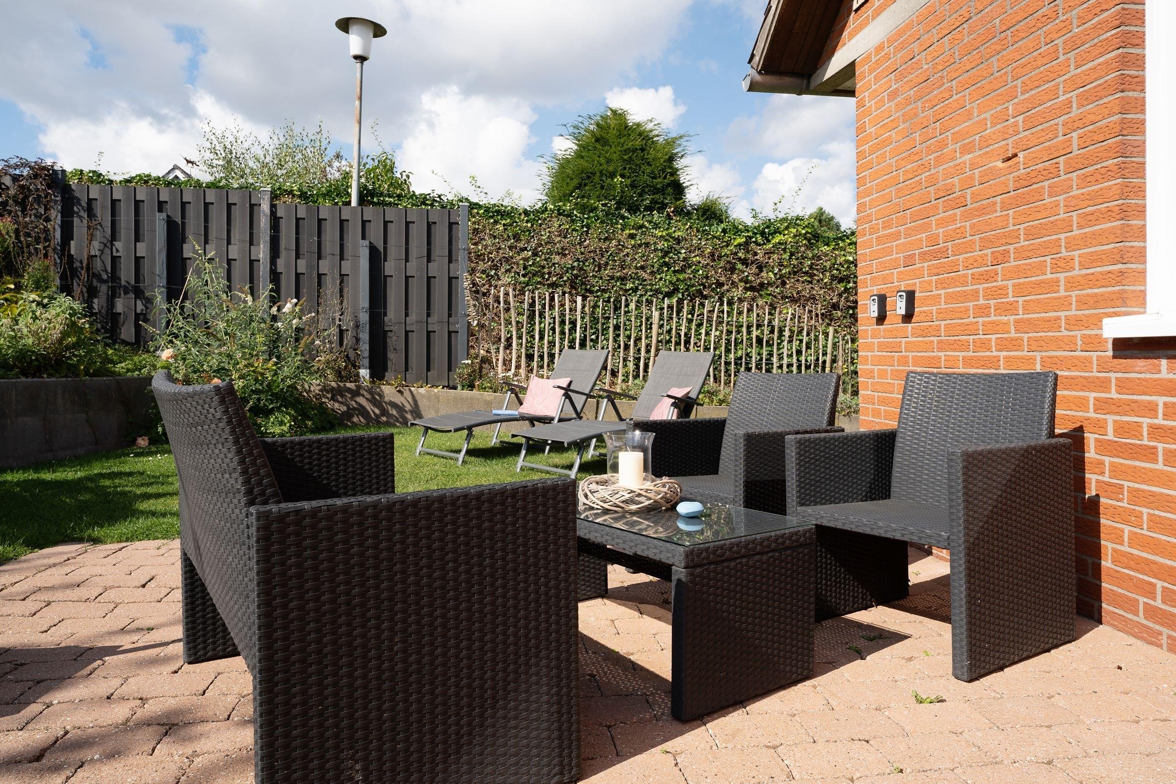 Treten Sie ein – in der charmanten Wohnung Fischhus werden Sie sich sofort wohlfühlen. Hier trifft guter Geschmack auf Gemütlichkeit: die Farben der Einrichtung sind perfekt aufeinander abgestimmt und sorgen für eine herrliche Atmosphäre. Der lichtdurchflutete Wohnbereich bietet neben einer großen Sofalandschaft mit TV-Gerät noch weitere Sitzmöglichkeiten zum gemütlichen Verweilen. In den Wohnraum integriert ist die moderne Küche, die mit Induktions-Herd, Nespresso-Maschine und Geschirrspüler punktet und jedem Hobby-Koch ein Lächeln ins Gesicht zaubert. Wenn die Sonne scheint, lockt es Sie sicher auf eine der zwei Terrassen oder in den eingezäunten Garten. Entspannen Sie tagsüber auf den Sonnenliegen. Oder lassen Sie den Abend mit einem Glas Wein und leckerem Grillgut ausklingen. Für die Nacht steht für Sie ein Doppelbett (2x 80x200 cm) im Schlafzimmer bereit. Die liebevolle Einrichtung wird Ihnen sicher süße Träume bescheren. Ihre Urlaubsgarderobe findet im Kleiderschrank Platz. Das moderne Badezimmer mit Tageslicht, bodengleicher Dusche und Badewanne sowie Föhn, Handtuchwärmer und Kosmetikspiegel bietet sicher den Komfort, den man sich im Urlaub wünscht.
