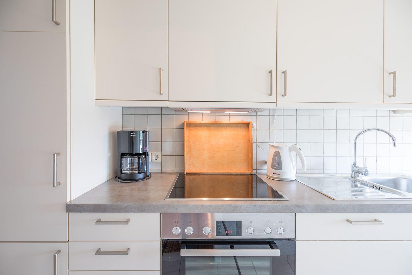 Die Wohnung mit einem separaten Eingang ist ca. 60 qm groß, großzügig geschnitten mit einem großen lichtdurchfluteten Wohn- und Essraum. Die vielen sichtbaren Balken bei hohen Decken sorgen für ein behagliches Raumgefühl. Die Einbauküche hat eine exklusive Ausstattung (Mikrowelle, Spülmaschine, separater Eisschrank), das Schlafzimmer ist mit einem Doppelbett (1,8 x 2,0 m) ausgestattet und ist ebenso wie der Wohn-Essraum mit viel Liebe eingerichtet und nordisch dekoriert. Das Badezimmer ist mit Dusche und WC eingerichtet. Im Garten stehen Grill und Gartenmöbel kostenlos zur Verfügung.