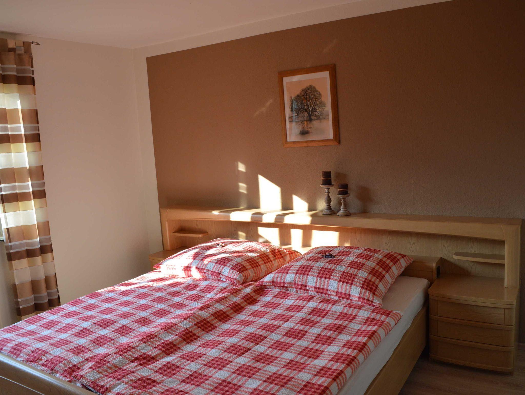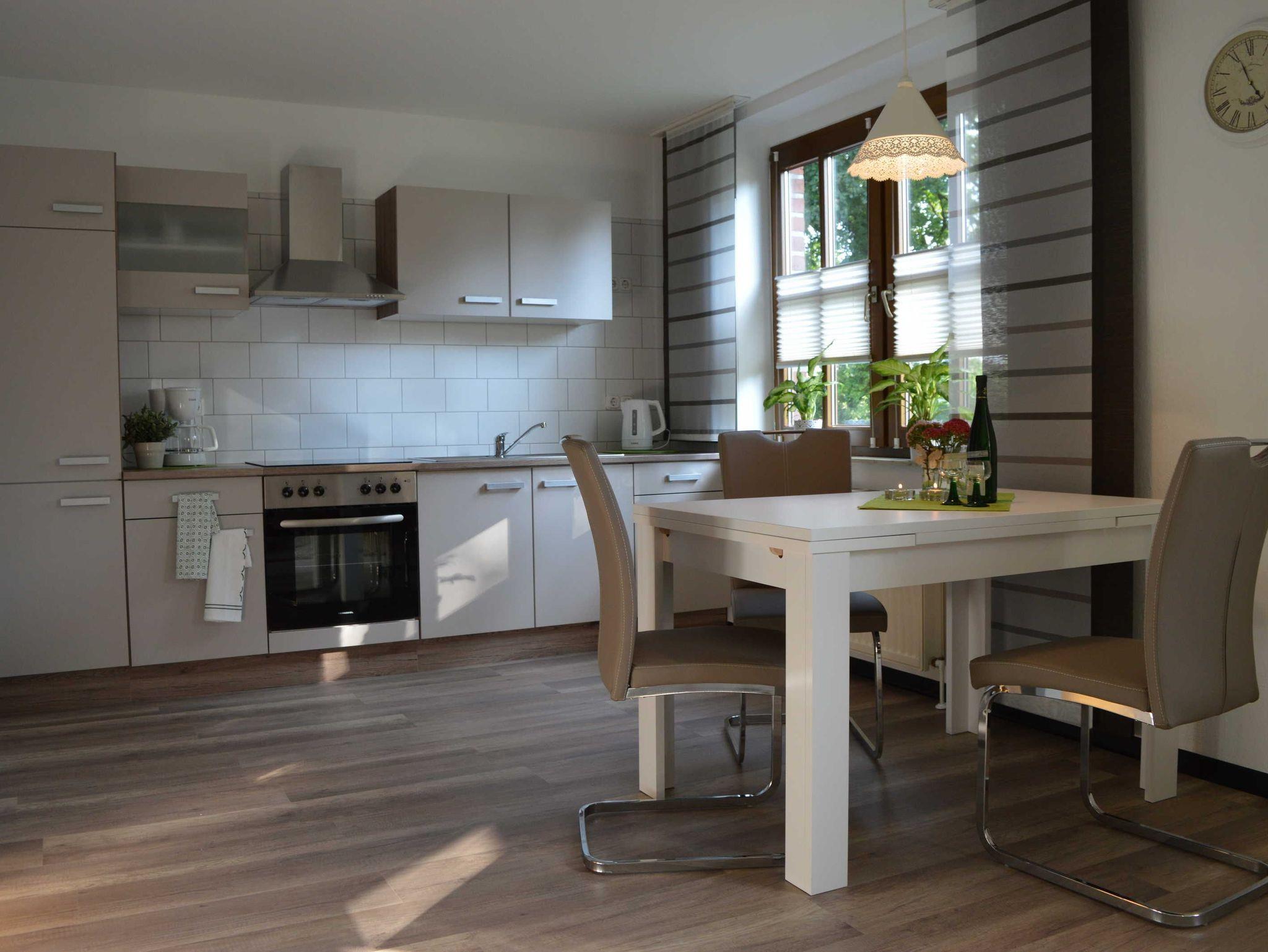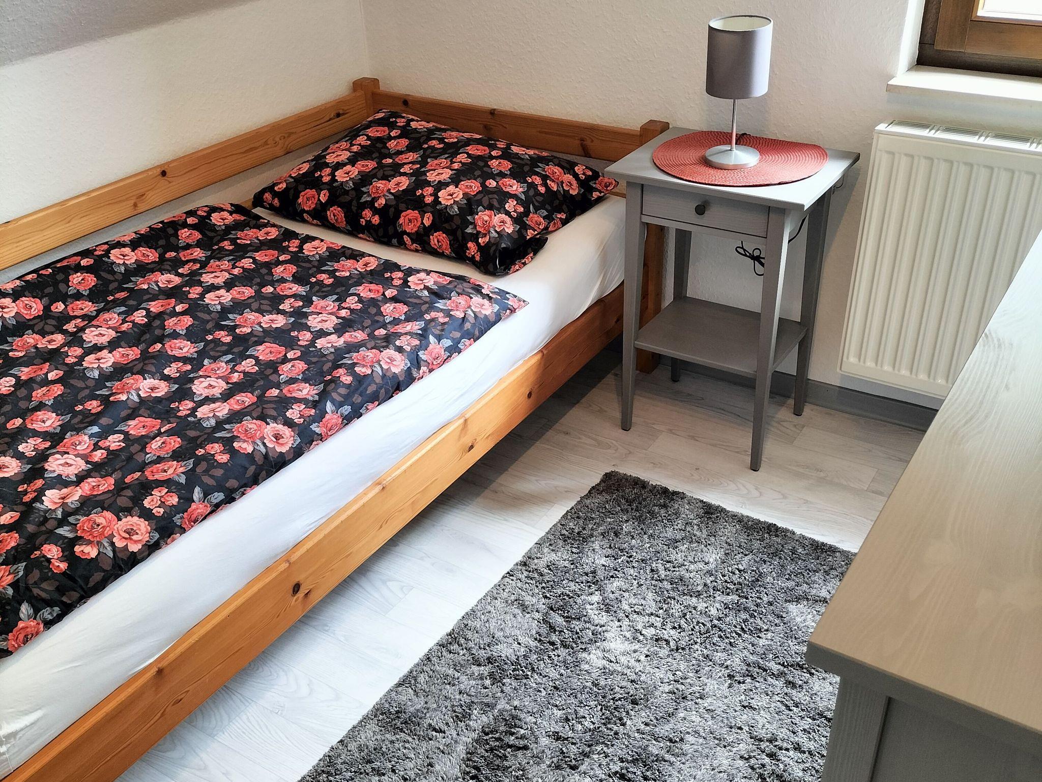 Die moderne Ferienwohnung bietet ein großes Schlafzimmer im Erdgeschoss mit gemütlichem Doppelbett (1,80 x 2,00m), ein weiterer Schlafbereich im Dachgeschoss mit einem Einzelbett. (Verdunklungsmöglichkeit und Insektenschutz in den Schlafräumen). Ein großes Badezimmer mit Badewanne und Duschzelle sowie ein separates WC. Im Wohnkochbereich finden Sie eine gemütliche, vollausgestattete Küche mit Mikrowelle Kaffeemaschine, Wasserkocher, Toaster, Elektroherd mit Backofen und vielen weiteren Kochutensilien.