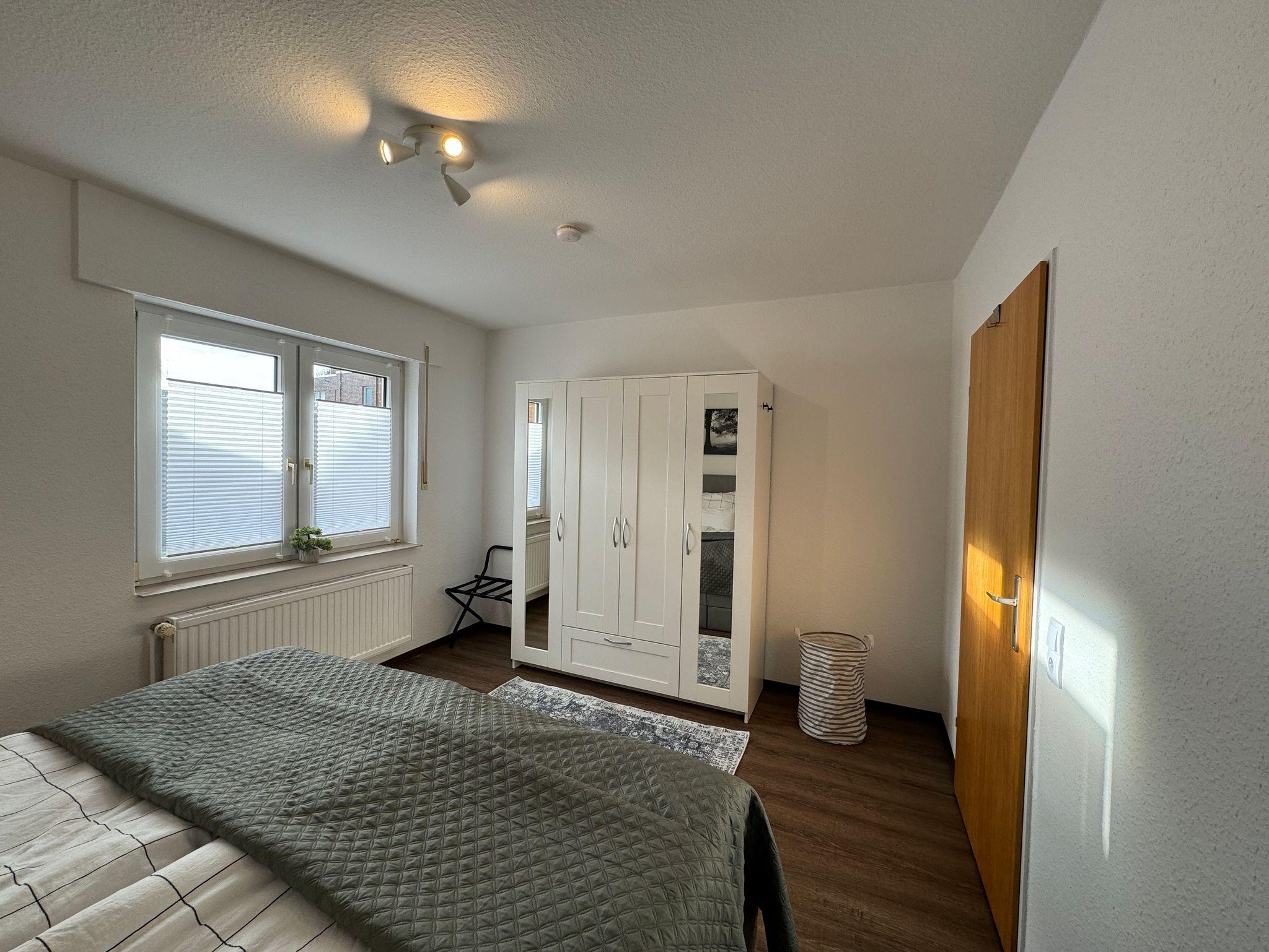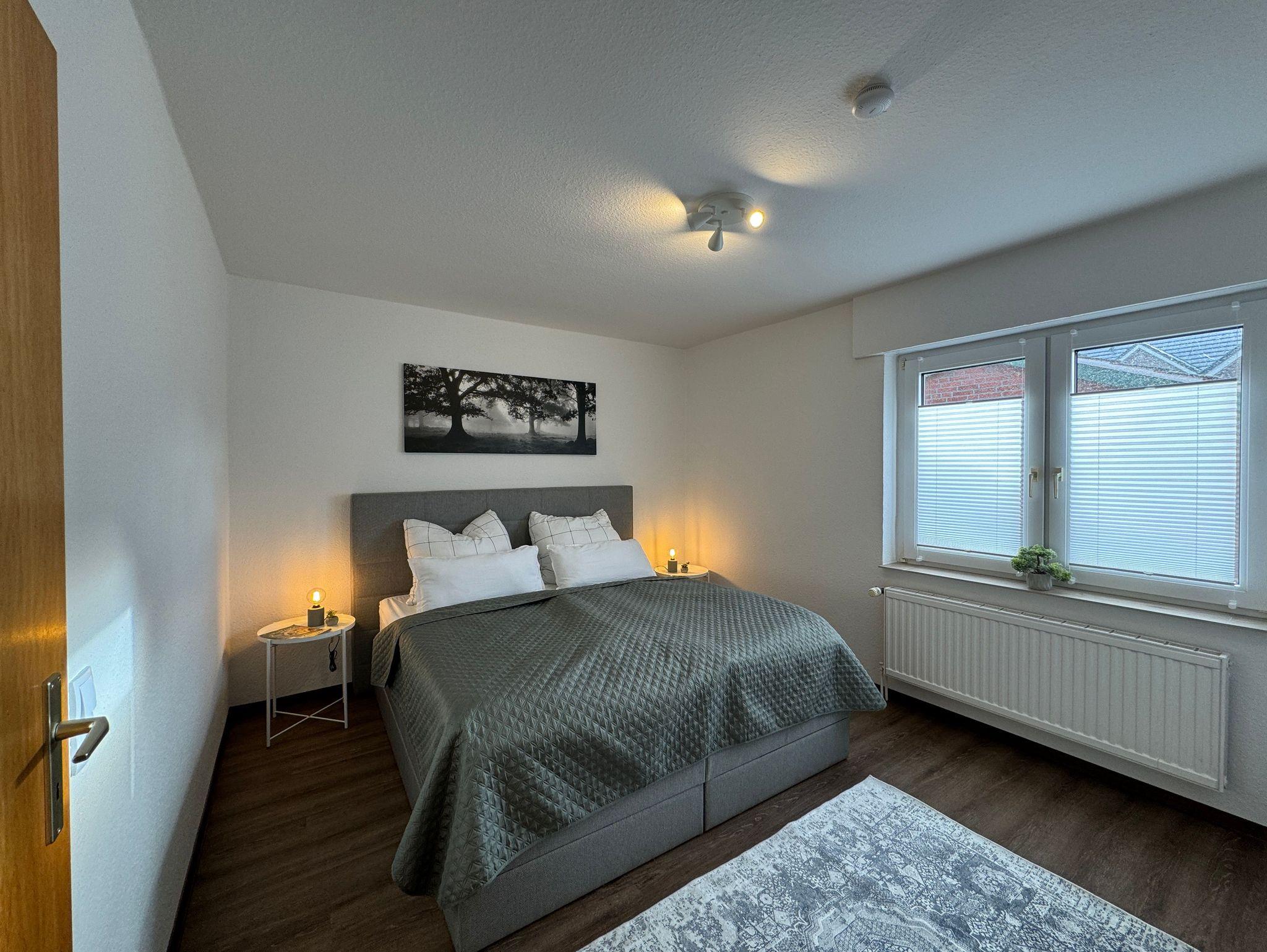 Im Schlafzimmer erwartet Sie ein Boxspringbett und genügend Stauraum für Ihre Kleidung.