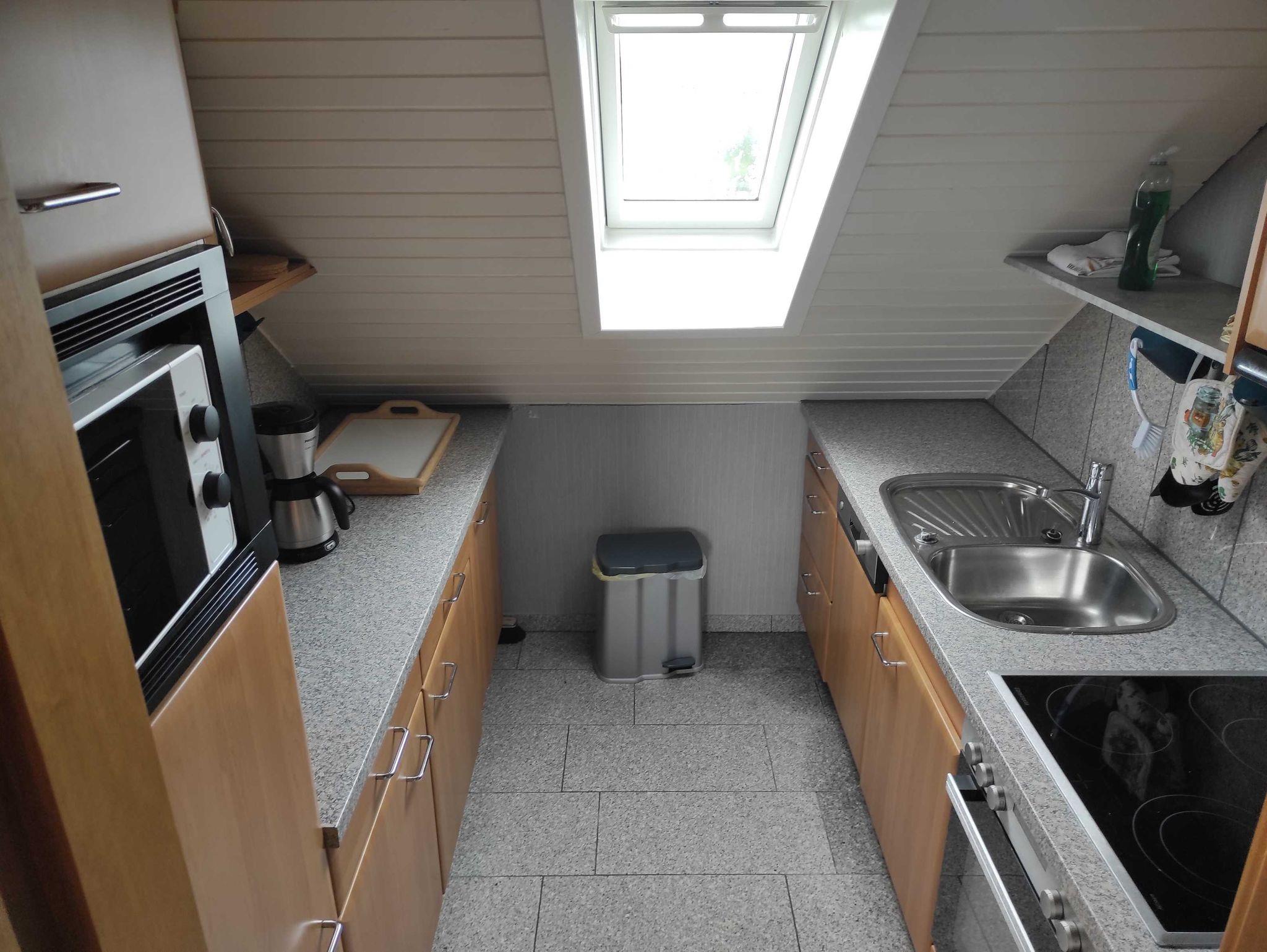 • kleine Küche mit Schiebetür zum Wohnzimmer