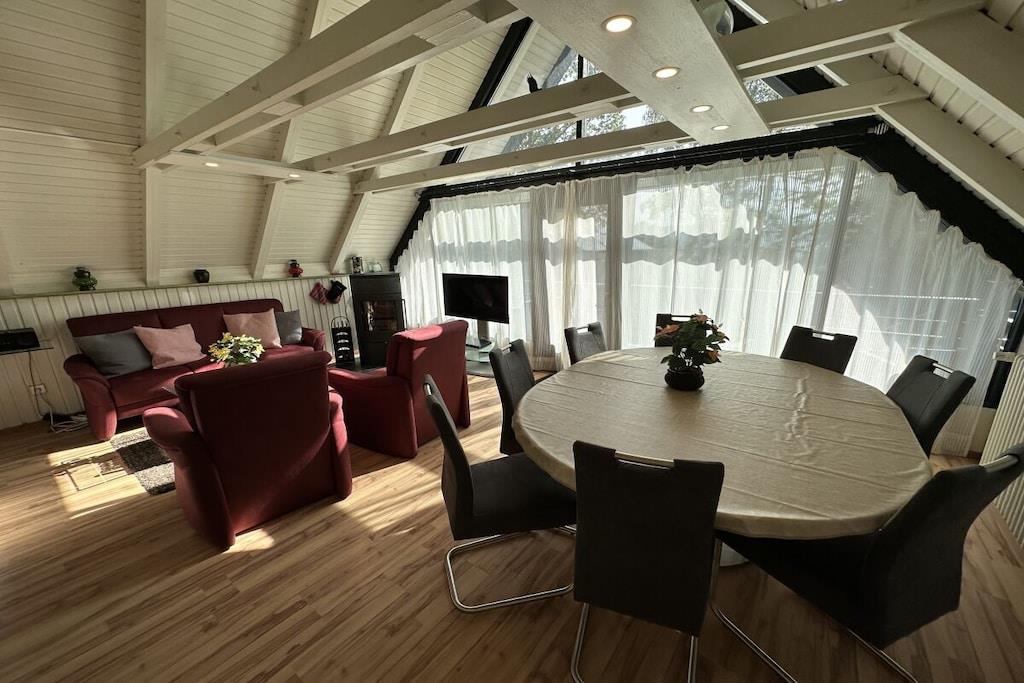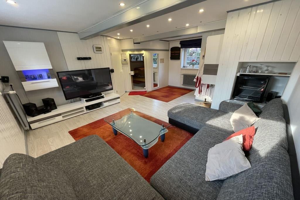 Dette feriehus på 110 kvm har en indhegnet grund på 815 kvm. Det har plads til op til 6 personer fordelt på 3 etager. En elektrisk ladestation er centralt placeret. Med 2 stuer, pejs, 4 digitale LED-satellit-tv'er og et surround sound-system, 200 Mbps Wi-Fi, Blu-ray-afspiller og DAB+ musiksystem, pengeskab, luksussauna, køkken med køleskab og fryser, 4-zoners induktionskogeplade, opvaskemaskine og mikrobølgeovn. 3 soveværelser, 2 badeværelser med toilet og bruser, balkon, terrasse med grill og trampolin, vaskemaskine, tørretumbler, parkeringsplads samt gascentralvarme og bordtennisbord. Haven har en pool og et opvarmet spabad med LED-belysning.