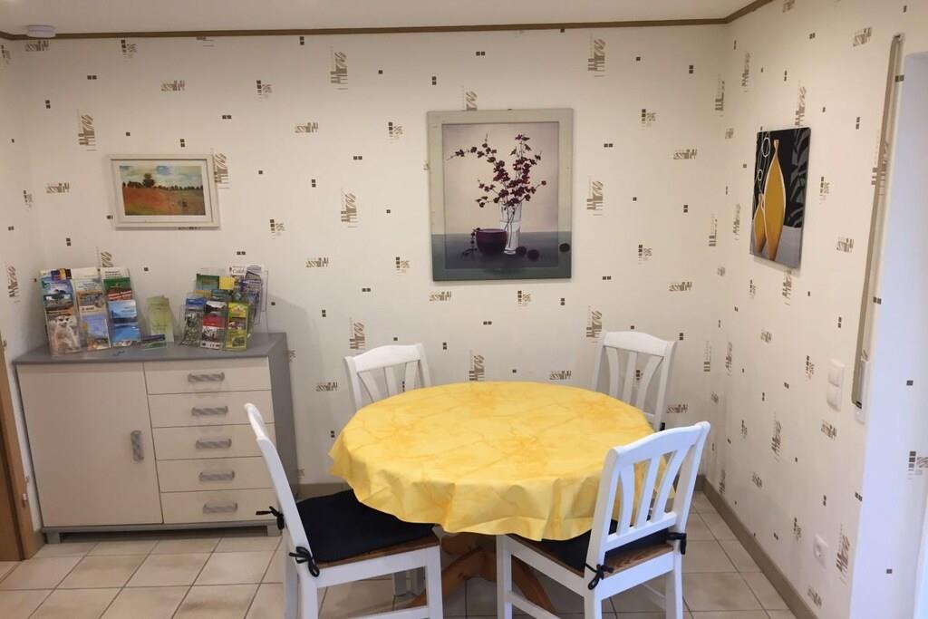 Willkommen in unserer 45 qm großen Ferienwohnung, die sich im Untergeschoss befindet und von 2 Personen nutzbar ist. Die Ferienwohnung ist ausgestattet mit einem Wohn-Schlafzimmer mit Stereo Radio, Kabel TV, DVD-Player, Filmen, Safe und einer gemütlichen Sitzecke. In der Ferienwohnung, die über Zentral- und Fußbodenheizung verfügt, ist DSL Internet mit 10.000 M/Bit vorhanden. Die Küche ist voll ausgestattet mit Geschirr, Mikrowelle, Spülmaschine, Kochofen mit Ceranfeld und einer Essecke. Waschmaschine und Trockner ist vorhanden. Auch eine große Außenterrasse mit Liegewiese lädt zum Entspannen ein und eine Grillmöglichkeit ist vorhanden. Parken Sie gerne auf dem vorhandenen Autostellplatz. Wir freuen uns auf Ihren Urlaub im Hunsrück!