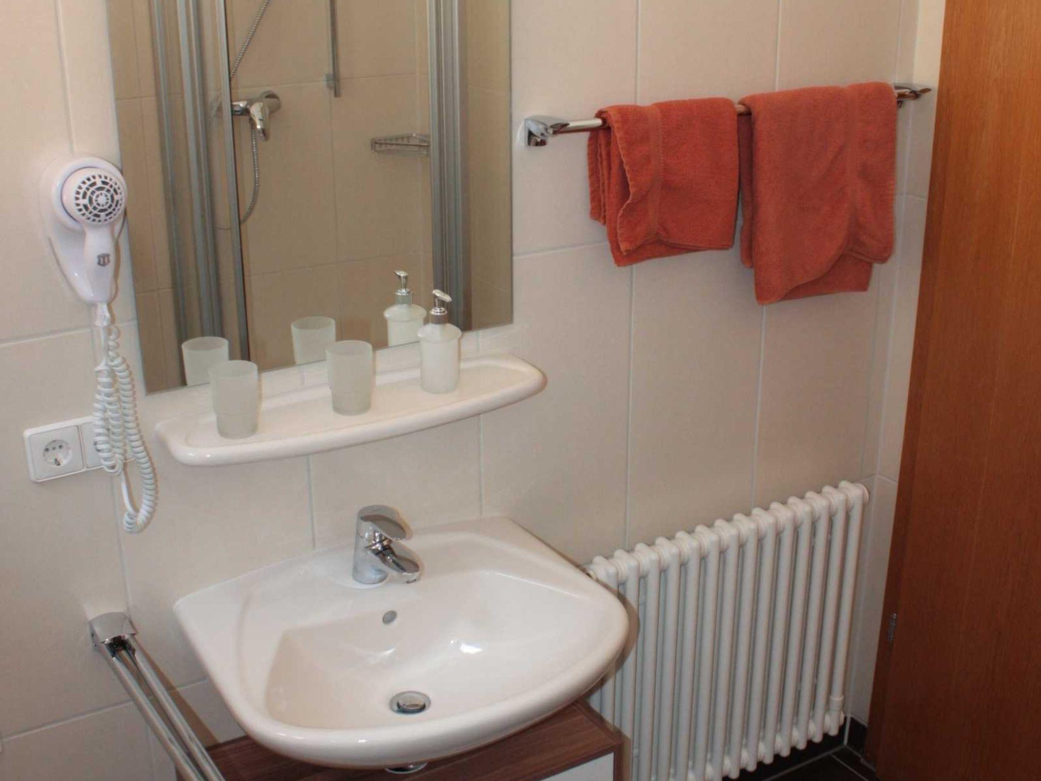 • Bad: Dusche; Waschbecken; WC; Badetücher; Fön; Seifenspender, Becher