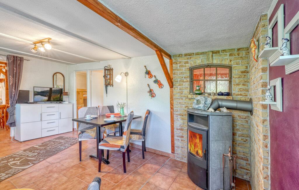 Det komfortable feriehus med søudsigt ligger på en separat rekreativ grund i en skøn skovbeliggenhed i en feriebebyggelse ved Braminsee. Da Braminsee er PRIVATEJET, må den IKKE bruges til fiskeri eller svømning. Smukke badeområder og fiskemuligheder ved Großer Zermittensee eller Großer Zechliner See er omkring 1.200 m væk. Det cirka 55 kvm store feriehus har en komfortabel stue (sofa, pejs, spisebord, fladskærms-tv, radio), et separat køkken (elkomfur med ovn, køleskab med fryser mulighed, mikroovn, vaskemaskine, kaffemaskine, brødrister , elkedel), to soveværelser (1 x dobbeltseng, 1 x køjeseng) og et badeværelse (bruser, toilet) Der er også en smuk overdækket veranda med udsigt over søen (begrænset om sommeren, når der er løv), div. siddemuligheder på den omfattende ejendom, grill, cykelkælder samt parkeringsplads ved huset. Efter aftale er brug af cykler eller robåde (også med elmotorer) på Großer Zechliner See (ca. 1,2 km væk) muligt mod et gebyr.. Slutrengøring, el, gas og vand er inkluderet i den samlede pris . Medbring venligst eget sengelinned og håndklæder, eller de kan lejes mod betaling. Betales på stedet: spa-afgift, brænde (på forespørgsel) 5 EUR/kurv. (mobil lejlighed) og DZV258 kan lejes sammen, ideel til grupper på op til seks personer.