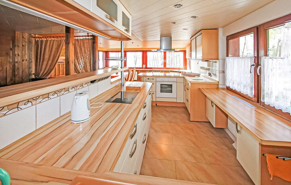Det cirka 250 kvm store sommerhus til maks. 10 personer ligger på en separat og fuldt indhegnet naturgrund på over 1.000 kvm i en helt ugeneret beliggenhed væk fra byen direkte ved søen Braminsee, en smuk og stille skovsø. Her er du helt uforstyrret i de smukke omgivelser i Ruppiner skov- og søområdet i Ruppiner Schweiz. Se traner og dyreliv direkte fra ejendommen. Byen Kagar ligger omkring 2 km væk, og distriktsbyen Rheinsberg er omkring 10 km væk. Det er forbudt at køre motorbåde på Bramin-søen, så du kan nyde naturen med alle dine sanser i absolut fred og privatliv. Der er et lille naturligt badeområde for husets gæster; Så du har søen næsten helt for dig selv.Sommerhuset har tre boligplaner og er funktionelt indrettet. I stueetagen er der en stor stue (polstrede møbler, fladskærms-tv), et stort køkken (elkomfur med ovn, køleskab, diverse køkkenmaskiner og et spisebord med udsigt over søen), et soveværelse (dobbelt sovesofa) og et lille badeværelse med badekar. På øverste etage (adgang via en stejl, pladsbesparende vindeltrappe) er der yderligere to soveværelser (1 x dobbeltseng, balkon med søudsigt, 1 x enkeltseng som gennemgangsrum) og et badeværelse med brus/toilet . I kælderen er der endnu en komplet boligenhed med kombineret stue/soveplads (dobbeltseng, polstrede møbler, fladskærms-tv, mini hi-fi, spisebord), soveværelse (2 enkeltsenge), køkken (el-komfur) med ovn, køleskab, spisebord ), et badeværelse med brus/toilet og et bryggers med vaskemaskine og tørretumbler. En barneseng og en høj stol er til rådighed for små børn. Internet (W-LAN) er også tilgængeligt. Udenfor er der flere møblerede siddepladser/terrasser, grill, liggestole, opbevaring til cykler og parkeringspladser. Den samlede pris inkluderer slutrengøring samt vand- og energiforbrug. Du kan medbringe dit eget vasketøj eller leje det på stedet. Kagar er en smukt beliggende landsby i et vidunderligt skovklædt og naturligt miljø, ca. 10 km fra Rheinsberg. Adskillige fiske- og badesøer, der alle er forbundet med hinanden, ligger i umiddelbar nærhed og byder på de bedste betingelser for vandvandring, fiskeri og svømning. Men alle naturelskere, der søger fred og ro, som nyder at cykle, vandre, plukke svampe og se vildt er kommet til det rette sted her.Der er en offentlig bådhavn til ro- og vandcykler, restauranter og en lille butik med hverdagsprodukter. Der er et supermarked i Flecken-Zechlin, 4 km derfra, og yderligere butikker og restauranter i Rheinsberg.