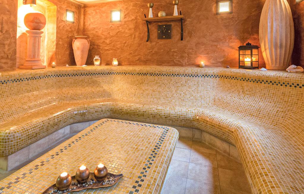 Feriekomplekset med i alt ti separate ferielejligheder i forskellig størrelse til to til seks personer ligger direkte ved søen Grienericksee, cirka 500 meter fra Rheinsberg Slotspark, på en cirka 1.100 kvadratmeter stor grund med eget wellnessområde. De er komfortabelt indrettede (sidde- og spiseplads, køkken, nogle med pejs, fladskærms-tv, WiFi), tilgængelige med elevator og har alle balkon eller terrasse med udsigt over søen. Lejligheden ligger på 1. sal. Det er 75 m² stort og er ideelt for familier med op til tre børn. Det har en rummelig opholdsstue (polstrede møbler med sovefunktion, fladskærms-tv, hi-fi, pejs), et åbent tekøkken (spisebord, el-komfur med ovn, køleskab med fryser, opvaskemaskine, mikroovn, diverse køkkenmaskiner) , 2 soveværelser (1 x dobbeltseng, 1 x 2 enkeltsenge) og bad/toilet. Der er også balkon med udsigt over søen. Til rådighed på ejendommen er: vores egen bådhavn, en fiskedam med et hyggeligt læsehjørne, en græsplæne til solbadning, en sandkasse, et bordtennisbord, plads nok til at lege, en grillplads til grill, cykelopbevaring og parkeringspladser. I vores eget wellnessområde kan flere saunaer eller massagetilbud (reservation nødvendig) benyttes mod betaling. Desuden: leje af cykler (6 EUR/cykel/dag) og brug af vaskerum med vaskemaskine og tørretumbler Inkluderet i totalprisen: slutrengøring, sengelinned, håndklæder, vand og energi. Betales på stedet: turistskat, brug af sauna, massage, cykeludlejning. Rygning er kun tilladt udendørs. Den lille by Rheinsberg er et statsanerkendt feriested midt i det smukke Rheinsberg-sølandskab i Brandenburg. Regionen imponerer med utallige søer, der er forbundet med hinanden med kanaler. Et ideelt feriested, ikke kun for vandvandrere. Takket være den preussiske kronprins Friedrich, der residerede i rokokoslottet i Rheinsberg i 1700-tallet, blev stedet et blomstrende kulturcenter og inspirerede blandt andre Kurt Tucholsky og Theodor Fontane. I dag finder Kammeroperafestivalen og andre musikbegivenheder sted hvert år på slottets område, som også omfatter et teater, kammeroperaen og Kurt Tucholsky-museet. Udover den attraktive gamle bydel med talrige restauranter og caféer, er byens besøgsmagneter blandt andet passagerbådture, båd- og cykeludlejning og en badeanstalt ved søen Grienericksee. Forbindelse til langdistancecykelstien Berlin-København er 20 km væk.