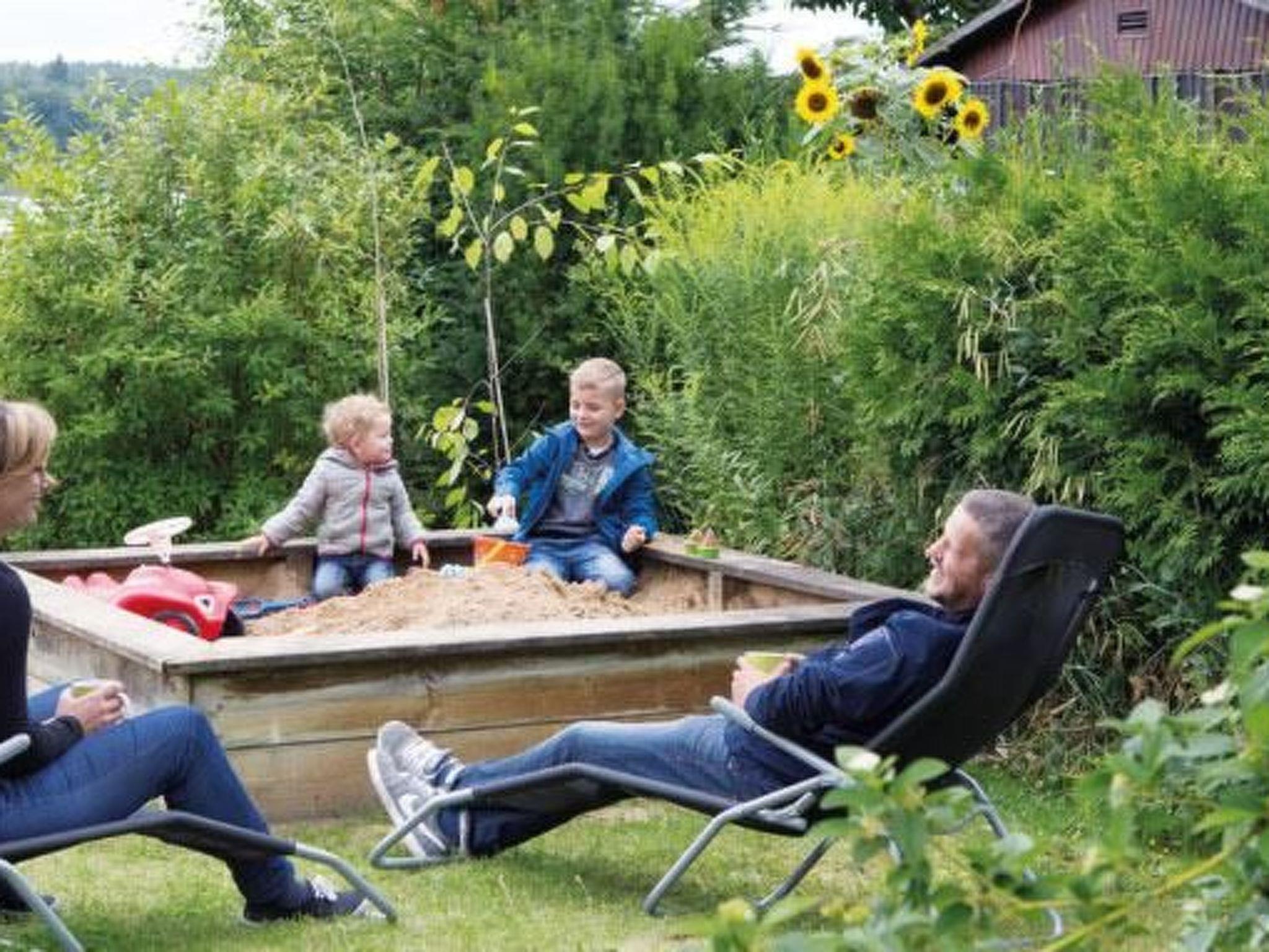Enjoy the fresh air and the beautiful view from your own balcony or spend sociable hours in the shared garden. This offers plenty of space to relax or socialise. There is good news for guests with a medium-sized dog (30 to 60 cm): An animal companion is very welcome in our holiday flat.
