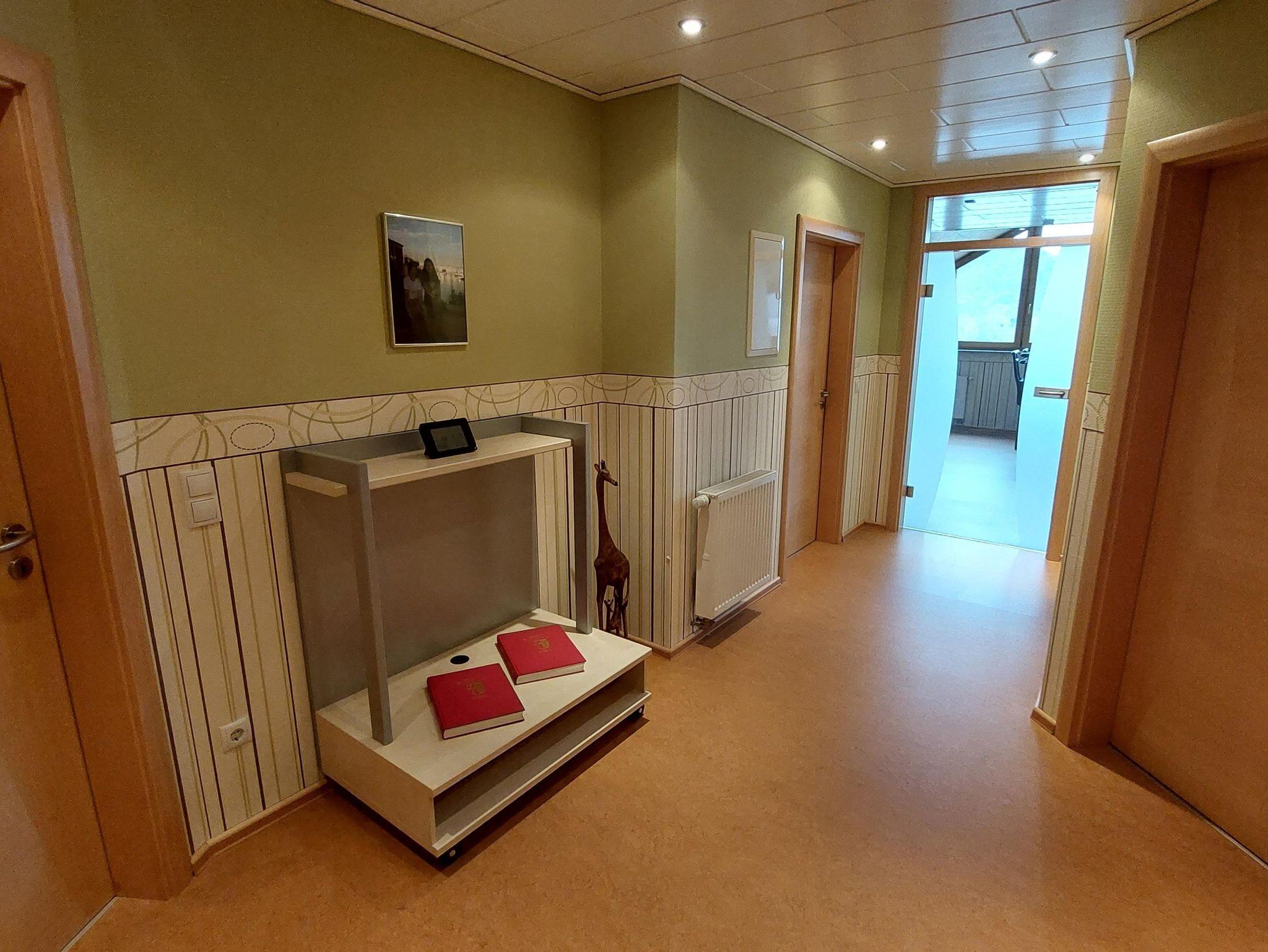 Unsere Ferienwohnung liegt im 2. Stock und besteht aus einem großen Wohnzimmer mit Flachbild-TV und zwei verschiedenen Essgelegenheiten, einer voll ausgestatteten Küche, zwei Schlafzimmern (Doppelschlafzimmer mit 1,80 m-Doppelbetten und einen zweiten Fernseher, Einzelschlafzimmer mit 0,90 x 2.00 m Bett), großes Badezimmer mit Badewanne & Dusche sowie einem Gäste-WC. Die Ferienwohnung verfügt über kostenlosen Internetanschluss WLAN. Damit Sie von der Bahnlinie nicht gestört werden, sind alles Fenster mehrfach verglast.