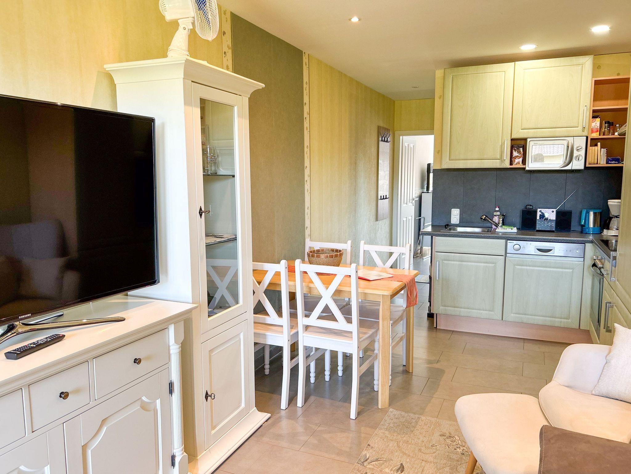 Die Ferienwohnung SYTO 2 ist mit ihren 35 m² der ideale Ort für einen entspannten Aufenthalt mit bis zu 4 Personen. Über die Terrasse gelangst du direkt in das gemütliche Wohnzimmer, das mit einem Schlafsofa (180x200) und einem TV ausgestattet ist ? der perfekte Platz, um den Tag ausklingen zu lassen. Die offene Küche ist komplett ausgestattet und lässt keine Wünsche offen. Hier kannst du mit Herd, Backofen, Kühlschrank, Spülmaschine, Kaffeemaschine, Toaster und Wasserkocher alles zubereiten, was dein Herz begehrt. Im Schlafzimmer erwartet dich ein bequemes Doppelbett (180x200), das für erholsame Nächte sorgt. Der Kleiderschrank bietet genügend Stauraum für deine Sachen und auch hier findest du einen TV, damit du dich abends bei einem Film entspannen kannst. Das Bad ist modern und funktional eingerichtet, mit einer Dusche und einem WC, damit du dich jederzeit frisch machen kannst. Besonders schön ist die zusätzliche Terrasse auf der Rückseite des Hauses, die dir noch mehr Freiraum bietet. Ob beim Frühstück in der Morgensonne oder beim Entspannen am Nachmittag ? hier kannst du die Ruhe genießen.
