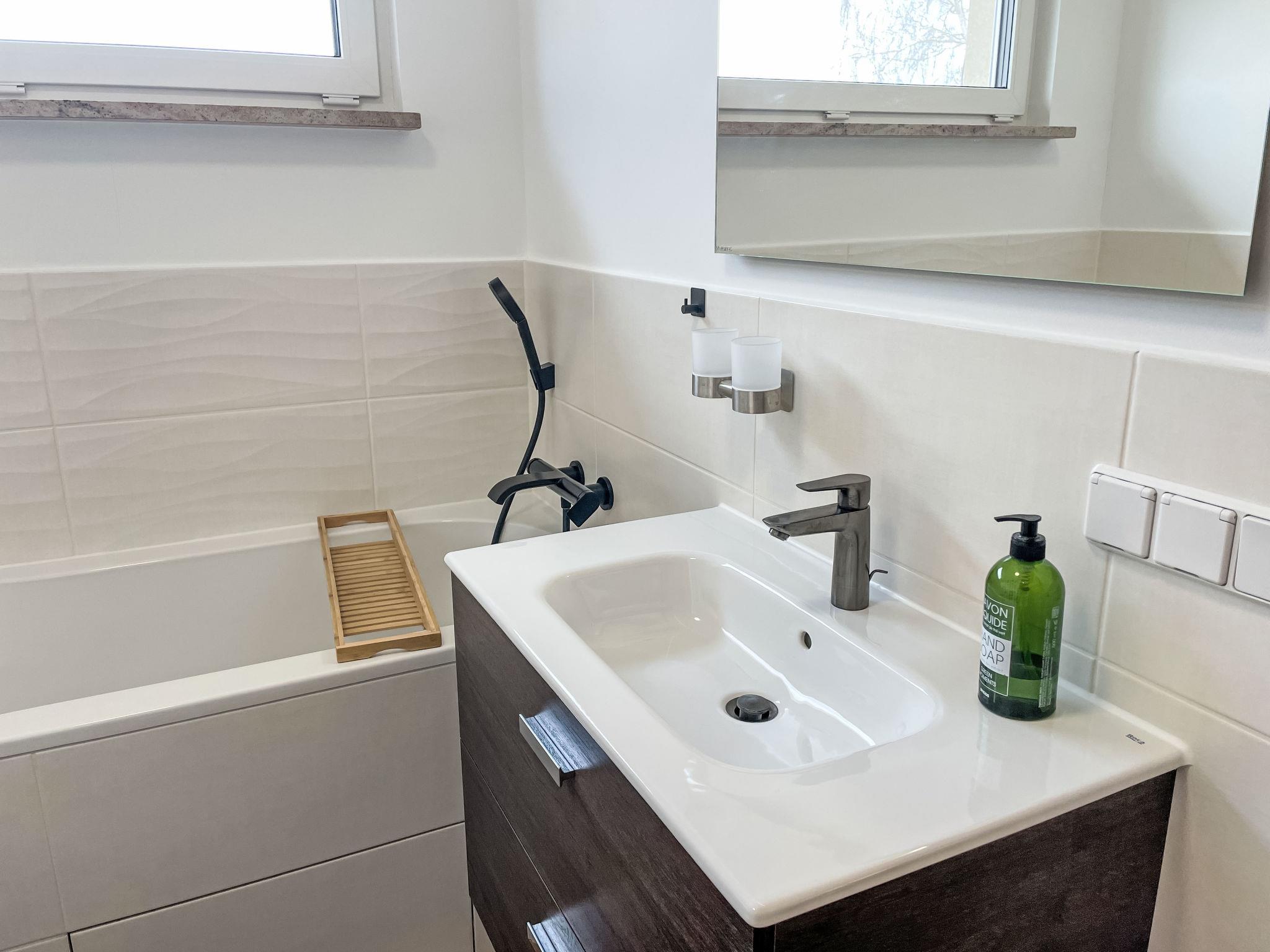 Beautiful, cosy bungalow "Der kleine Kranich", built in 2024, surrounded by meadows and fields. In the district of Neuendorf 2.5 km from the centre of Neuendorf-Heide, 8.5 km from the centre of Lüdershagen, 14 km from the centre of Ribnitz-Damgarten, in the residential district, 26 km from the sea, 200 m from the beach, 200 m of lagoon. Private: garden with flowers and trees. In the complex: storage room for bicycles. Parking on the premises. Shop 12 km, supermarket 10.5 km, restaurant 4 km, bus stop "Neuendorf" 150 m, railway station "Ribnitz-Damgarten" 12 km, grass beach "Saaler Bodden" 200 m, thermal baths "Bodden Therme" 15 km. Cycle lane 20 m. Nearby attractions: Kloster Ribnitz 15 km, Bernsteinmuseum 15 km, Stralsund 40 km. Hiking paths: Fischland Darß Zingst 10 km. Please note: car recommended. There is a beach chair and a herb garden.