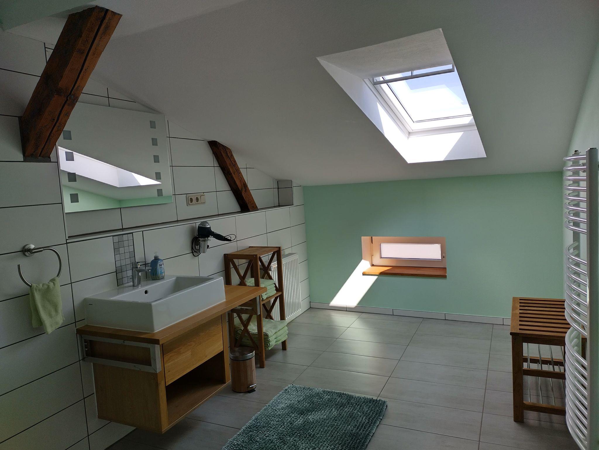 An alle Gäste, die mit Fahrrad anreisen möchten: Bei uns gibt es leider keine Möglichkeit, die Fahrräder im Haus oder auf dem Grundstück unterzustellen. Man kann die Fahrräder entweder direkt vor dem Haus, parallel zur Hauswand abstellen und abschließen oder man kann am Marktplatz (30m entfernt) die Fahrräder an einem Fahrradständer anschließen.