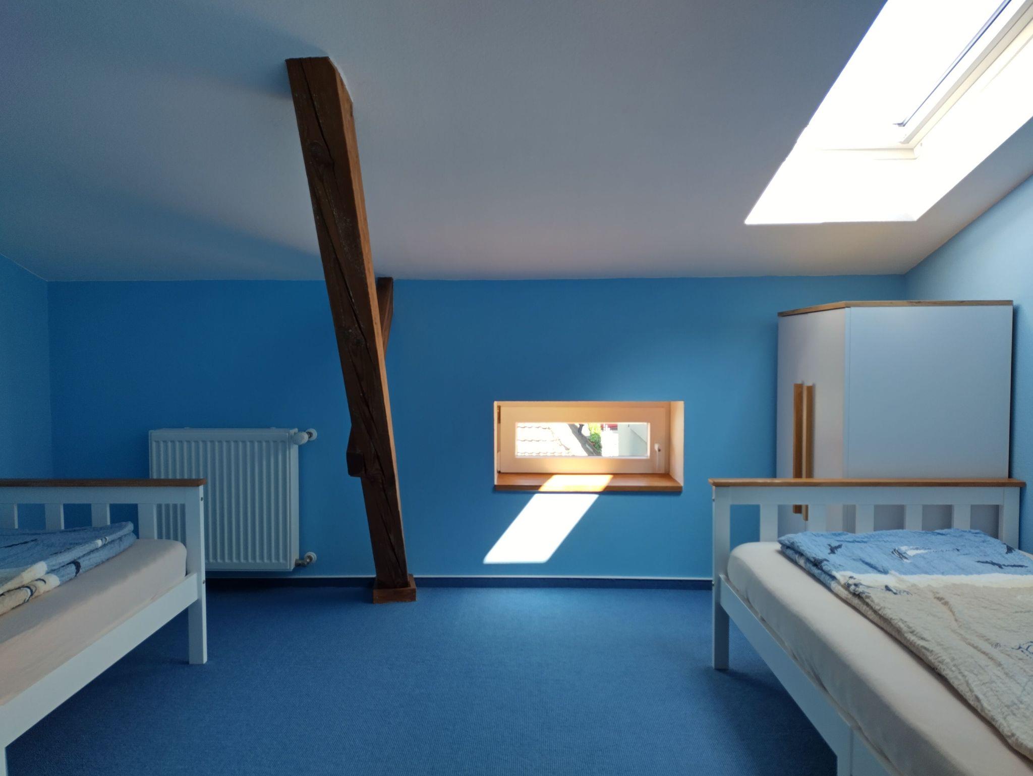 Die kinderfreundlichen Ferienwohnungen liegen im Erdgeschoss und im Dachgeschoss. Die Ferienwohnung im Erdgeschoss kann mit bis zu zwei Personen belegt werden, die Ferienwohnung im Dachgeschoss mit bis zu vier Personen.