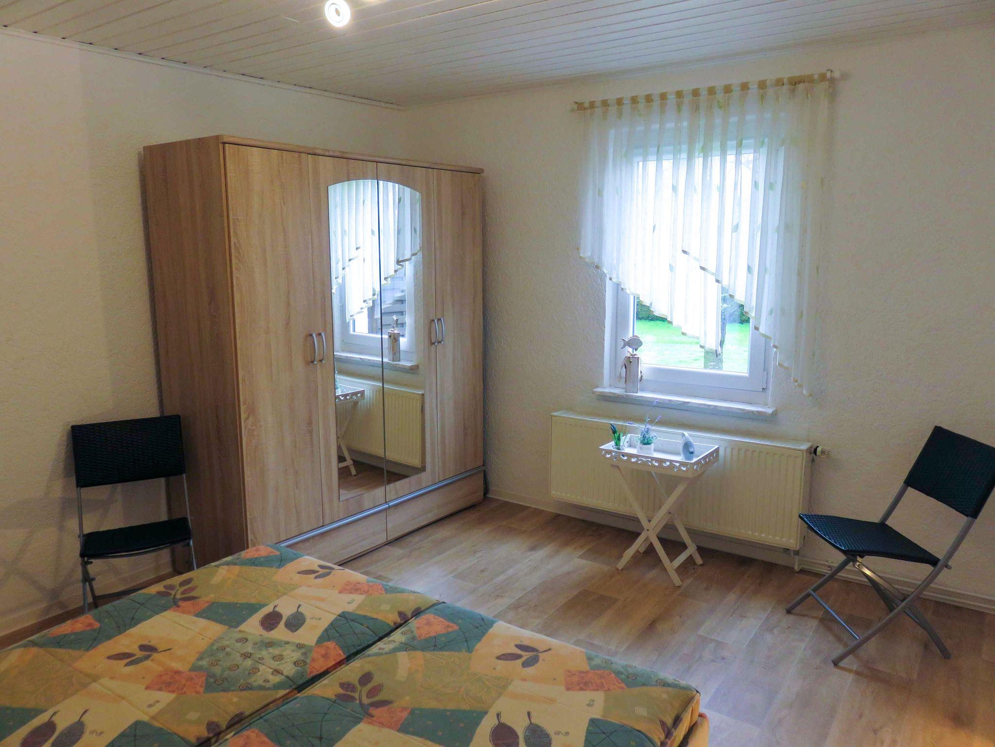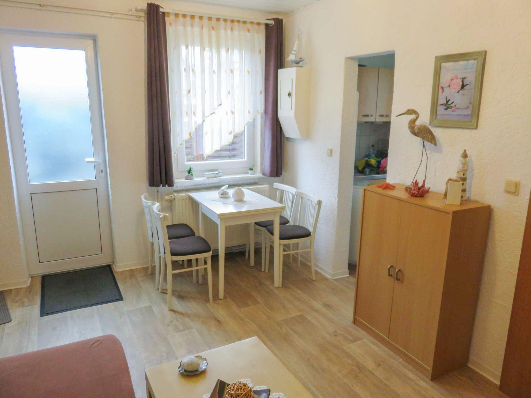 Der gemütliche Bungalow Alms in Ribnitz-Damgarten bietet auf 40 m² Platz für 4 Personen. Ruhig gelegen und umgeben von viel Grün, verspricht er Erholung pur. Im Wohnzimmer findest du ein Schlafsofa und einen Esstisch, die zu gemeinsamen Mahlzeiten oder entspannten Abenden einladen. Das separate Schlafzimmer mit einem bequemen Doppelbett sorgt für erholsame Nächte. Eine praktische Pantry-Küche bietet dir alles, was du zum Zubereiten von Snacks oder kleinen Mahlzeiten benötigst und das Bad mit Dusche macht den Bungalow komplett. Draußen bietet dir eine kleine Terrasse Platz zum Entspannen und der Garten kann ebenfalls mitgenutzt werden ? ideal für ein Frühstück im Freien oder einfach, um die frische Luft zu genießen. WLAN und ein Parkplatz stehen dir ebenfalls zur Verfügung.