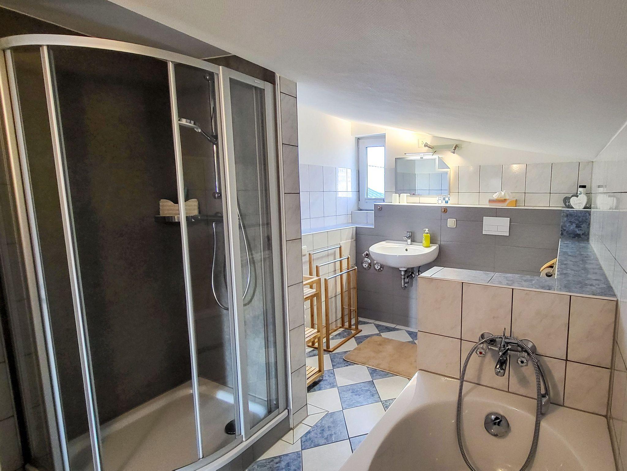 Die Ferienwohnung Wanke in Ribnitz-Damgarten bietet dir auf 63 m² den perfekten Rückzugsort für dich und deine Familie oder eine kleine Gruppe von bis zu 6 Personen. Sie liegt im Obergeschoss eines Einfamilienhauses und ist über einen separaten Eingang zugänglich. Hier kannst du die Ruhe genießen, dich rundum wohlfühlen und die wunderschöne Region rund um die Bernsteinstadt Ribnitz-Damgarten entdecken. Mit drei Schlafzimmern sorgt die Wohnung für ausreichend Platz und erholsamen Schlaf nach einem erlebnisreichen Tag. Im gemütlichen Wohnzimmer kannst du es dir auf den bequemen Sitzmöbeln bequem machen, Filme schauen oder einfach entspannen. Die voll ausgestattete Küche lässt keine Wünsche offen: Ob ein ausgiebiges Frühstück, ein schnelles Mittagessen oder ein Abendessen mit deinen Lieblingsgerichten hier findest du alles, was du für die Selbstverpflegung brauchst. Das Badezimmer ist mit Badewanne und Dusche ausgestattet und bietet dir sowohl Komfort als auch einen Ort zum Abschalten und Entspannen. Ein Wintergarten im Eingangsbereich steht dir außerdem zur Verfügung. Auch draußen erwartet dich einiges: Der Garten lädt mit einer gemütlichen Sitzecke und einem Grill zu entspannten Sommerabenden ein. Deine Fahrräder kannst du sicher in der vorgesehenen Unterstellmöglichkeit abstellen, und ein Parkplatz direkt am Haus sorgt für zusätzlichen Komfort.