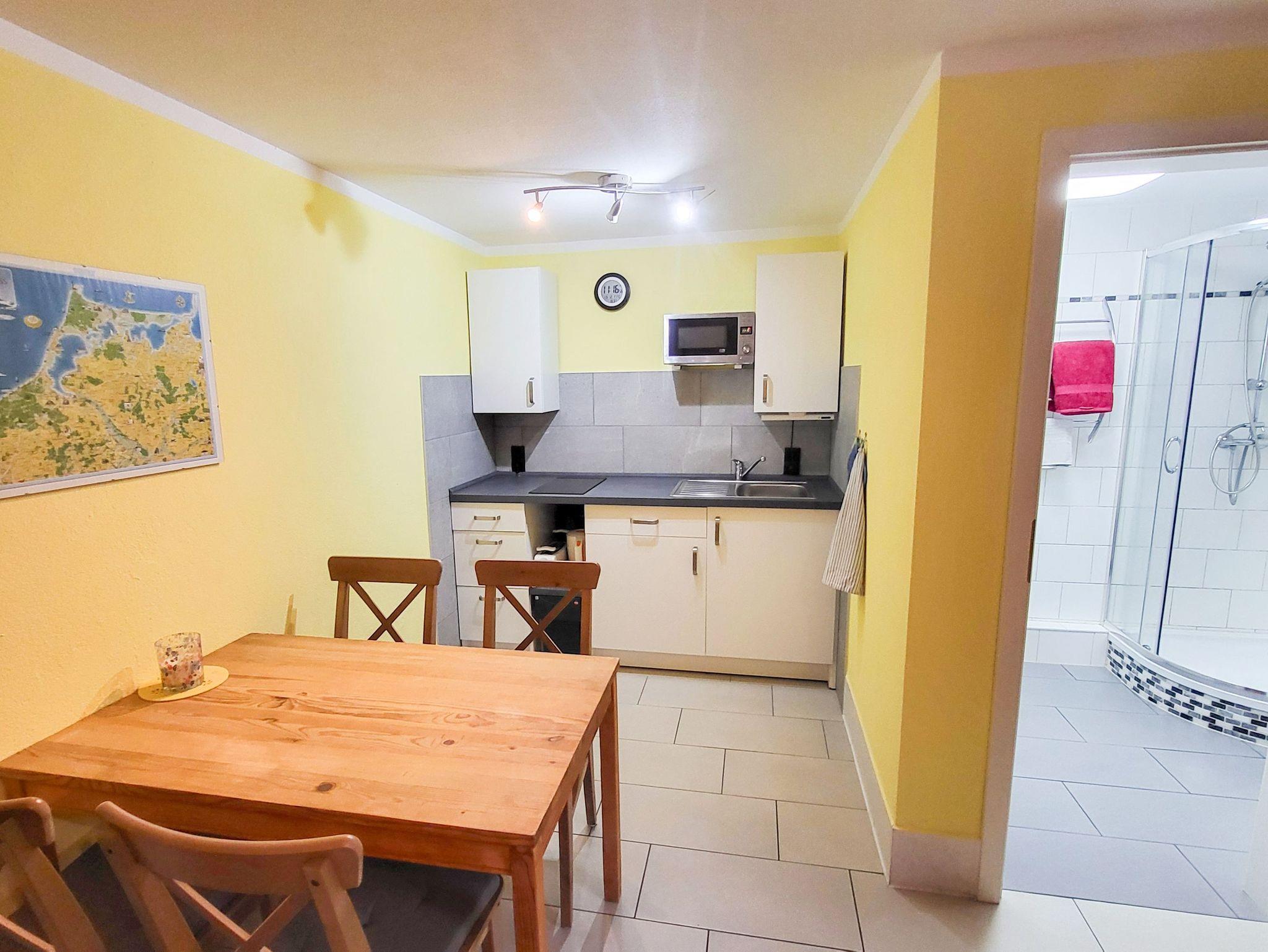Die Ferienwohnung Ackermann in Ribnitz-Damgarten bietet dir auf 40 m² alles, was du für einen entspannten Urlaub brauchst perfekt für 2 Personen. Sie befindet sich im Souterrain eines Einfamilienhauses und bietet dir dank des eigenen Eingangs viel Privatsphäre. Der kombinierte Wohn-Schlafbereich ist freundlich und gemütlich eingerichtet. Hier findest du ein komfortables Doppelbett für erholsame Nächte. Der TV sorgt für Unterhaltung, während der Essbereich zum gemeinsamen Frühstück oder Abendessen einlädt. Die Küchenzeile ist praktisch ausgestattet und bietet dir alles, was du zum Kochen brauchst. Das Bad verfügt über eine Dusche, ein Waschbecken und ein WC, sodass du nach einem erlebnisreichen Tag schnell entspannen kannst. Für zusätzlichen Komfort gibt es einen Abstellraum mit einem kombinierten Kühlschrank, der dir ausreichend Platz für deine Lebensmittel bietet.