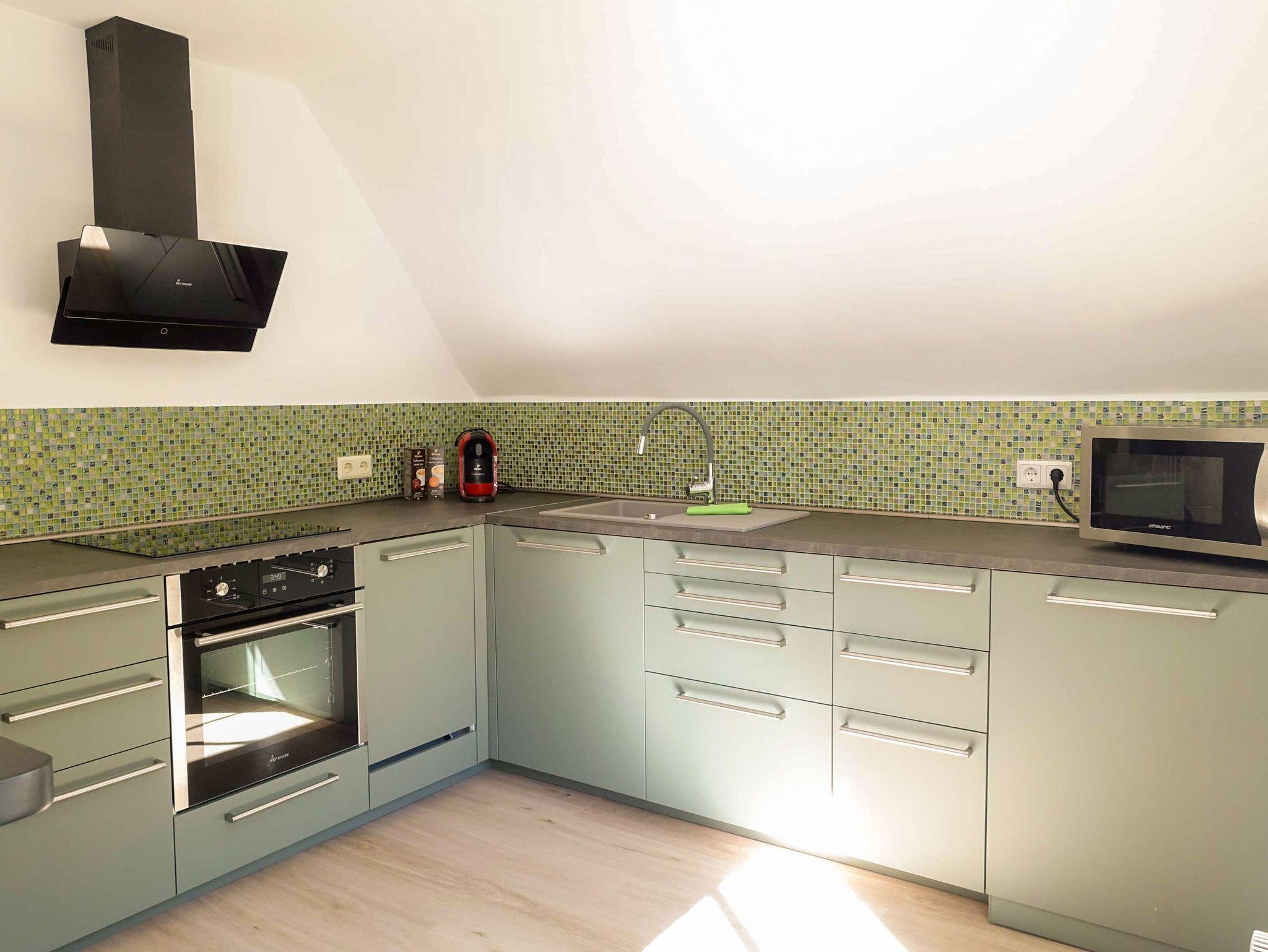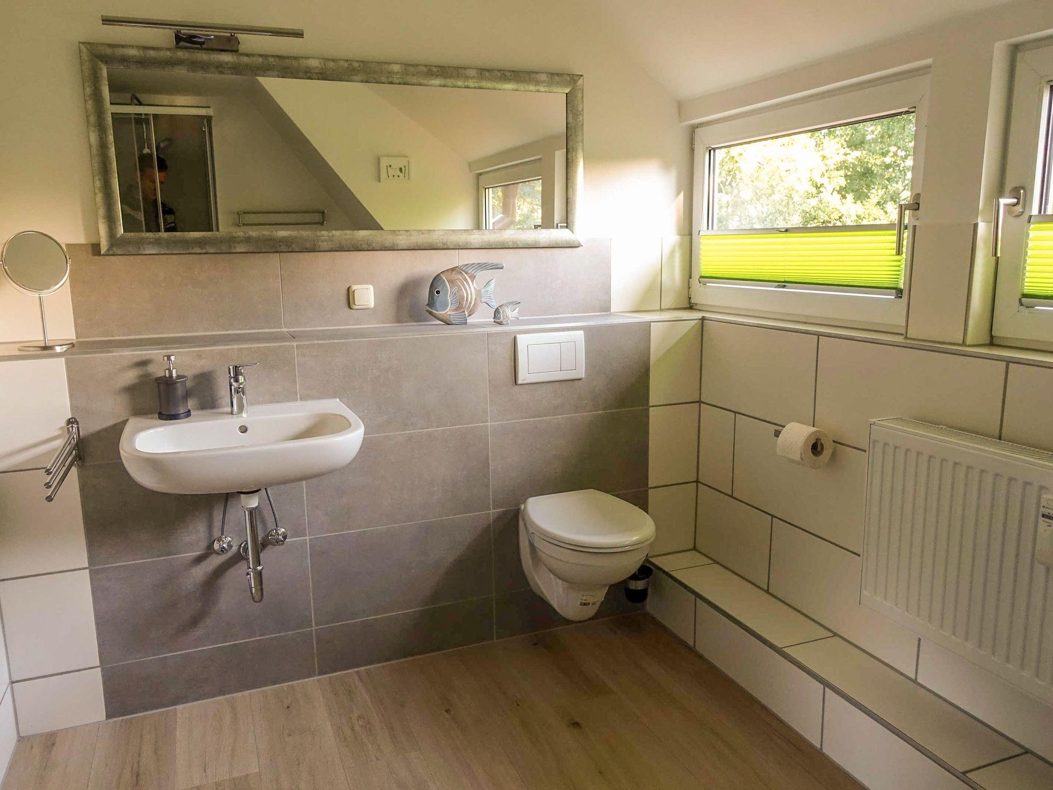 In deiner Ferienwohnung Ankerplatz in Altheide erwarten dich 70m² pures Urlaubsgefühl für bis zu 4 Personen - modern gestaltet und mit viel Liebe eingerichtet. Hier findest du alles, was du für entspannte Tage brauchst: Im Erdgeschoss liegt das gemütliche Wohnzimmer mit einer großen Couch, einem Esstisch, Smart-TV, WLAN und Radio. Der helle Laminatfußboden sorgt für ein angenehmes Wohngefühl. Direkt angrenzend findest du die voll ausgestattete Küche, in der du dich kulinarisch so richtig austoben kannst: Cerankochfeld, Backofen, Mikrowelle mit Backfunktion, Geschirrspüler, Wasserkocher, Filterkaffeemaschine sowie eine Kapselmaschine (Cafissimo) stehen dir hier zur Verfügung. Ein praktischer Bartisch mit zwei Barhockern lädt zu schnellen Snacks oder einem gemütlichen Frühstück ein. Das Bad überzeugt mit einer großen Regendusche, WC, Waschbecken und mineralischem Bodenbelag - hier startest du frisch in den Tag. Über eine etwas steilere Wendeltreppe gelangst du ins Dachgeschoss, wo dich das großzügige Schlafzimmer erwartet. Hier findest du ein Doppelbett (180x200cm) und zwei Einzelbetten (je 90x200cm) mit verstellbaren Lattenrosten - perfekt für erholsamen Schlaf. Auch hier sorgt der Laminatboden für ein angenehmes Wohnambiente. Insektenschutzgitter an den Fenstern von Schlafzimmer, Wohnzimmer, Bad und Küche sorgen zudem für ruhige Nächte.