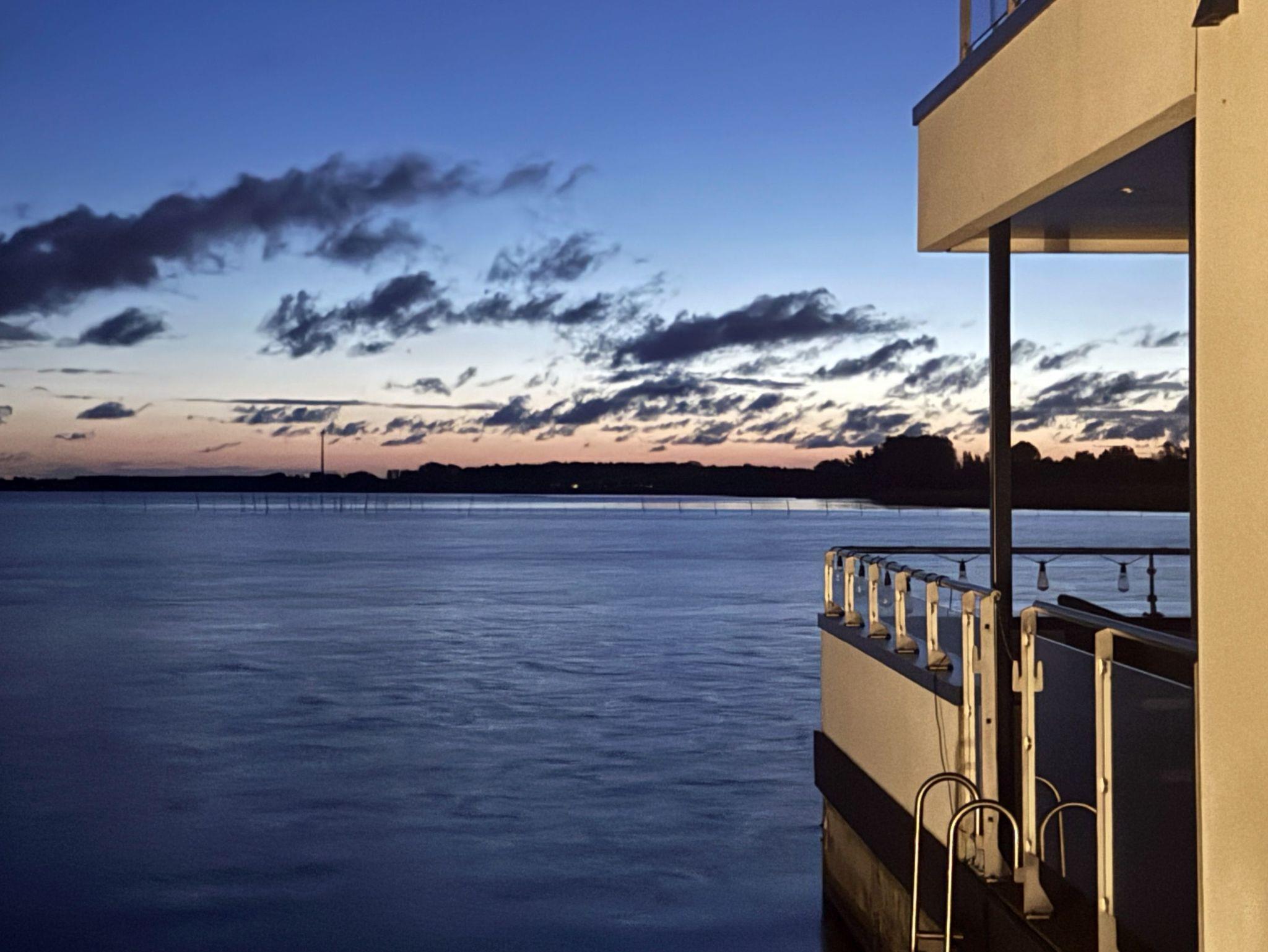 Floating Hideaway Coco de Mer ist dein schwimmendes Zuhause auf Zeit, gelegen nahe dem malerischen Hafen von Ribnitz-Damgarten. Mit 85 m² Wohnfläche bietet das luxuriöse Hausboot Platz für bis zu 6 Personen und kombiniert modernes Design mit einer einzigartigen Lage direkt auf dem Wasser. Zwei gemütliche Schlafzimmer laden zum Träumen ein und die zwei Badezimmer sorgen dafür, dass es auch bei voller Belegung entspannt bleibt. Als besonderes Extra erwartet dich eine private Sauna, in der du die Seele baumeln lassen kannst - ein Luxus, der auf dem Wasser seinesgleichen sucht. Das Highlight des Coco de Mer sind die großzügigen Außenbereiche: Auf der Bugterrasse kannst du die ersten Sonnenstrahlen genießen und die Dachterrasse lädt zu entspannten Abenden mit herrlichem Blick über den Hafen ein. Für pure Entspannung kannst du eine Wellnessmassage zubuchen, die Masseurin kommt direkt zu dir auf das Hausboot, damit du dich in privater Atmosphäre verwöhnen lassen kannst. Wer es aktiver mag, kann die Umgebung mit SUP-Boards erkunden, die gegen Gebühr zur Verfügung stehen. Auch dein Hund ist hier herzlich willkommen und darf gegen eine Gebühr mit an Bord kommen.