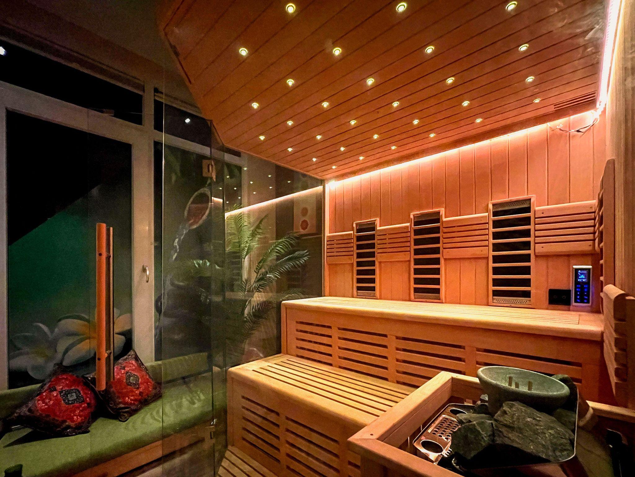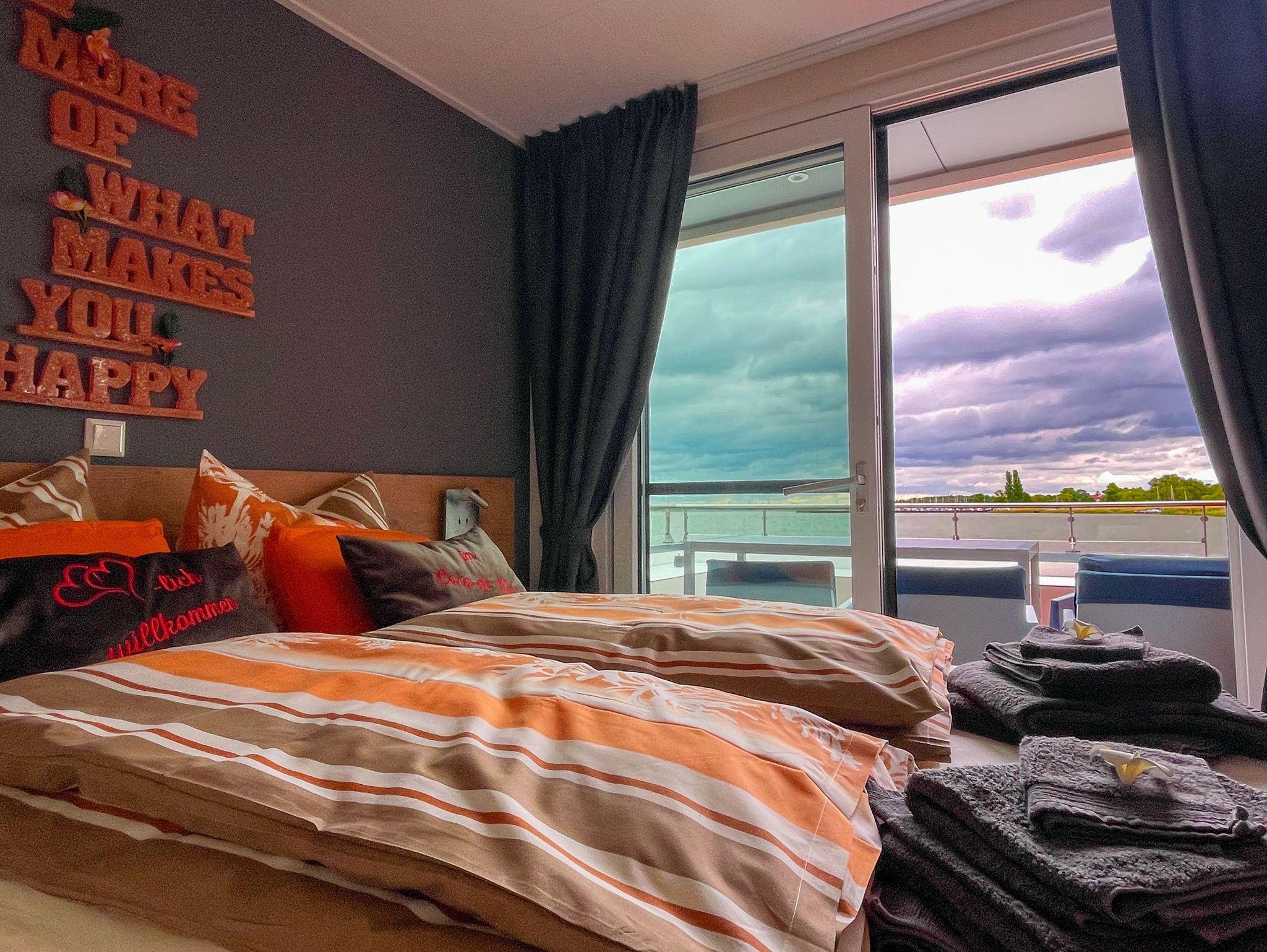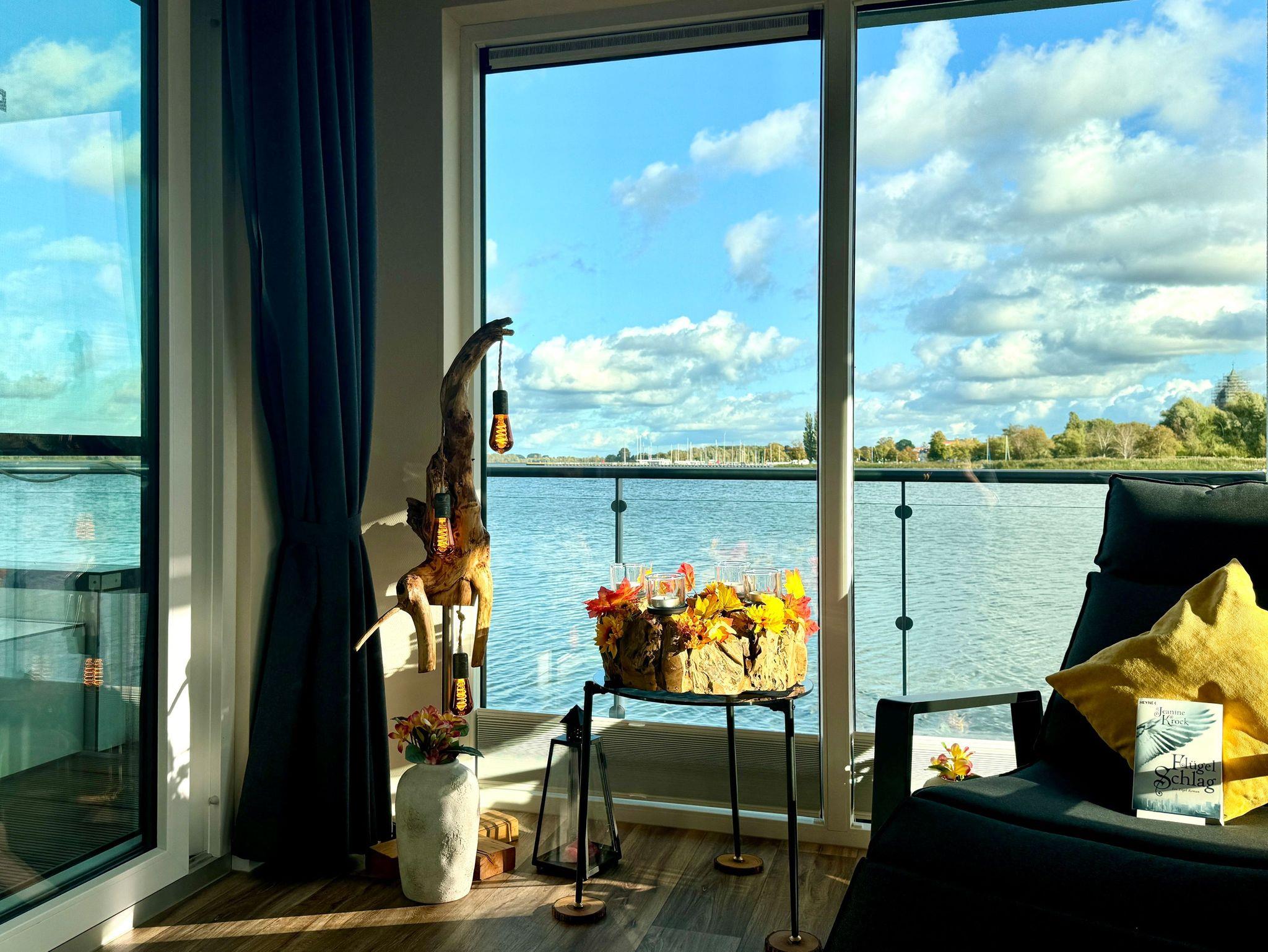 Das Floating Hideaway ? Coco de Mer ist ein einzigartiges Hausboot, das dir auf großzügigen 85 m² alles bietet, was du für einen entspannten Urlaub benötigst. Es eignet sich für bis zu 6 Personen und ist ideal für Paare, Familien oder auch Reisende mit Hund. Der Wohnbereich ist stilvoll und gemütlich eingerichtet, mit einem Gas-Kamin, einem Schlafsofa, einem 65 Zoll TV und einem Esstisch, an dem du mit deinen Lieben essen und plaudern kannst. Die offene Küche ist modern ausgestattet und lässt keine Wünsche offen: Hier findest du einen Backofen (mit Mikrowellenfunktion), einen Herd, eine Spülmaschine, eine Nespresso-Kapselmaschine, einen Toaster und einen Wasserkocher. Große Fensterfronten und eine Schiebetür zur Bugterrasse sorgen für eine helle und freundliche Atmosphäre und bieten einen direkten Zugang zum Außenbereich. Das Hausboot verfügt über zwei Schlafzimmer: Eines mit 2 komfortablen, zusammenstehenden Betten mit Massagefunktionen (jeweils 0,90x2,10m), die sich per Fernbedienung noch individuell anpassen lassen und das andere mit zwei Einzelbetten (0,80x2,0m). Hier kann man sie wahlweise zusammen oder auseinander stellen. Die Betten sorgen mit hochwertigen Matratzen für einen erholsamen Schlaf. Im Wohnzimmer befindet sich ein Schlafsofa für 2 weitere Personen (0,52x2,10m und 0,77x2,10m). Für dein Wohlbefinden stehen dir zwei Badezimmer zur Verfügung: Ein Badezimmer mit Dusche und WC sowie ein weiteres Badezimmer nur mit Dusche. Zusätzlich gibt es ein separates WC, sodass genug Platz für alle bleibt. Besonders hervorzuheben ist die private Sauna, die du nach Wunsch als finnische Sauna, Infrarot-Sauna oder Biosauna nutzen kannst. Die Sauna ist mit einem Bluetooth-Lautsprecher, wechselbarem Licht und einem Sternenhimmel ausgestattet, der für die perfekte Wohlfühlatmosphäre sorgt. Im Außenbereich kannst du auf der Bugterrasse entspannen oder den Grill anheizen und den Tag bei einem gemeinsamen BBQ ausklingen lassen. Eine weitere Terrasse auf dem Dach ist mit Sonnenliegen ausgestattet und bietet einen atemberaubenden Blick auf den Hafen und das Wasser.