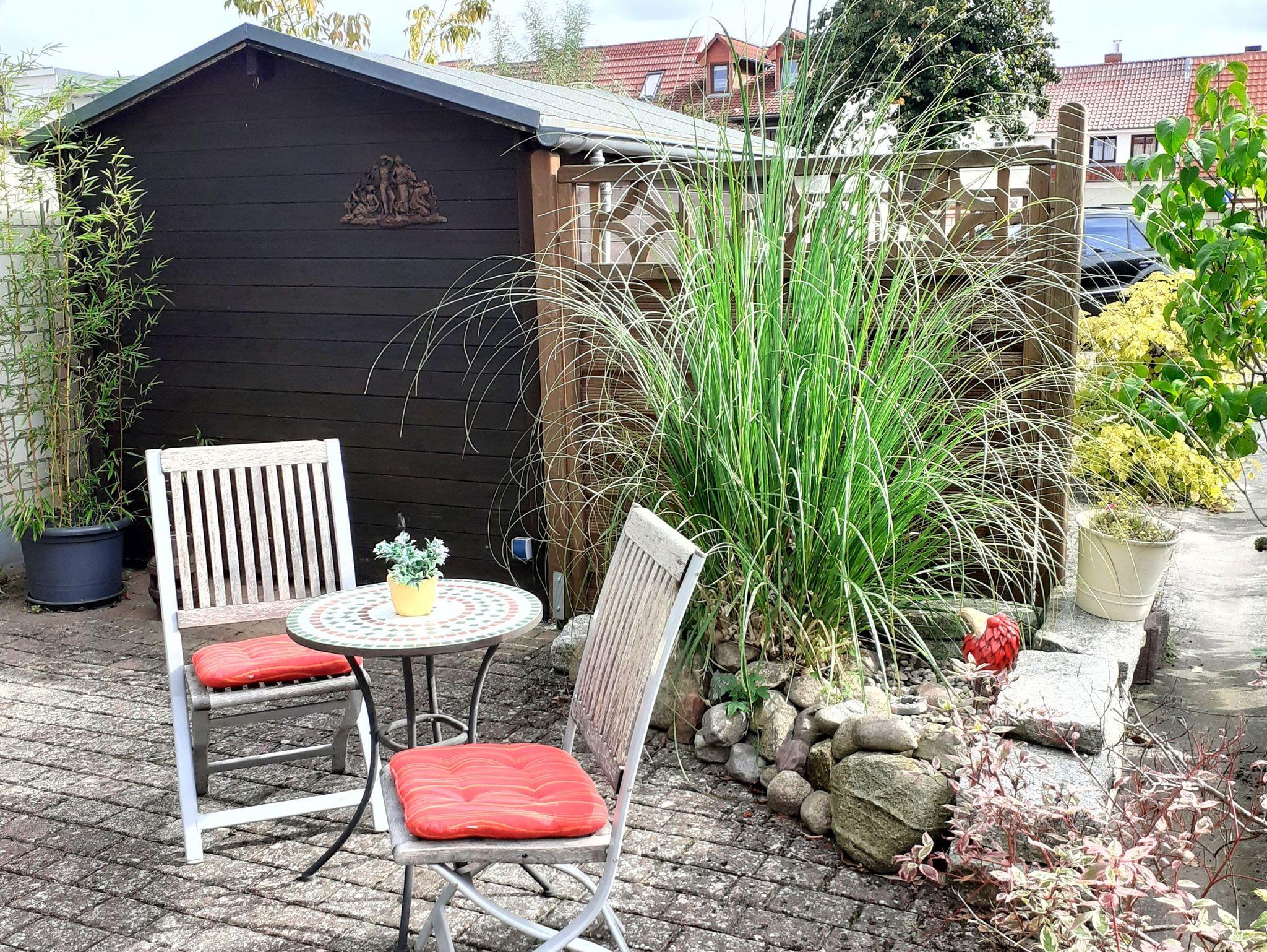 Die Ferienwohnung wird für 2 Personen vermietet, befindet sich im Erdgeschoss und verfügt über eine eigene Terrasse. Zur Wohnung gehören zwei geräumige Zimmer (Wohnraum, Schlafzimmer), Küche, Diele und Dusche/WC. In der Küche sind Herd, Geschirrspüler, Kühlschrank und Kaffeemaschine vorhanden. Das Bad ist mit einer Waschmaschine ausgestattet.