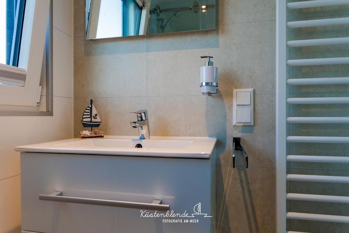 - Bad mit Dusche, Waschtisch, Spiegel und Fön