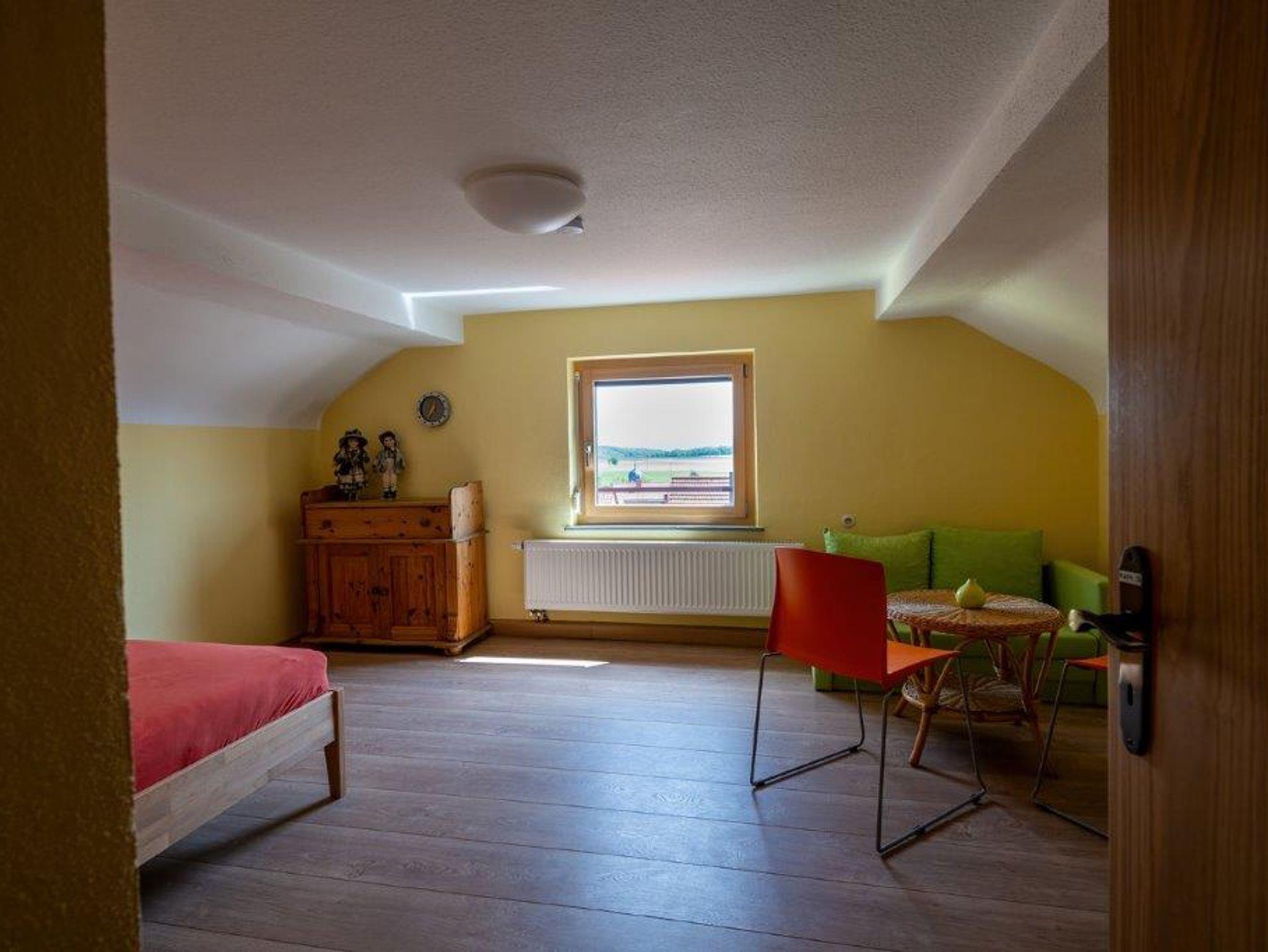 Große sonnige Ferienwohnung über 2 Stockwerke: im 1.OG und im DG, in ländlicher Lage mit direktem Zugang zur Natur und zu wunderschönen Wander- und Radwegen durch den Wald. Nichtraucherwohnung