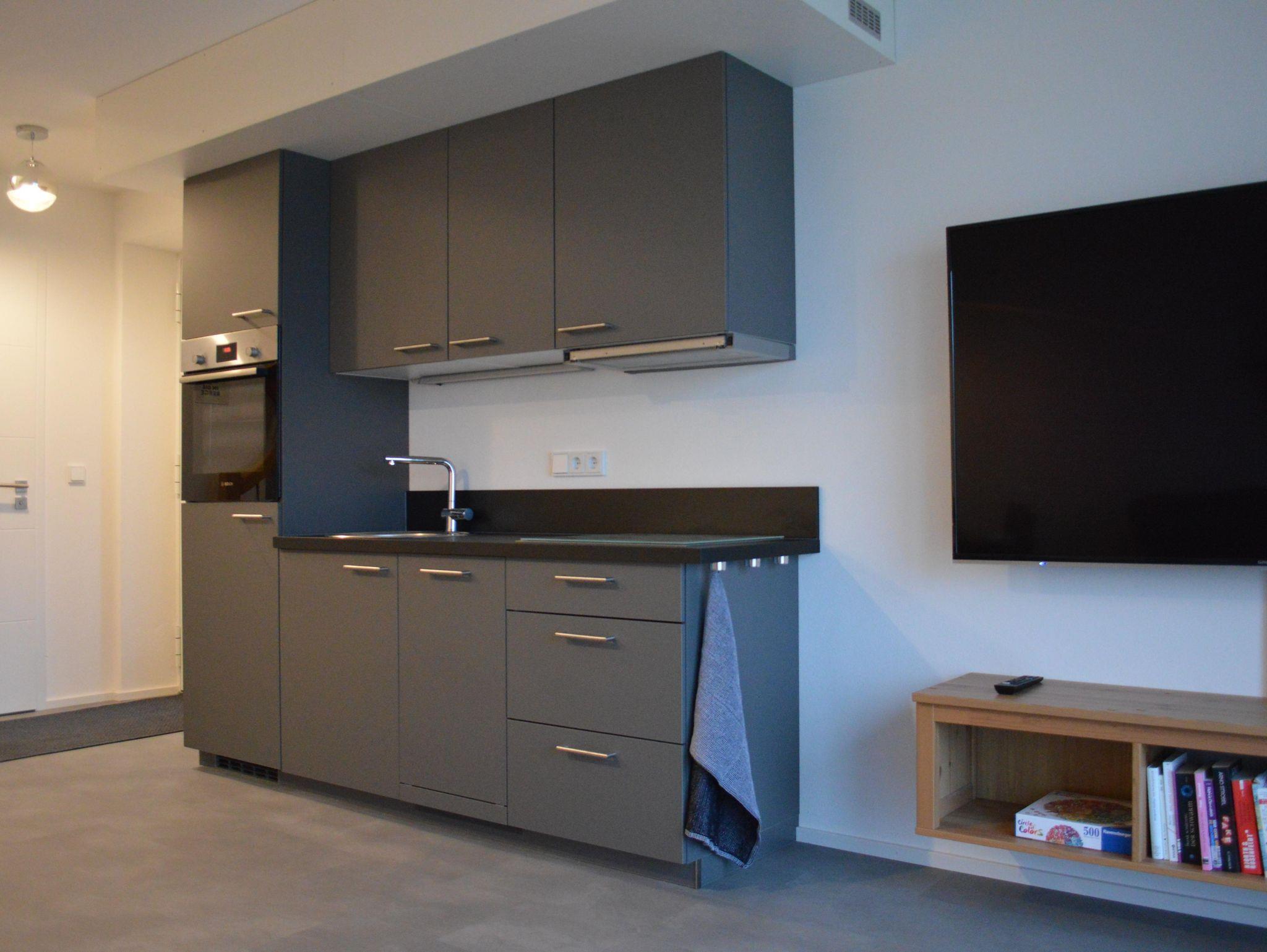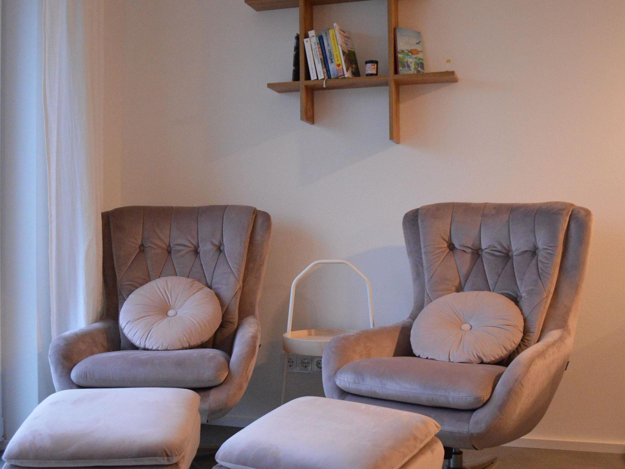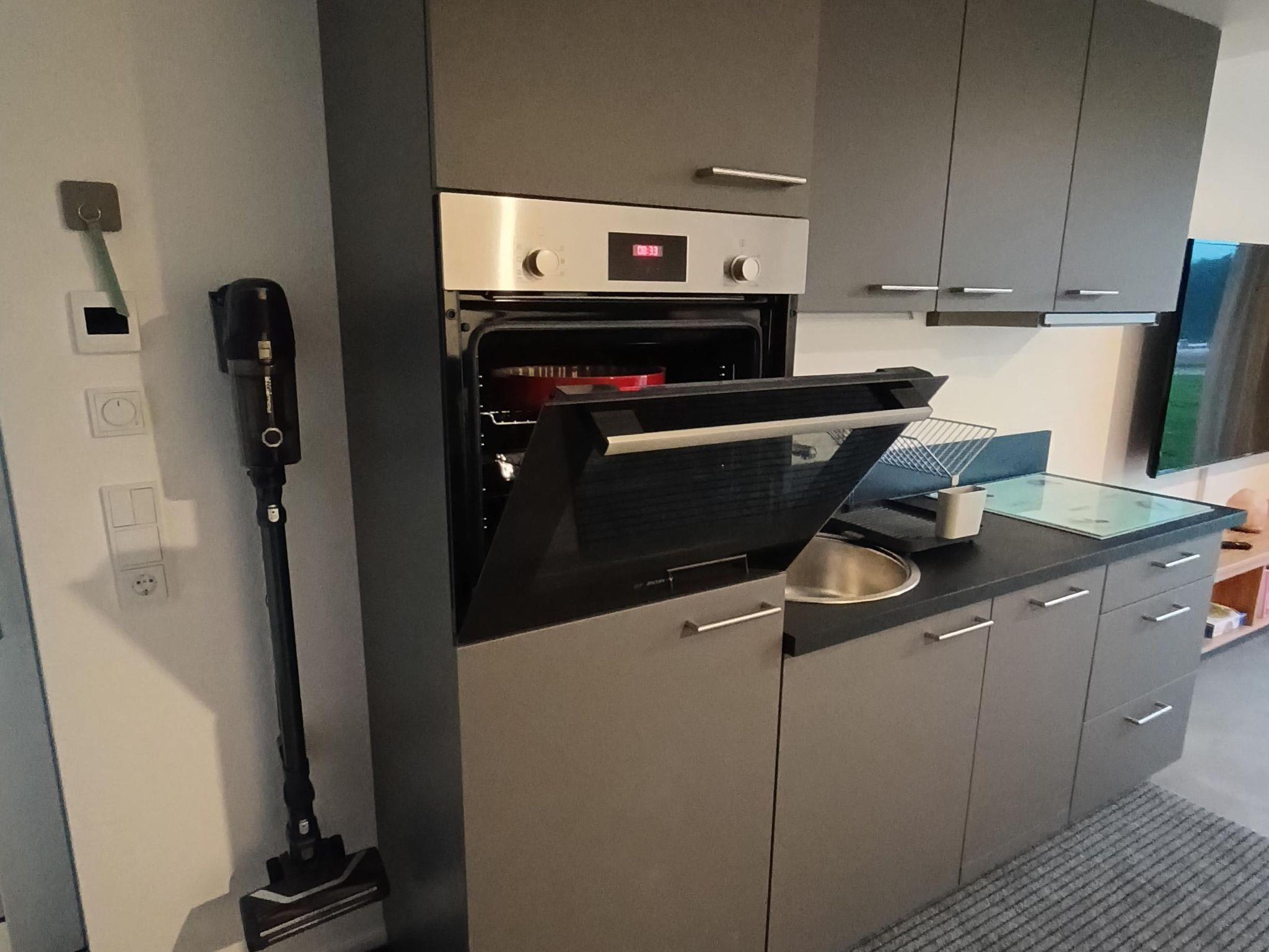 Im Erdgeschoss befinden sich ein Wohn-Koch-Essbereich mit zwei gemütlichen Relaxsesseln, einem internetfähigen Flachbildfernseher, WLAN und ein separates WC. Die voll ausgestattete Küche mit Geschirrspüler, Backofen, E-Herd und Kaffemaschine sorgt für einen entspannten Aufenthalt.