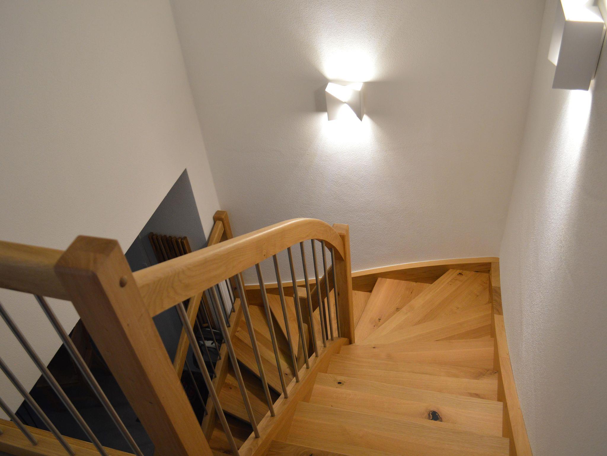 Die Wohnung erstreckt sich über zwei Stockwerke: Im Erdgeschoss befinden sich der gemütliche Wohnbereich, die voll ausgestattete Küche, der Essbereich und ein separates WC. Im Obergeschoss erwarten Sie ein stilvoll eingerichtetes Schlafzimmer und ein modernes Badezimmer.