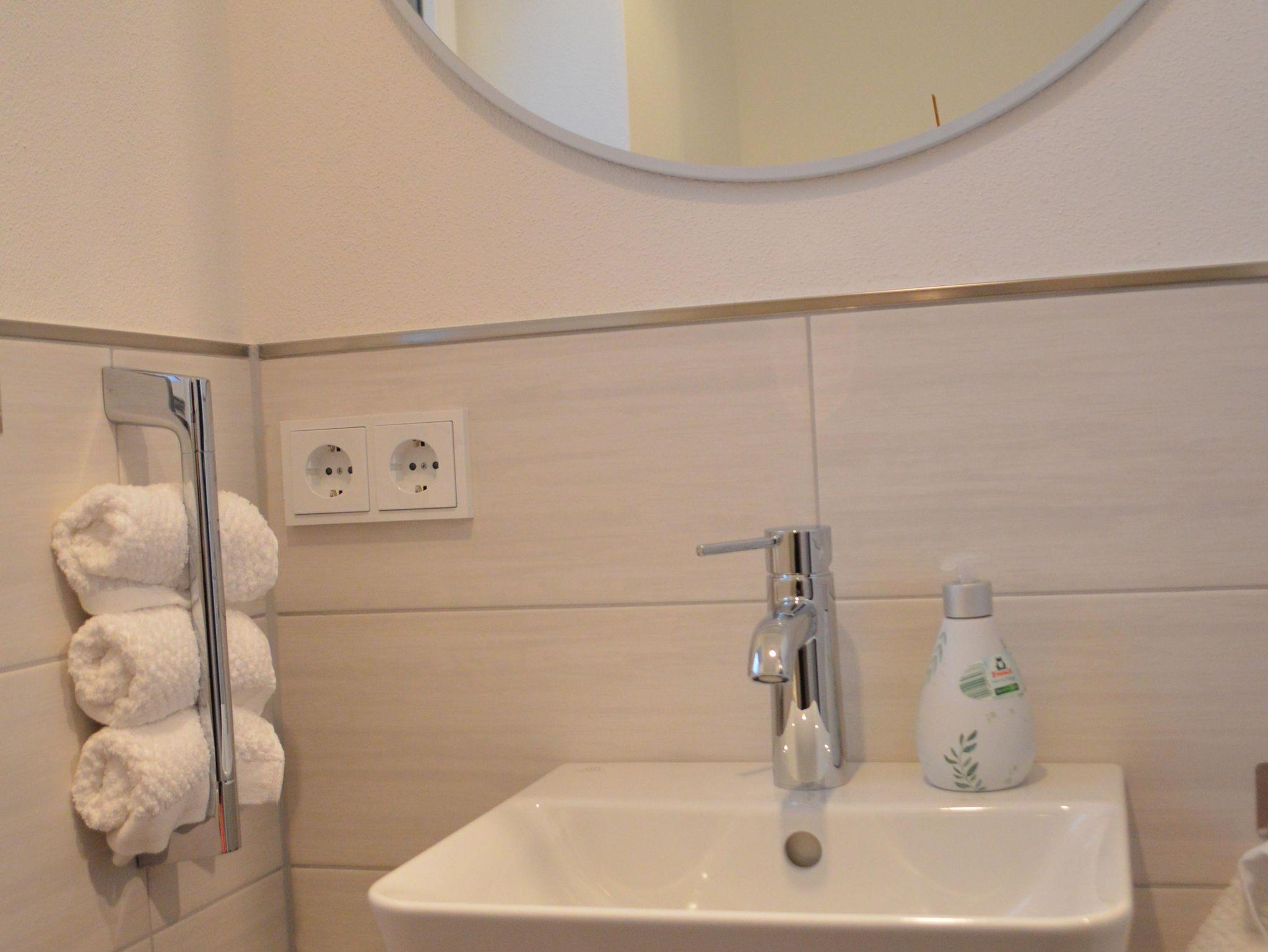 Im Obergeschoss erwarten Sie ein Schlafzimmer mit großem Doppelbett sowie ein modernes Bad mit Dusche und WC.