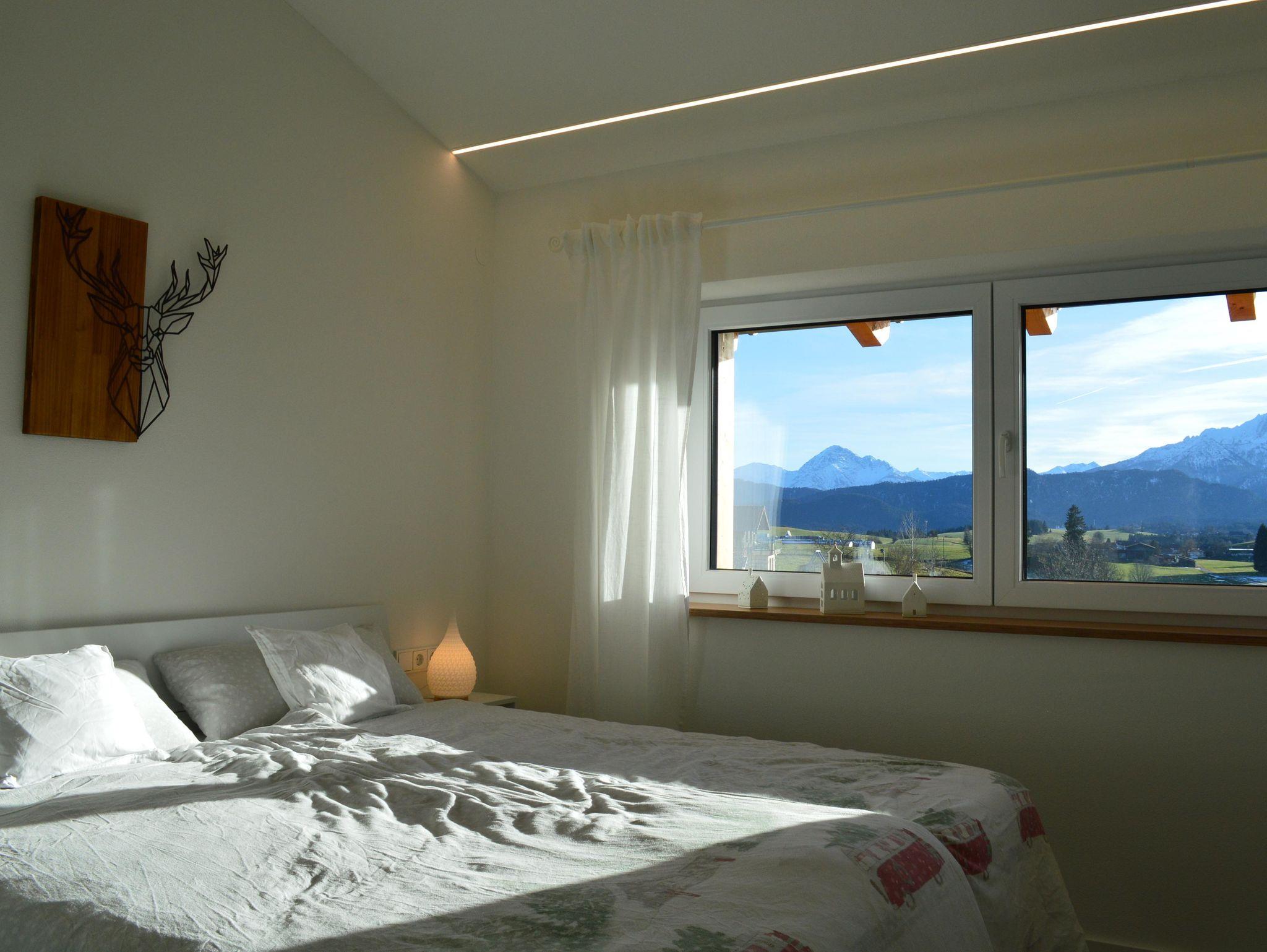 Unsere neu gebaute Ferienwohnung liegt in traumhaft ruhiger Lage am Ortsrand von Rieden am Forggensee, am Ende einer Sackgasse. Von hier aus gelangen Sie über einen kurzen Fußweg direkt zum Aussichtspunkt Pilz, der mit seinem beeindruckenden Panorama begeistert. Auch aus der Wohnung selbst genießen Sie einen freien, atemberaubenden Blick auf die majestätischen Berge.