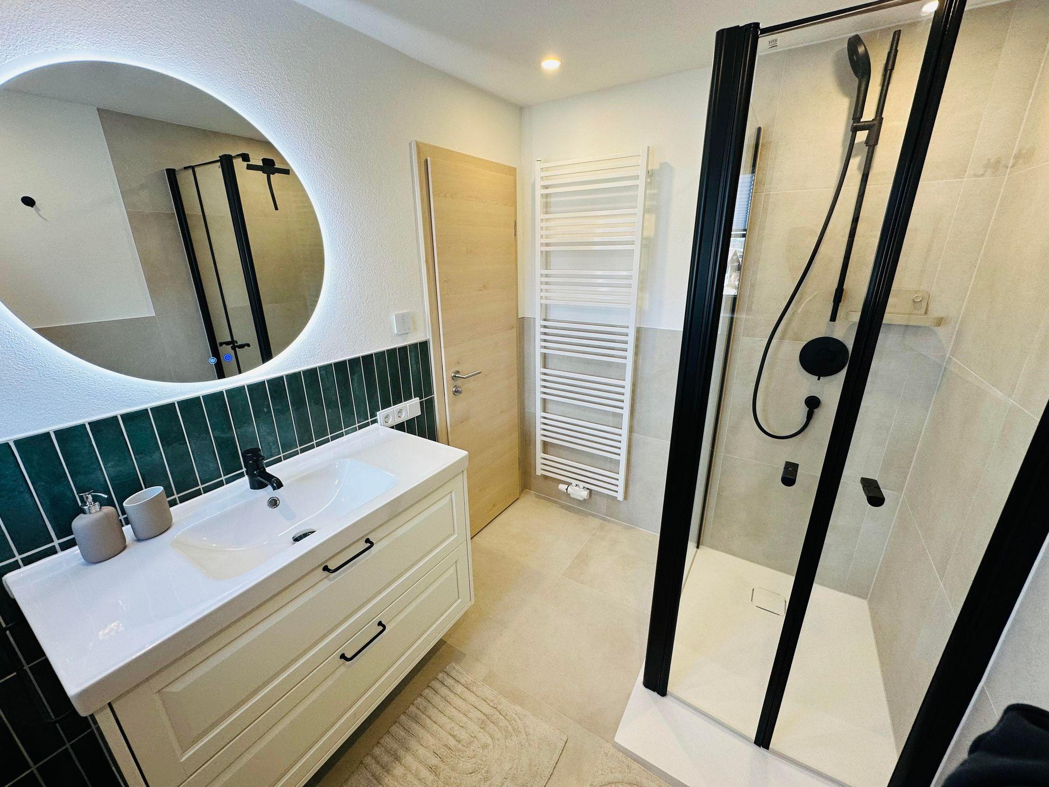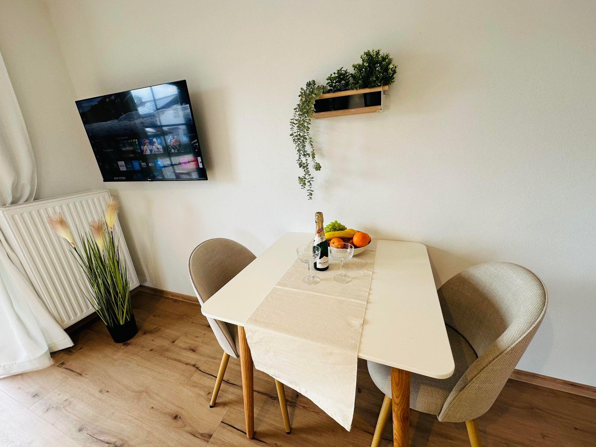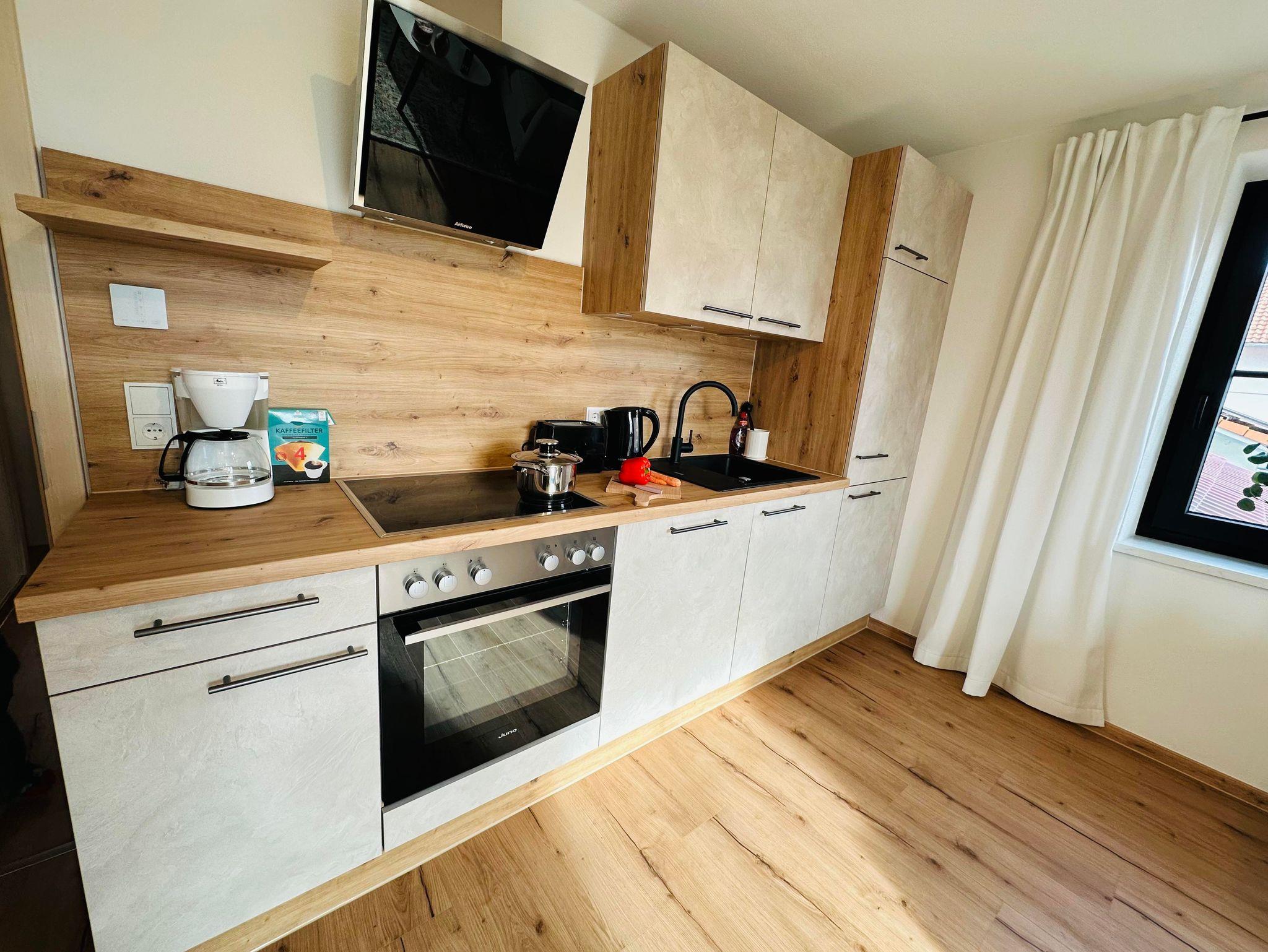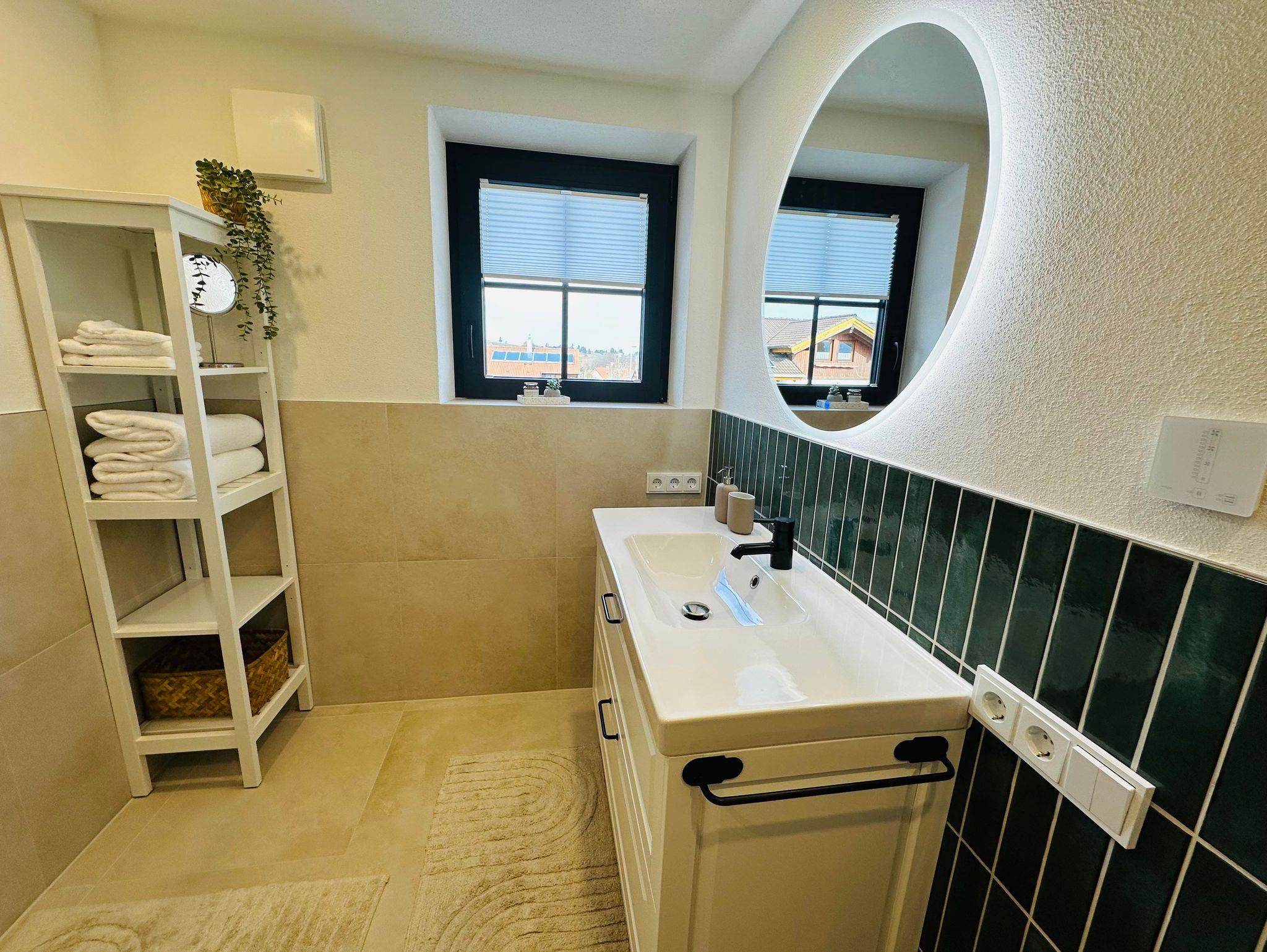 Die neue, moderne Ferienwohnung Alpen Auszeit im 1. Obergeschoss überzeugt durch stilvolle Ausstattung und einen traumhaften Blick auf die Alpen. Der sonnige Südbalkon mit Sitzgelegenheit lädt dazu ein, den Tag bei einem Glas Wein oder einem original bayerischen Bier ausklingen zu lassen, während die Sonne hinter den Bergen versinkt. Die Küche ist voll ausgestattetet (Spülmaschine, Backofen, Kaffeemaschine, Wasserkocher, Eierkocher und Toaster). Der offene Wohn- &Essbereich ist mit einem SmartTV inkl. SAT-Anschluss sowie einer praktischen Medienladestation für Handy, Tablet und Laptop ausgestattet. Im Schlafzimmer sorgt ein großes Doppelbett für erholsamen Schlaf. Auch hier steht Ihnen ein SmartTV mit SAT-Anschluss zur Verfügung. Kostenloses WLAN ist in der gesamten Wohnung verfügbar. Das Badezimmer verfügt über eine Dusche, das WC ist separat. Ein Stellplatz direkt am Haus sowie ein absperrbarer, überdachter Fahrradstellplatz mit Lademöglichkeit für E-Bikes runden das Angebot ab.