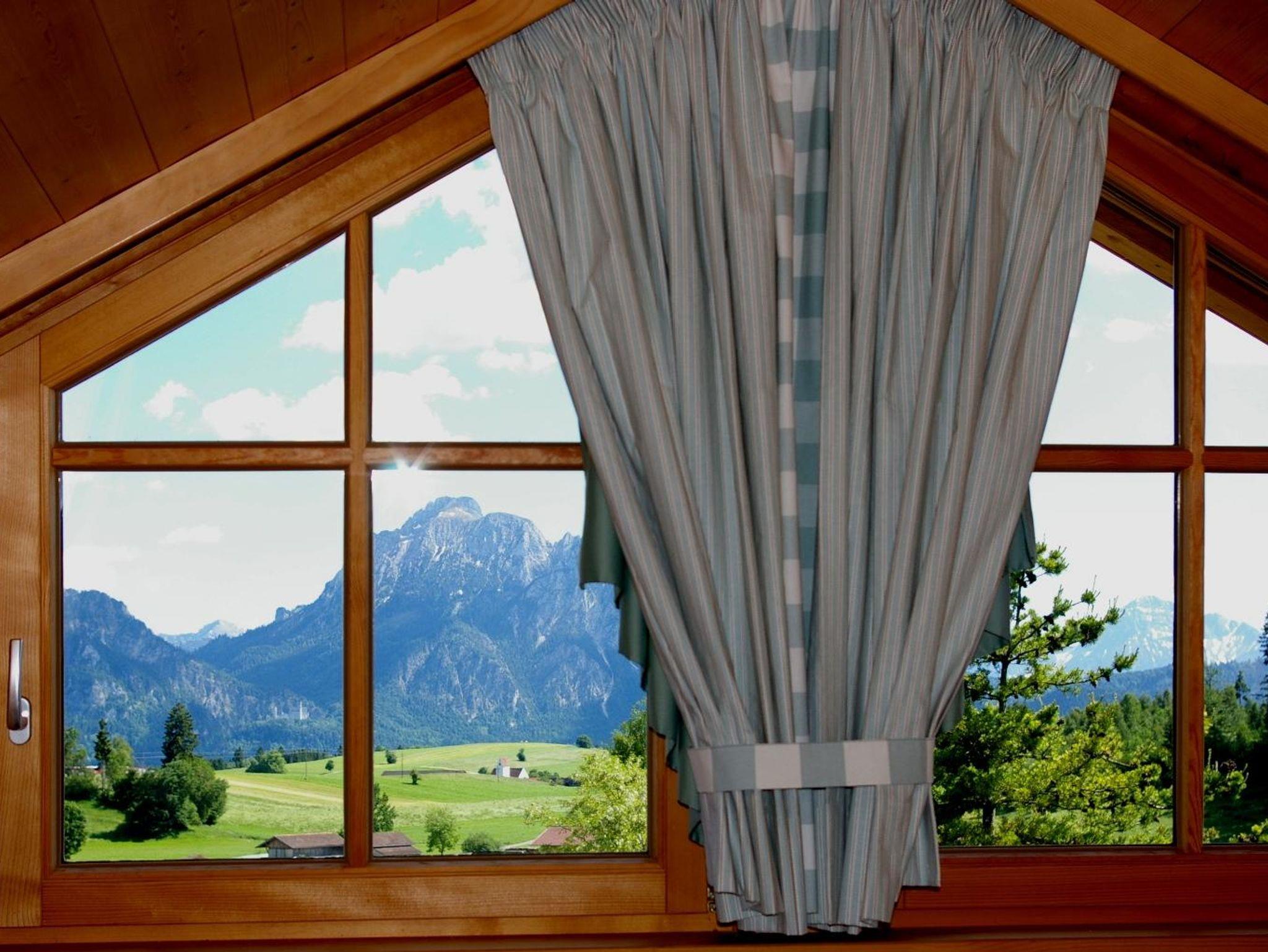 Atelierwohnung Hochplatte , 2 Schlafzimmer mit jeweils einem Doppelbett, Wohnraum mit gemütlicher Couch,Sat-TV und Stereoanlage; Küchenzeile ist ausgestattet mit Spülmaschine, Mikrowelle, Kaffeemaschine, Mixer, Wasserkocher, Pürierstab etc., im Badezimmer ist Waschbecken und WC selbstverständlich mit Dusche und Haarfön; im 1. Obergeschoss mit Ostbalkon,mit Blick auf das Ammergebirge und auf das Schloss Neuschwanstein, , Telefon und Tresor, eigene Terrasse