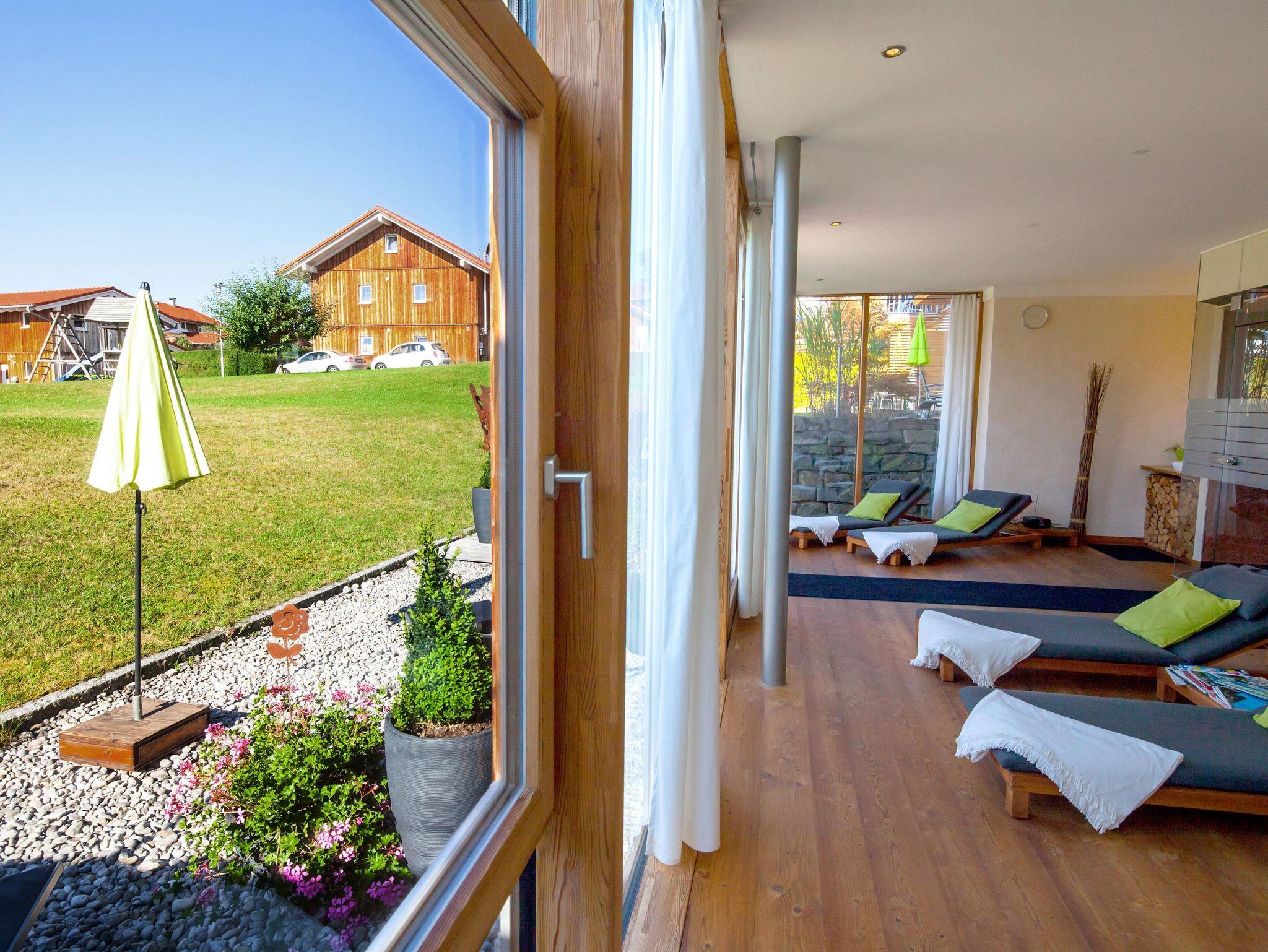 Wir bieten Ihnen ein Gästehaus mit gemütlichen und komfortablen Ferienwohnungen in ruhiger und zentraler Lage von Rieden am Forggensee. Genießen Sie den herrlichen Bergblick von Ihrem Balkon oder Terrasse und entspannen Sie sich am Abend in unserem Wellnessbereich mit Sauna und Ruheraum. Außerdem bieten wir am Haus eine großen Parkplatz, Unterstellplatz für Fahrräder und einen großen Garten. Rieden und das Voralpenland bietet Ihnen viele sportliche und kulturelle Freizeitmöglichkeiten.