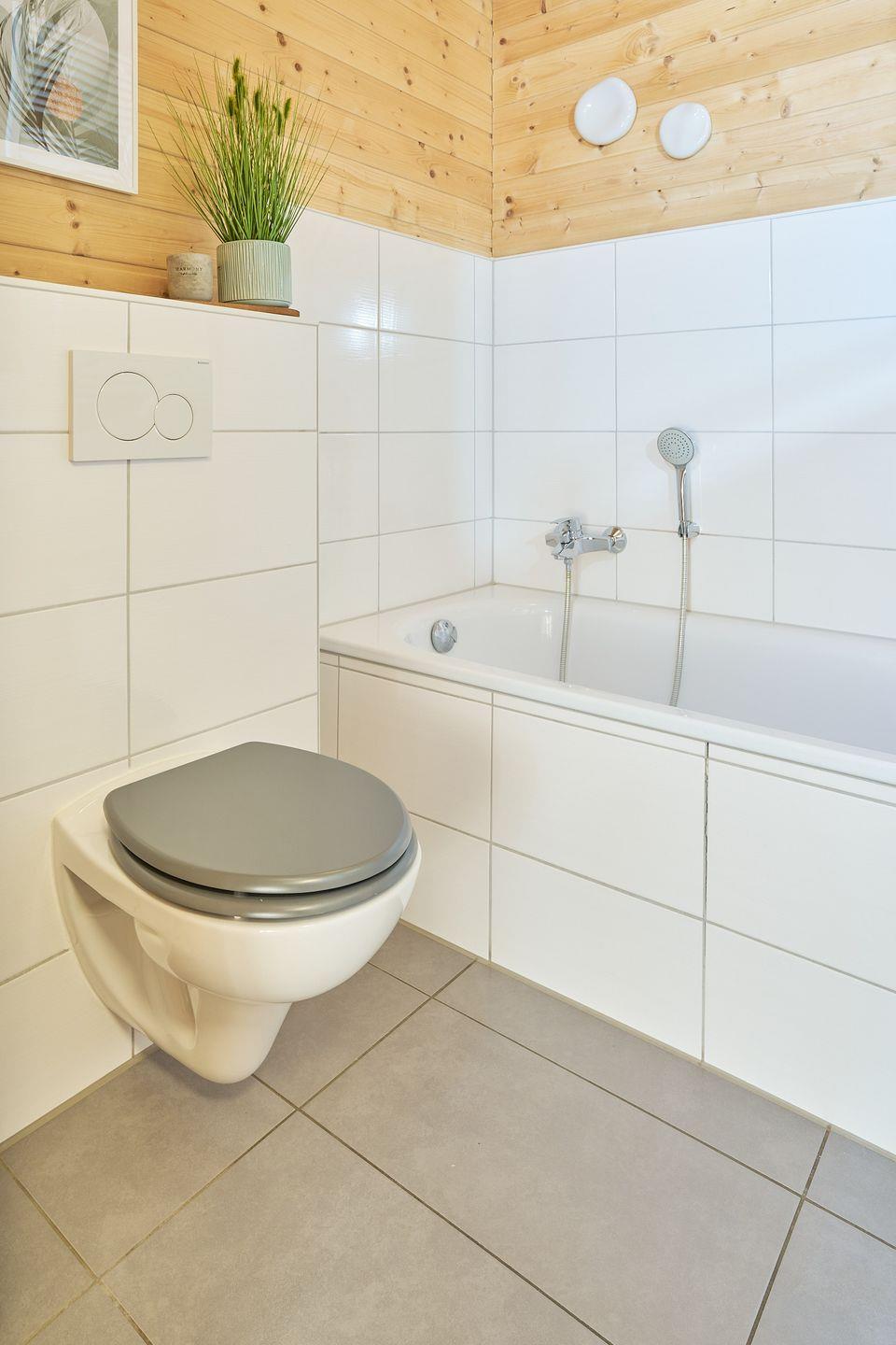 Die große, umzäunte Terrasse verfügt über ausreichend Sitzmöglichkeiten. Die Sonnenliegen, die Rasenfläche und der Holzkohlegrill runden das Angebot ab und lassen keine Wünsche offen.