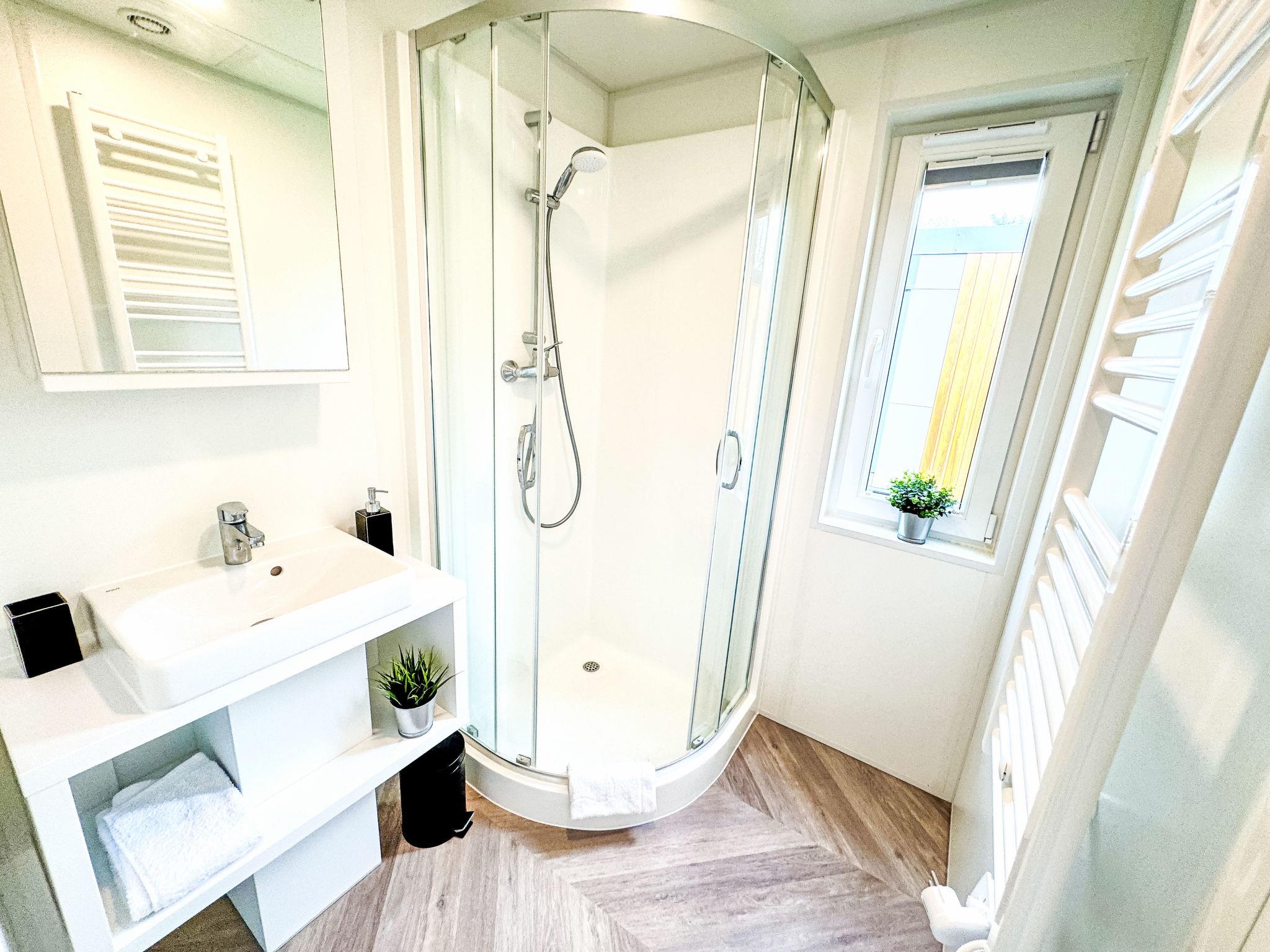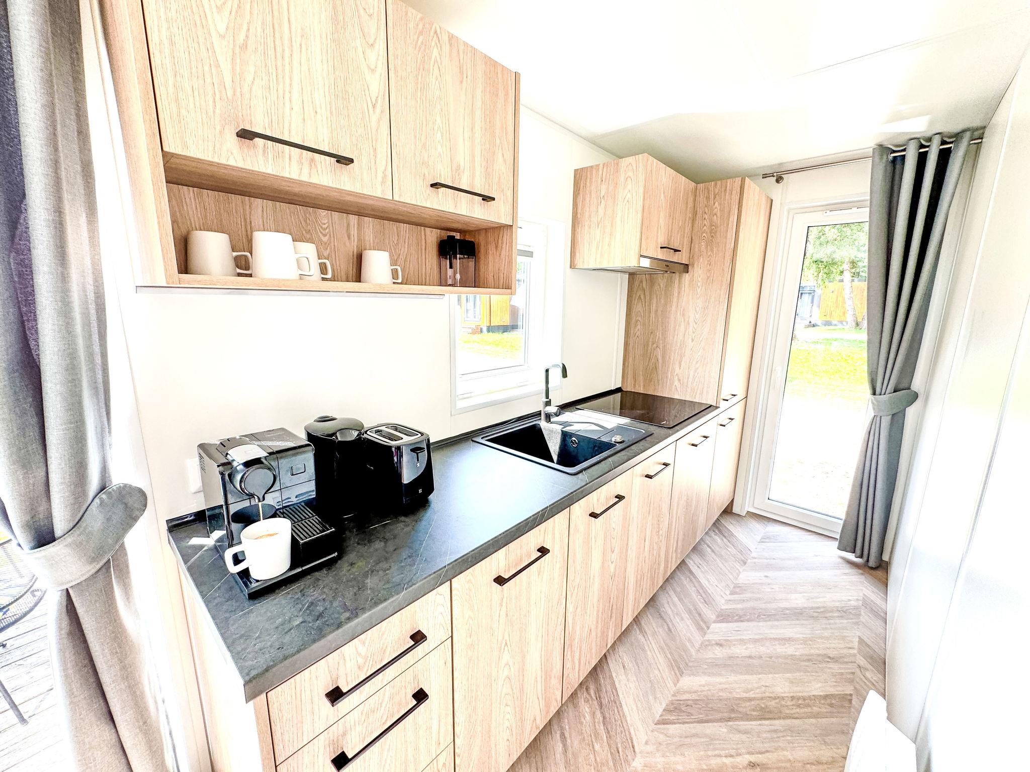 "Tiny Haus Schildkrötenstube", 3-room mobile home 32 m2. Cosy furnishings: living/sleeping room with (120 cm, length 170 cm), satellite TV. Exit to the terrace. 1 room with 1 french bed (140 cm, length 200 cm). 1 room with 2 beds (80 cm, length 200 cm). Open kitchen (4 ceramic glass hob hotplates, toaster, kettle, freezer, electric coffee machine). Shower/WC. Electric heating. Small terrace. Terrace furniture. Parking at the house. Please note: non-smoking house. Maximum 2 pets/ dogs allowed.