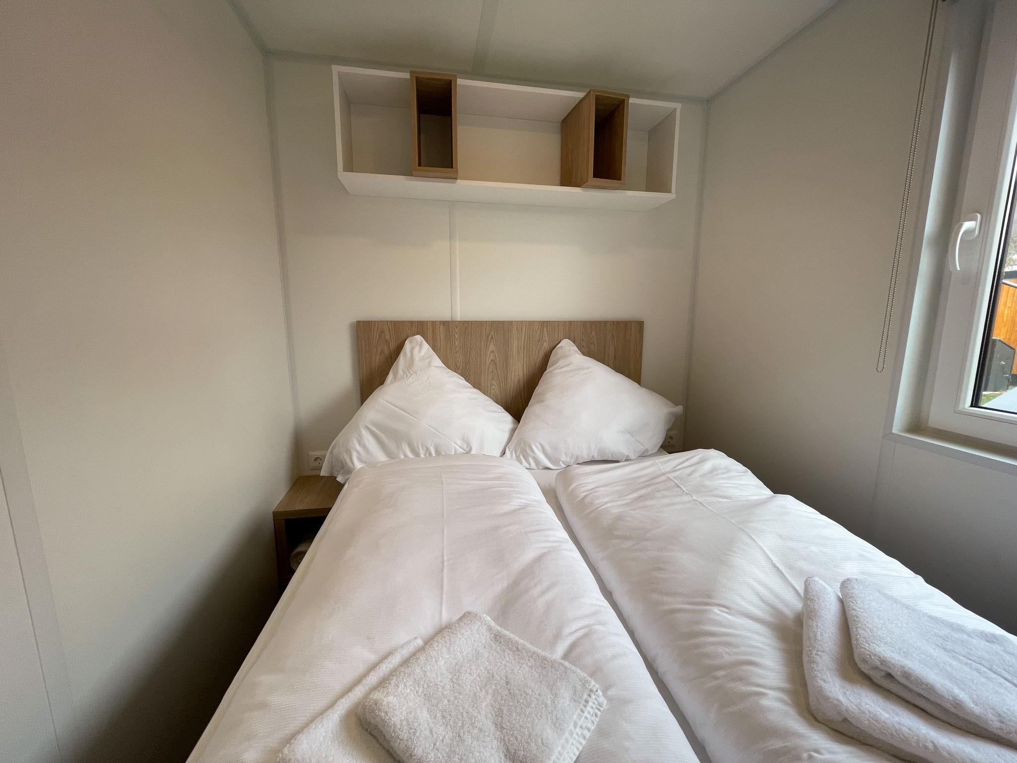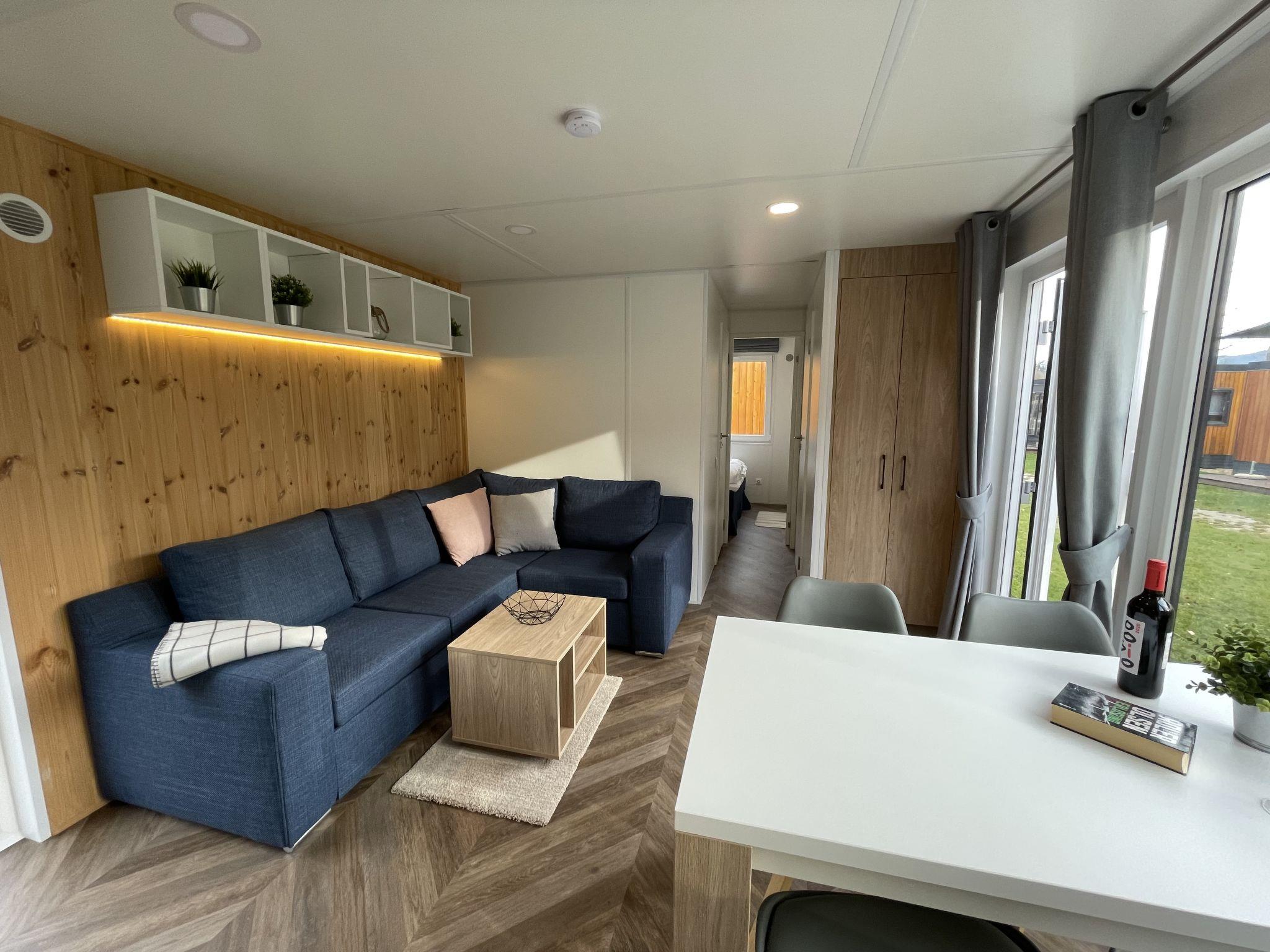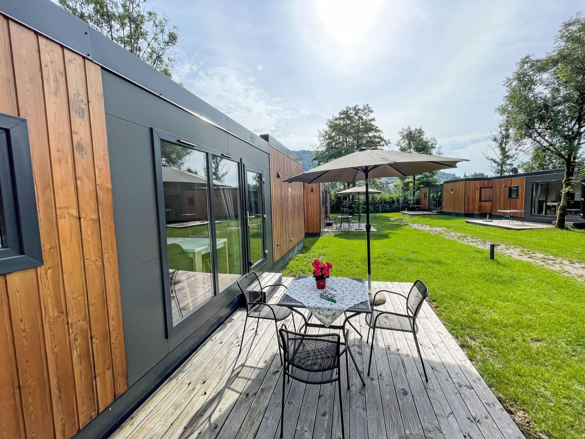 "Tiny Haus Libelle", 3-room mobile home 32 m2. Cosy furnishings: living/sleeping room with 1 double sofabed (120 cm, length 170 cm), satellite TV. Exit to the terrace. 1 room with 1 french bed (140 cm, length 200 cm). 1 room with 2 beds (80 cm, length 200 cm). Open kitchen (4 ceramic glass hob hotplates, kettle, electric coffee machine). Shower/WC. Electric heating. Small terrace. Terrace furniture. Parking at the house. Please note: non-smoking house.
