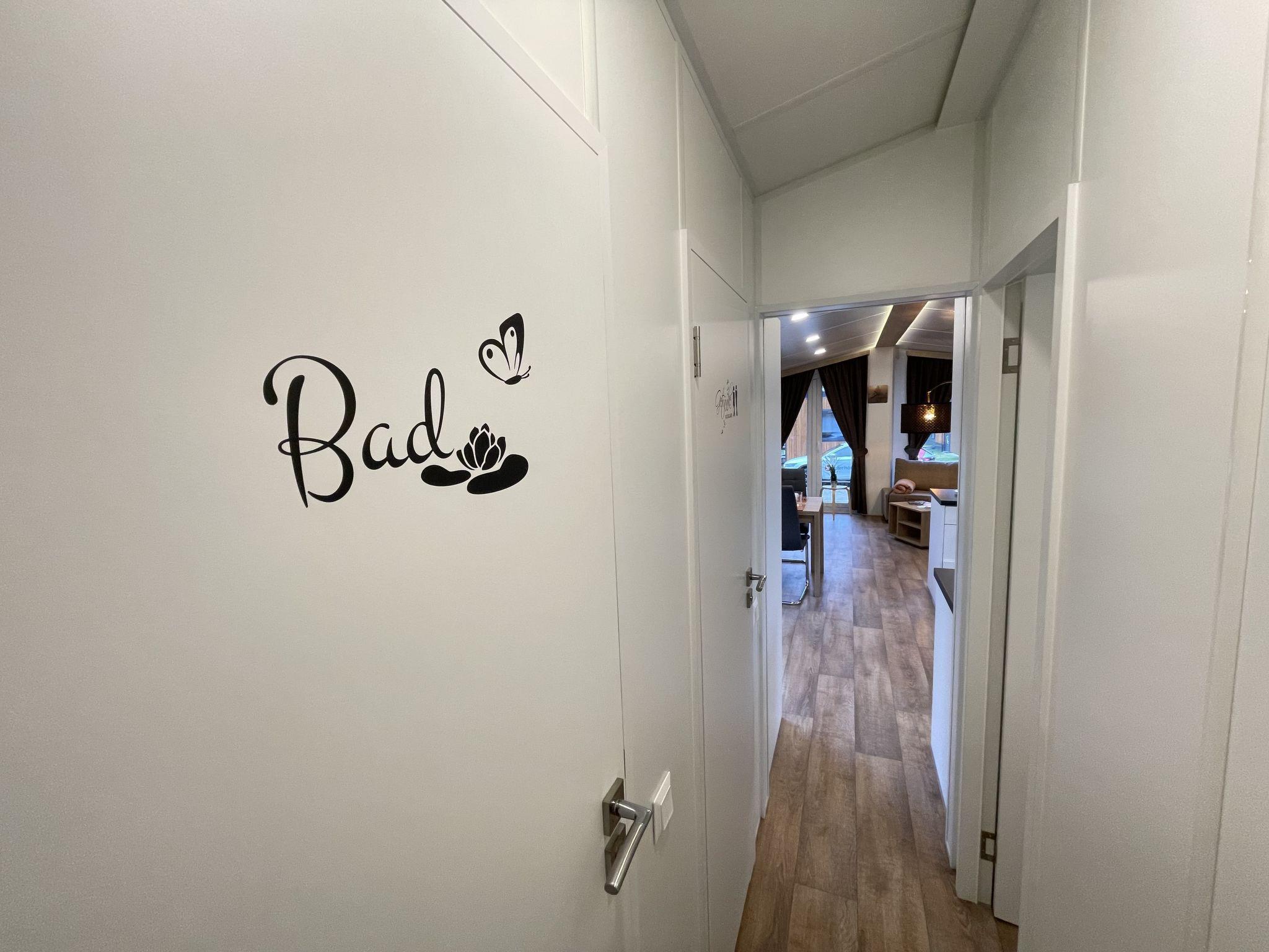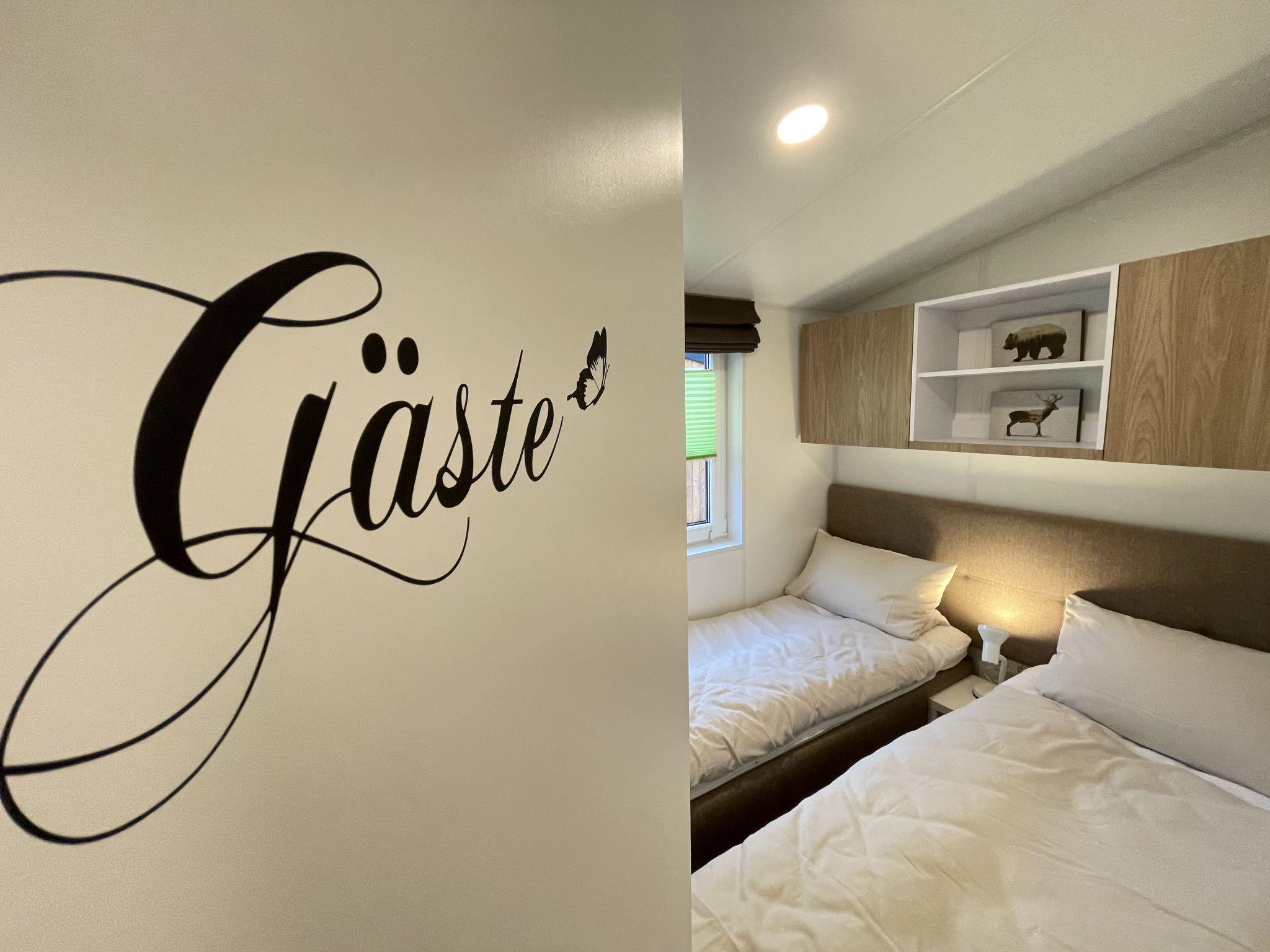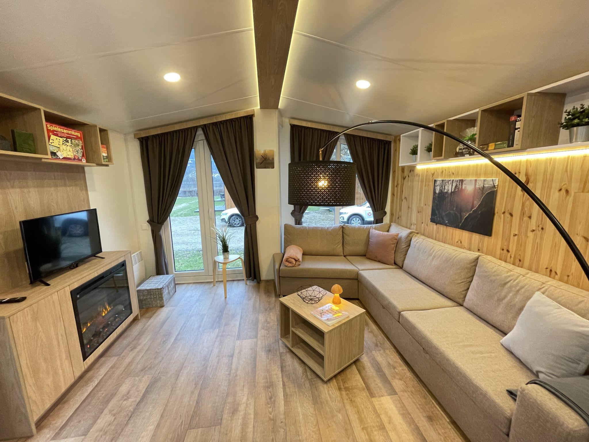 "Tiny Haus Franzl", 3-room mobile home 52 m2. Object suitable for 2 adults + 4 children. Comfortable furnishings: living/sleeping room with 1 double sofabed (120 cm, length 160 cm), Scandinavian wood stove (only for decoration), satellite TV and air conditioning. Exit to the terrace. 1 room with 1 french bed (160 cm, length 200 cm). 1 room with 2 beds (80 cm, length 200 cm). Open kitchen (oven, dishwasher, 4 ceramic glass hob hotplates, toaster, kettle, freezer, electric coffee machine). Shower, sep. WC. Small terrace. Terrace furniture. Facilities: washing machine, hair dryer. Parking at the house. Please note: non-smokers only. Maximum 2 pets/ dogs allowed.
