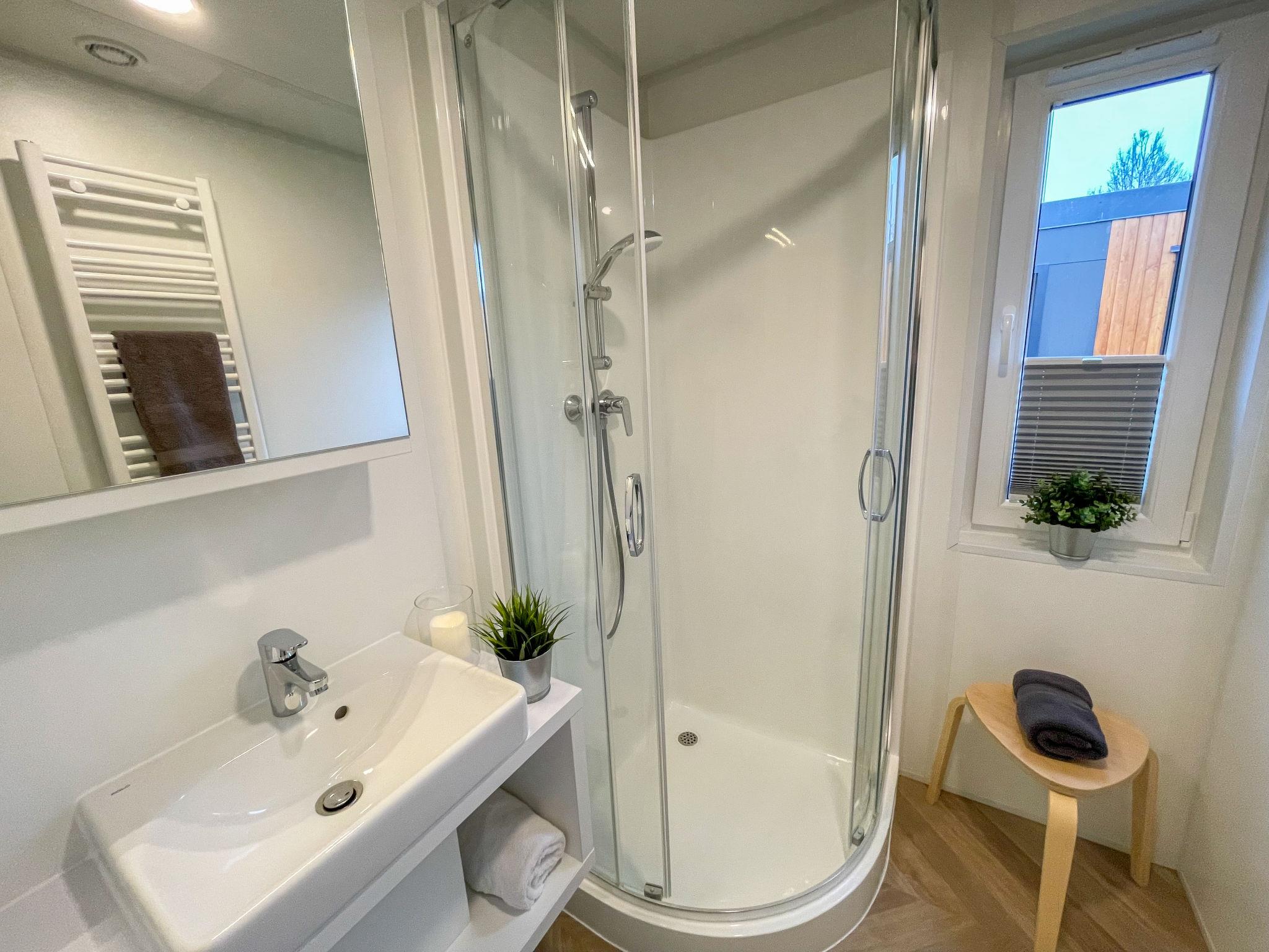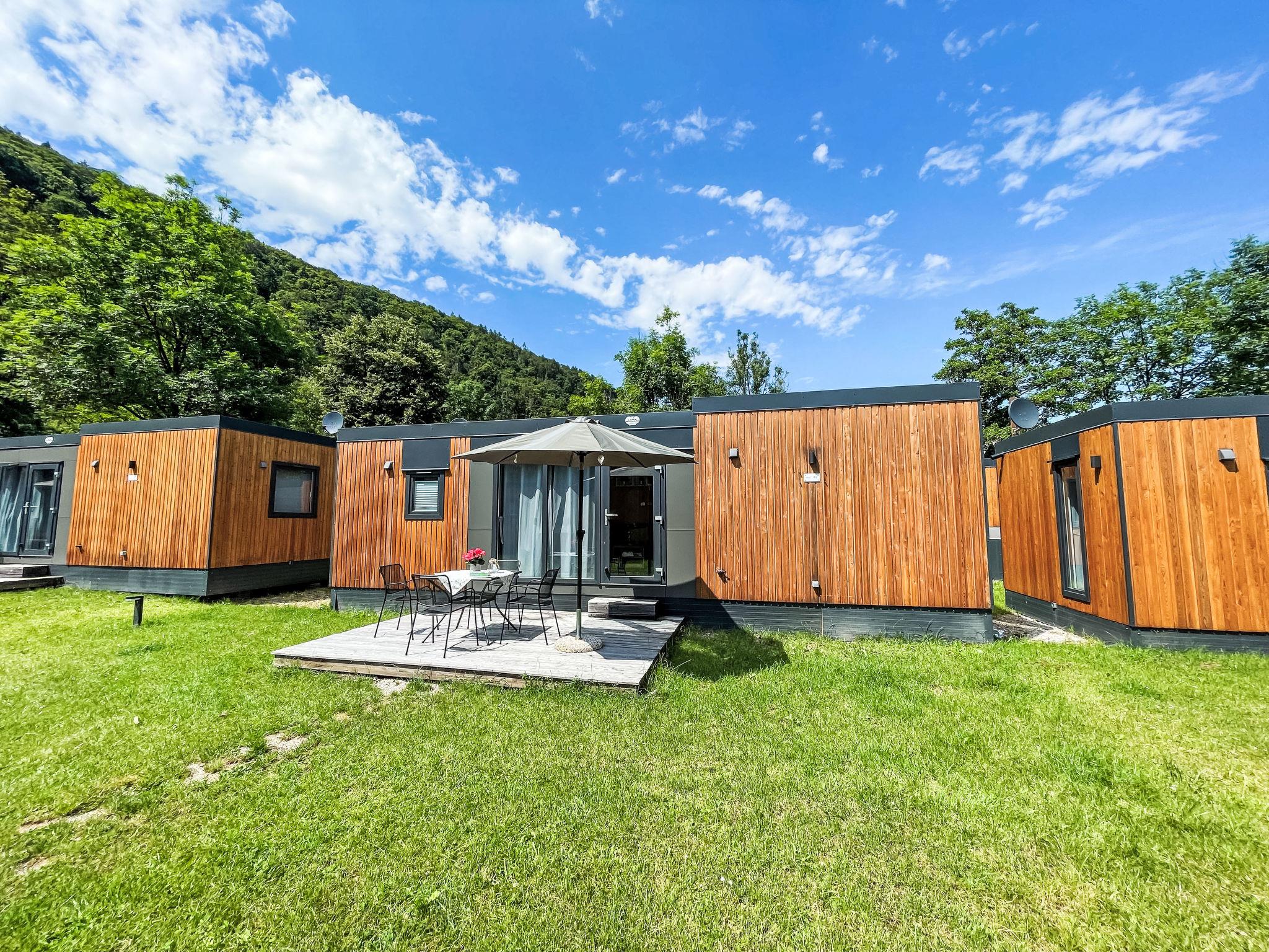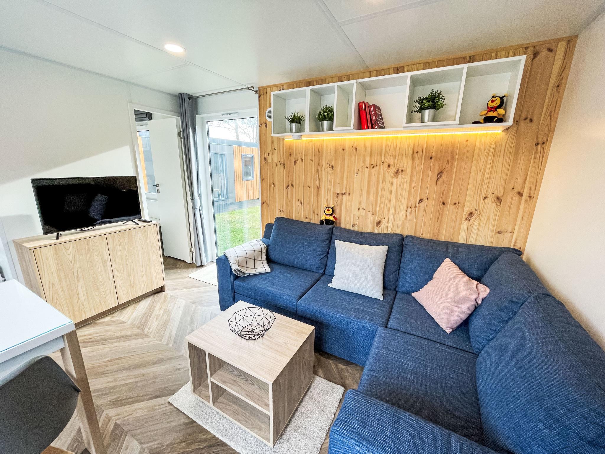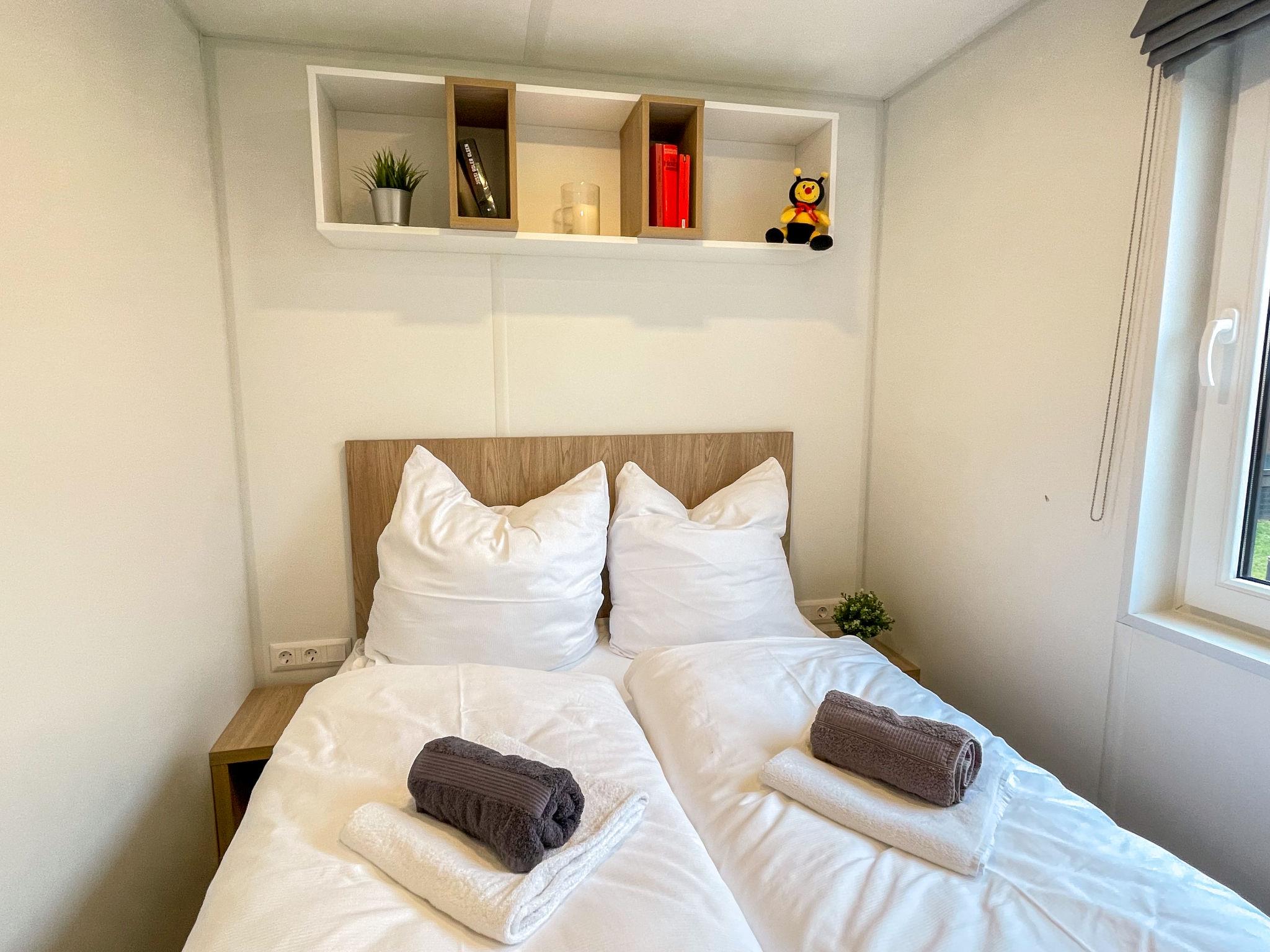 "Tiny Haus Königshaus", 3-room mobile home 32 m2. Cosy furnishings: living/sleeping room with (120 cm, length 170 cm), satellite TV. Exit to the terrace. 1 room with 1 french bed (140 cm, length 200 cm). 1 room with 2 beds (80 cm, length 200 cm). Open kitchen (4 ceramic glass hob hotplates, kettle, freezer, electric coffee machine). Shower/WC. Electric heating. Small terrace. Terrace furniture. Parking at 30 m. Please note: non-smoking house.