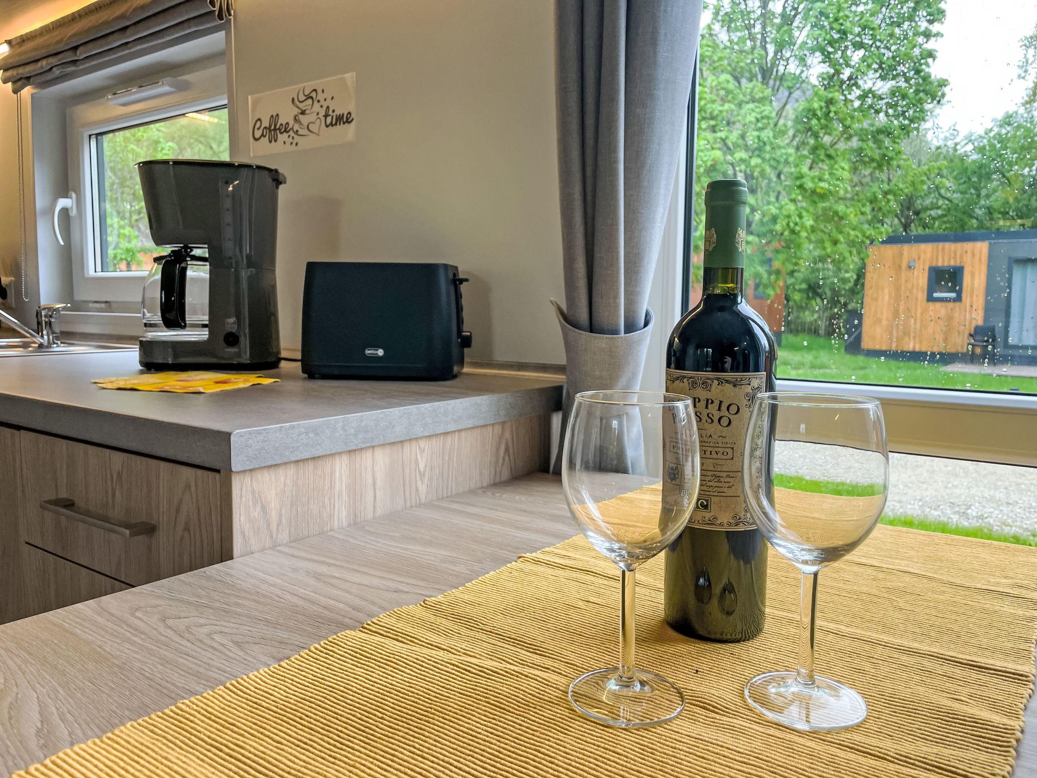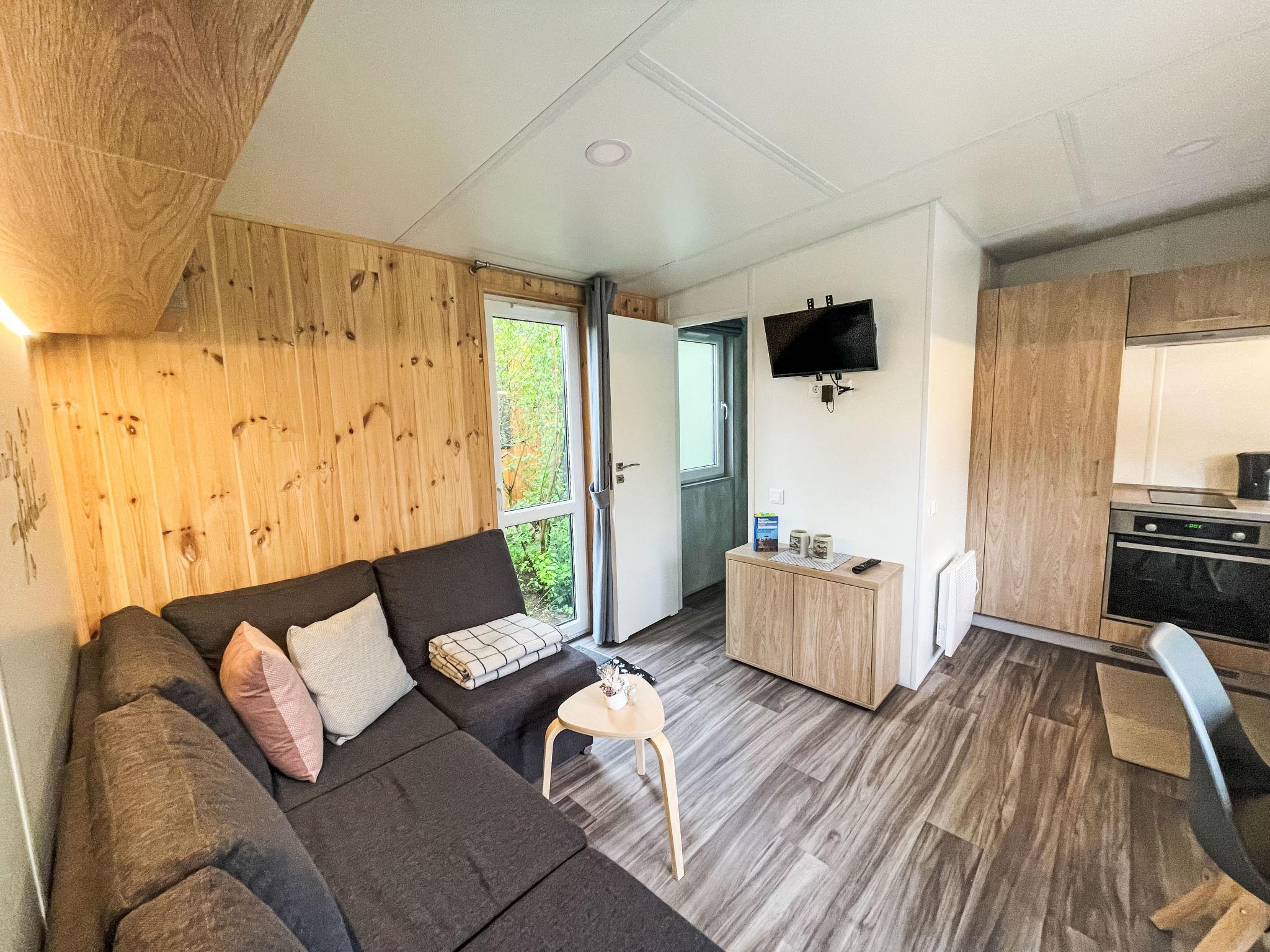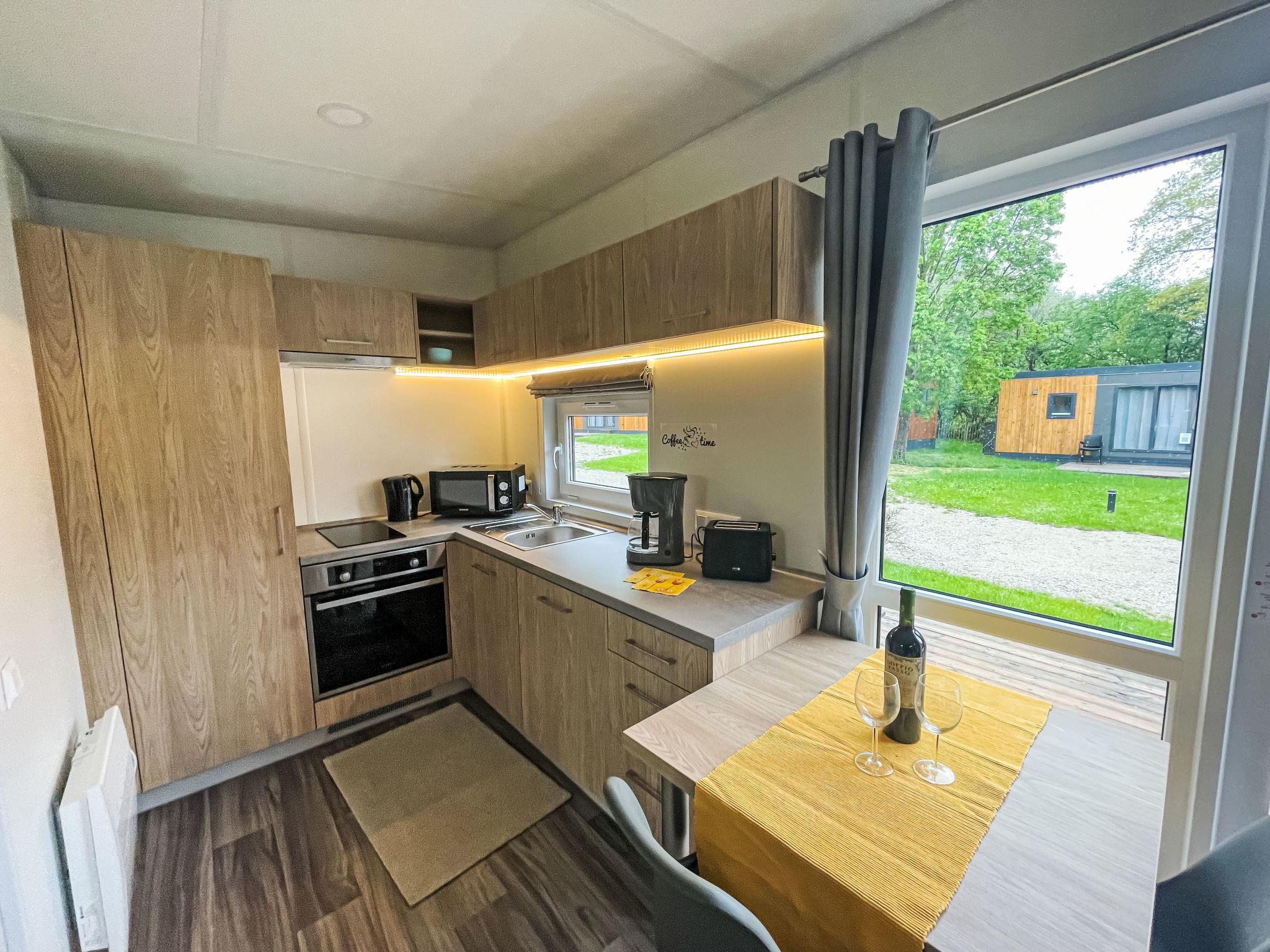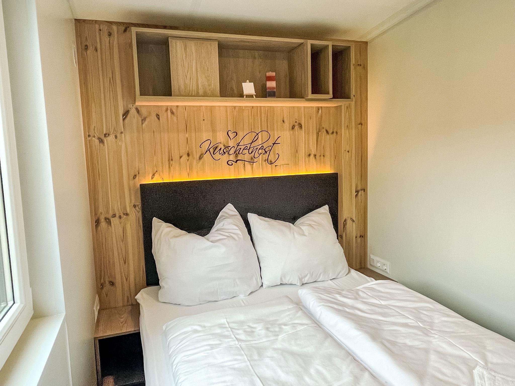 "Rinas Kuschelnest", 2-room mobile home 24 m2. Object suitable for 2 adults + 2 children. Cosy furnishings: living/sleeping room with 1 sofabed (120 cm, length 170 cm). 1 room with 1 french bed (140 cm, length 200 cm). Open kitchen (oven, 2 ceramic glass hob hotplates, toaster, kettle, microwave, electric coffee machine). Shower/WC. Small terrace. Terrace furniture. Parking at the house. Please note: non-smoking house. Maximum 1 pet/ dog allowed. Smoke alarm.