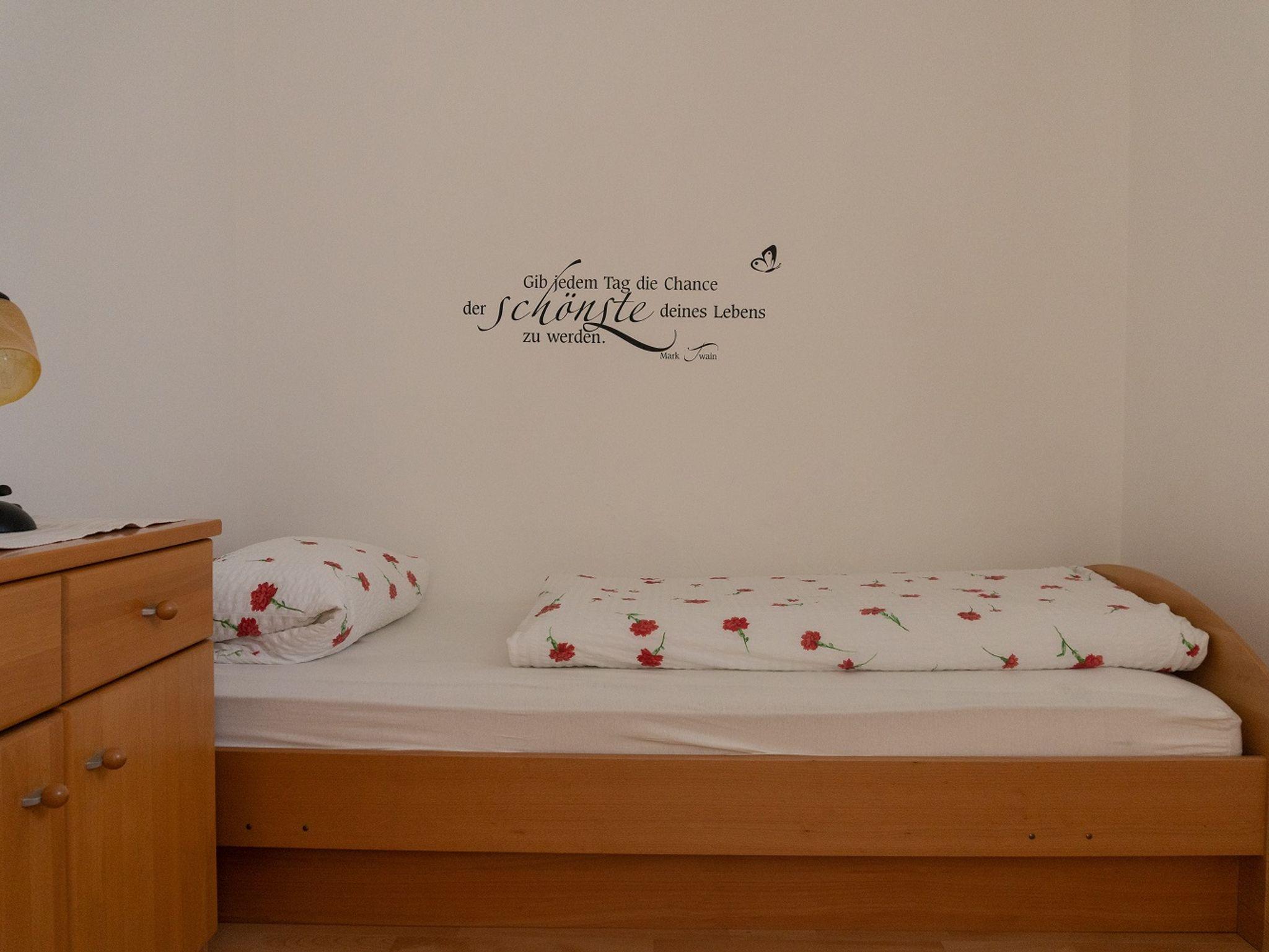 Es stehen Ihnen zwei Schlafzimmer zur Verfügung. Ein Schlafraum ist mit einem Doppelbett ausgestattet, der andere mit einem Einzelbett. Die vierte Person kann es sich auf der Schlafcouch gemütlich machen.