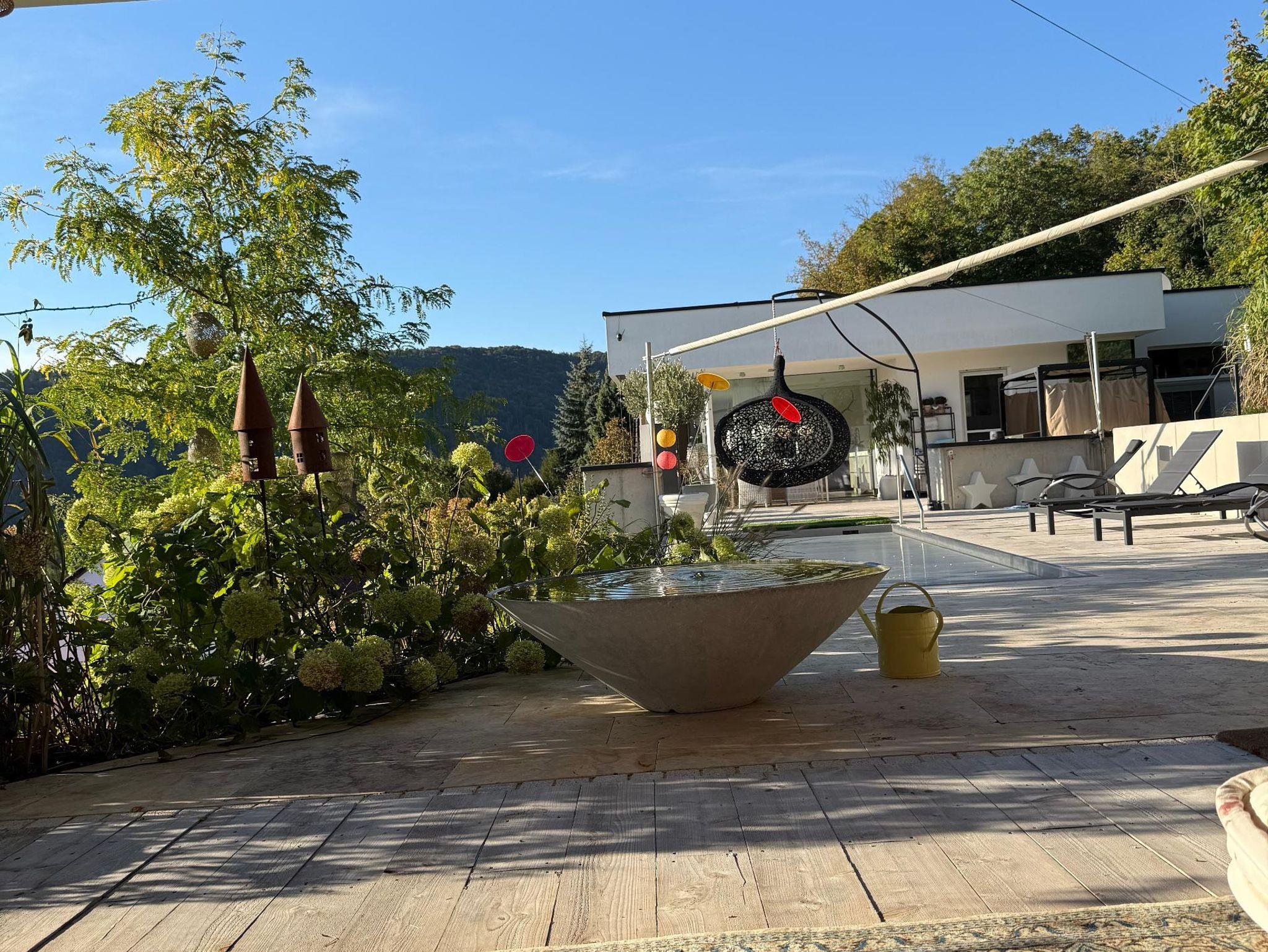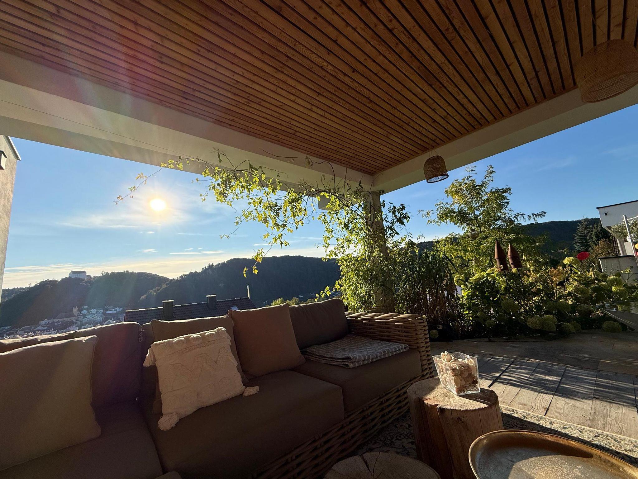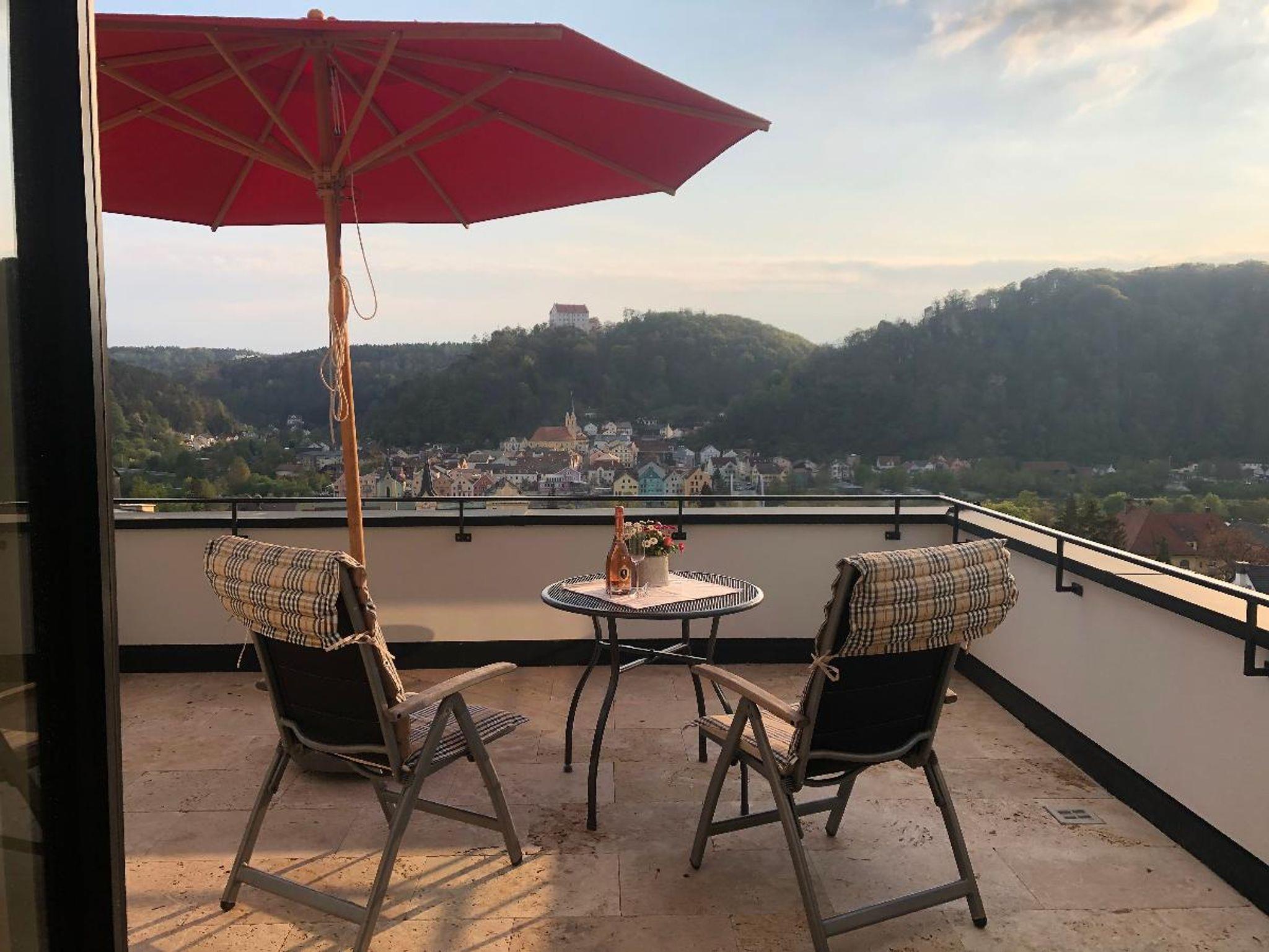 Es steht Ihnen eine möblierte Natursteinterrasse mit fantastischem Blick auf Riedenburg zur Verfügung.