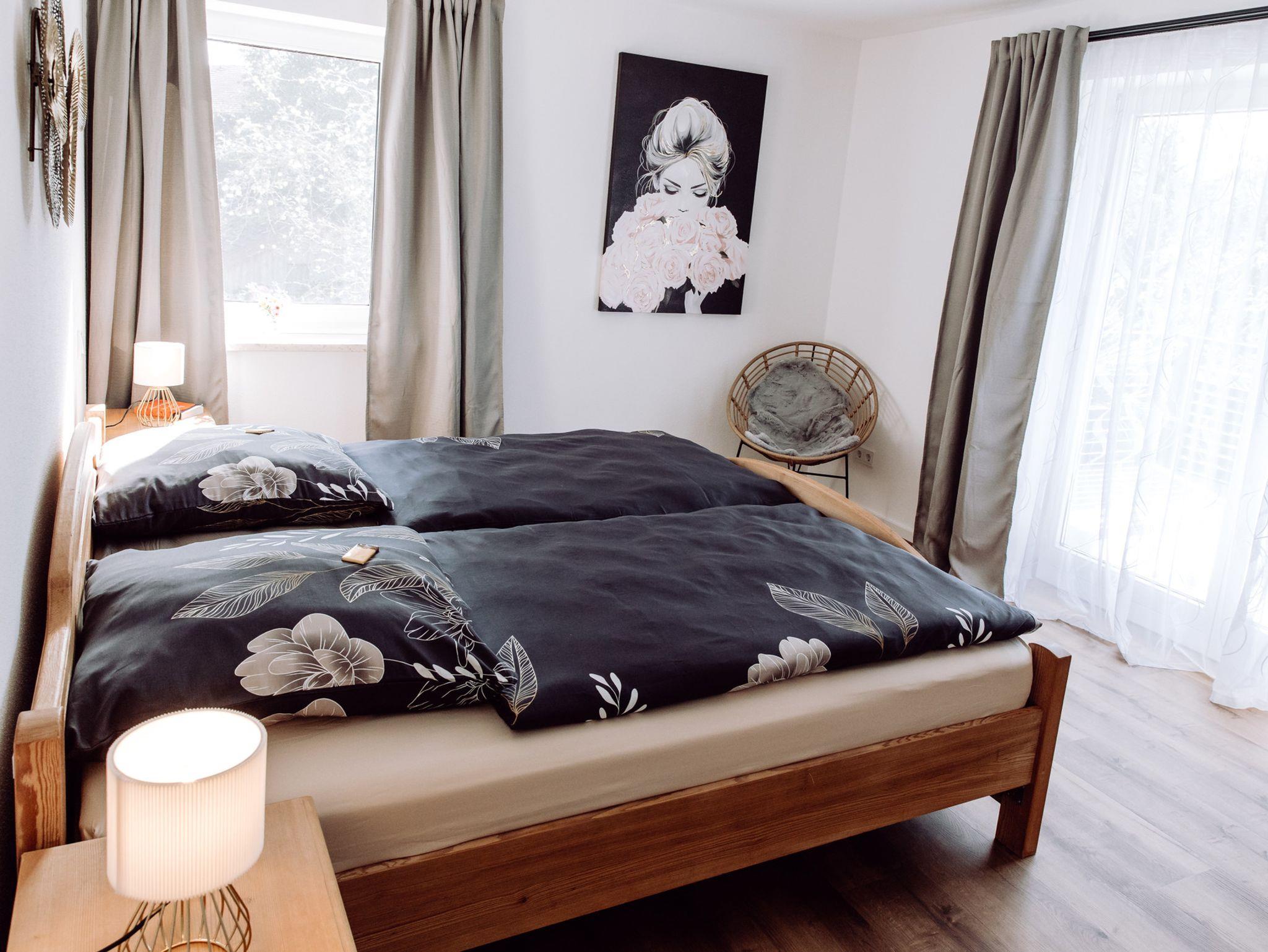 Die Wohnung verfügt über zwei separate Schlafzimmer.Das Hauptschlafzimmer ist mit einem komfortablen Bett 200x200m ausgestattet. Das kleinere Schlafzimmer ist mit einem hochwertigen Boxspringbett 160x200m eingerichtet.